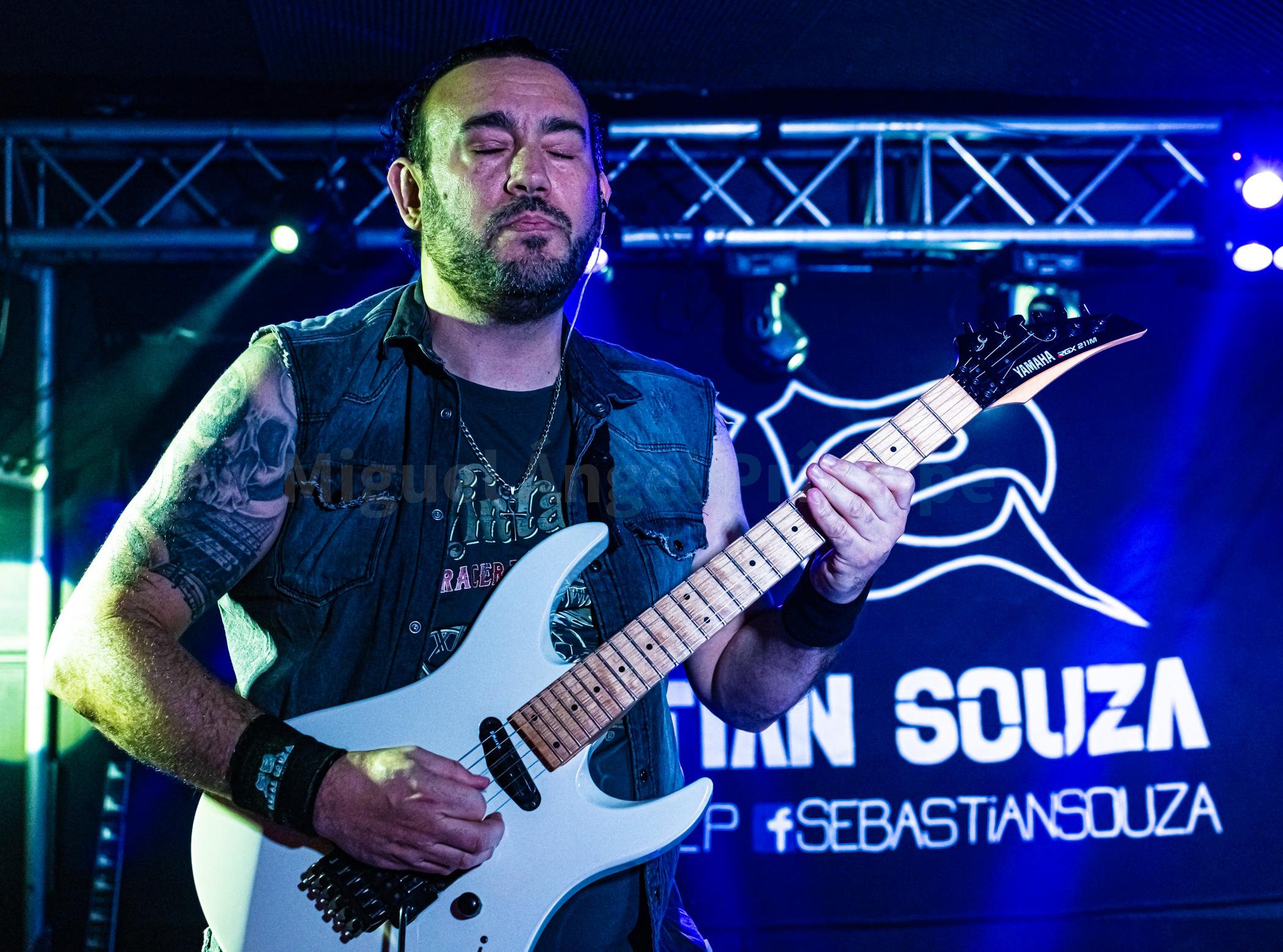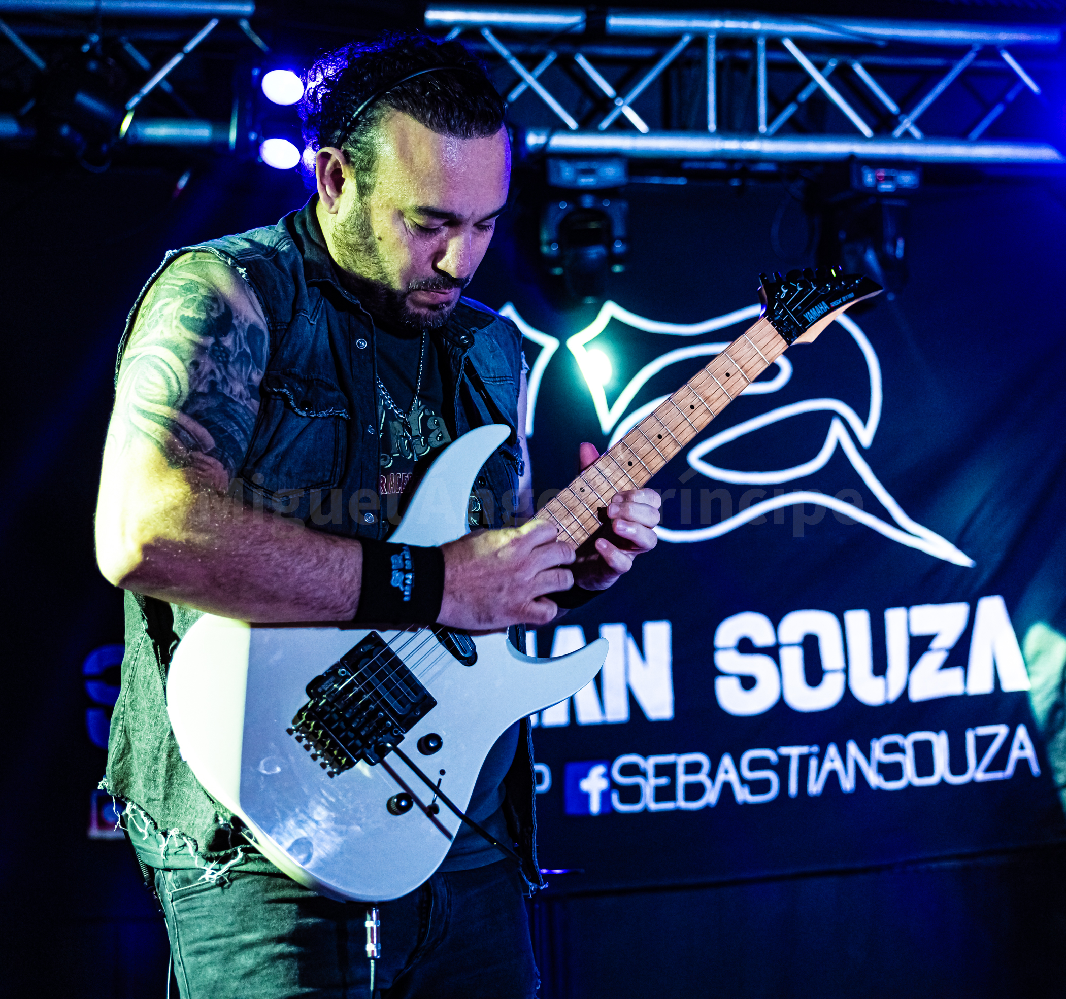 Pasadas las 22:30 horas se subió a la tarima el argentino Sebas Souza para tras una intensa introducción empezar a interpretar «Secretos De Mi Alma», tema incluido en su único redondo publicado hasta el momento de nombre En La Gloria el cual vio la luz en el 2005. El sonido de las seis cuerdas invadió el local transmitiendo solidez y energía mientras el guitarrista continuaba con «Interestelar», pista que estará incluida en su próximo larga duración que llevará por título Cosmic Rain. Un pequeño problema interrumpió la descarga al sonar «Mis Demonios» ya que una de las cuerdas de la guitarra se rompió, teniendo que pararse la actuación durante unos minutos para poder cambiarla y como esta sustitución se demoraba un poco mas de lo habitual Sebas se colgó una preciosa guitarra Ibanez en tono rosa/magenta para seguir con «Espacial»,volviendo nuevamente al primer instrumento una vez estuvo éste disponible para desgranar el resto de su repertorio.