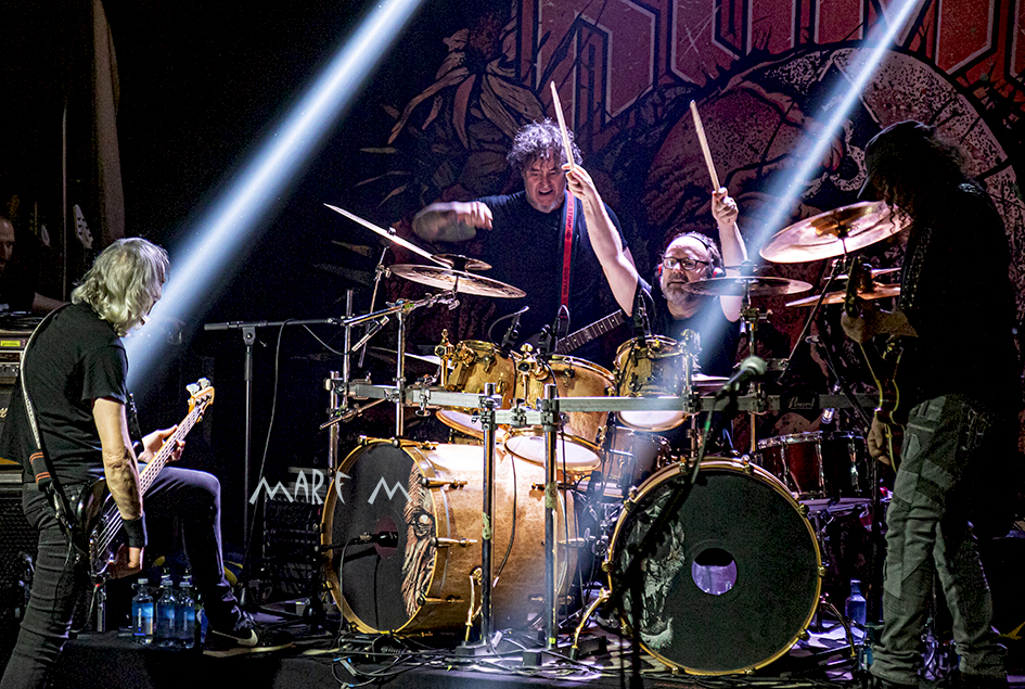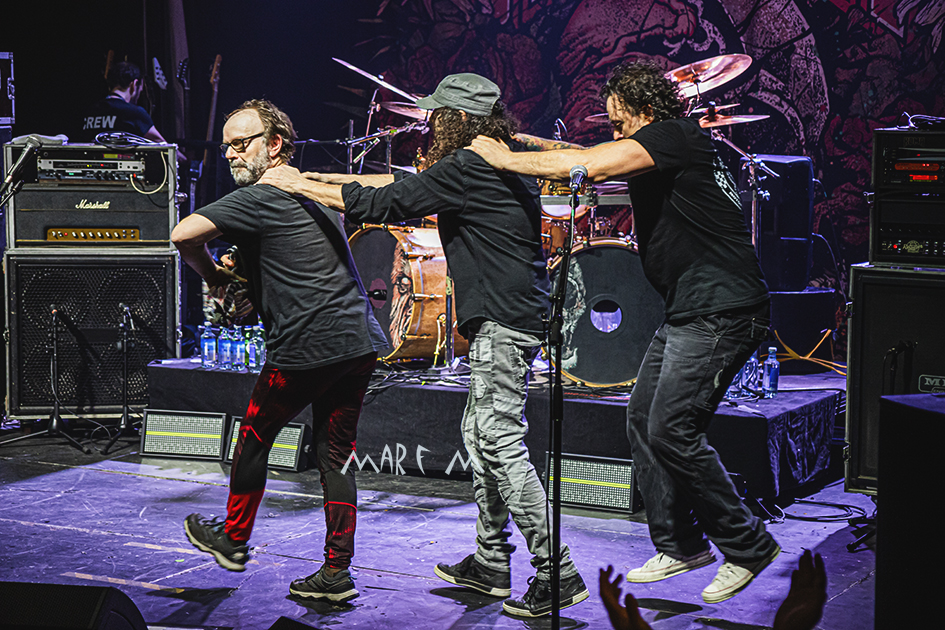 Acabaron ofreciéndonos una bonita estampa con todo el grupo en la plataforma de la batería, donde Juan Karlos, inagotable, terminaba de aporrear los parches con una intensidad brutal muy bien controlada. E, inevitablemente, llegaron los saludos al público, mientras sonaba una divertida tonada tirolesa, con los cuatro músicos mostrando su felicidad y satisfacción, bailoteando y dando manos a sus agradecidos fans. Por cierto, qué placer ver a un público entregado hasta el punto de dejar sus móviles en los bolsillos, viviendo el directo, en vez de grabarlo para… para lo que sea.