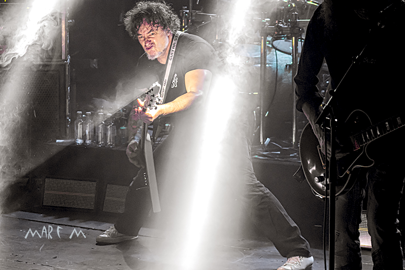 Parecía que todo estaba sonando bien, con algunos coros un poco bajos, pero con mucha potencia en la base rítmica y con afilados solos de guitarra de Natxo. Pero cuando sonaba «El Pato«, Brigi paró el concierto por algún problema en su guitarra. Se solventó rápidamente, con el cantante brindando con el público y con un veloz cambio de instrumento. «El Pato» siguió sonando como si nada, seguida de «Por Los Siglos De Los Siglos«, presentada como «un tema que no tocábamos desde que éramos pequeños». Algunos acordes reggae daban paso a «Me Vacío«, muy bien recibida por los presentes.