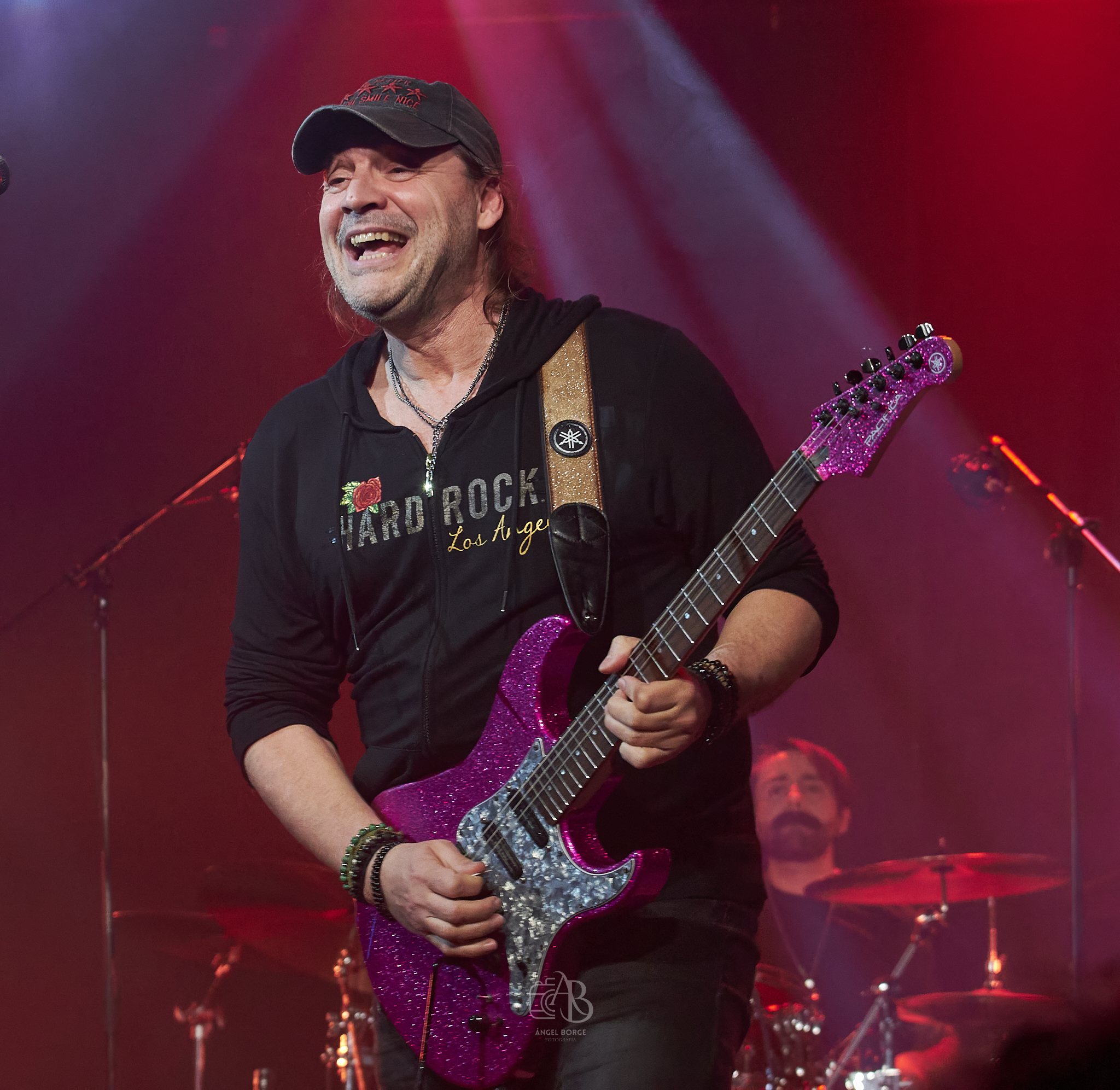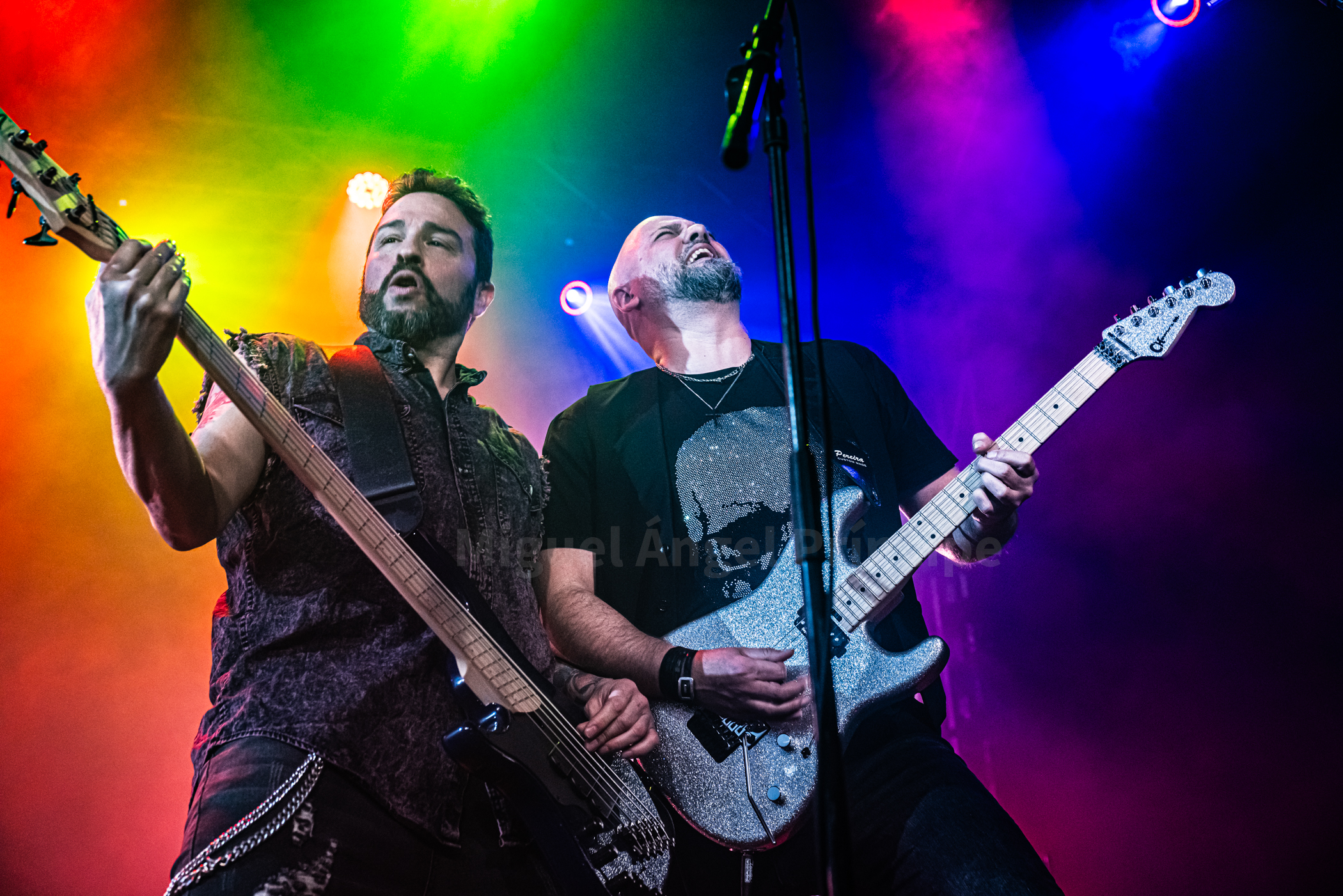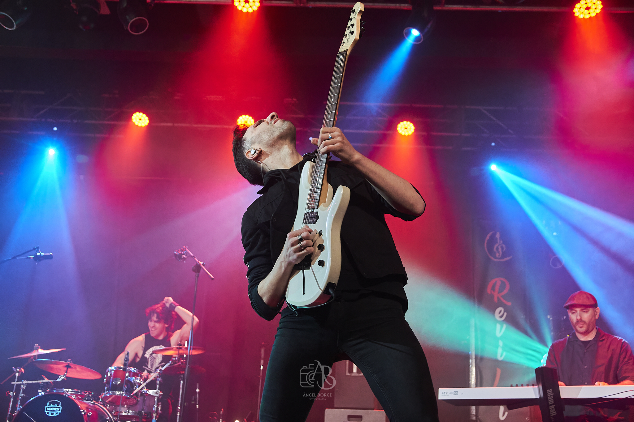 Abrieron en inglés con «Straight To Your Heart», «In My Life», «Addictive Love» y «Days Of Youth» antes de pasar a interpretar otro gran tema ahora en castellano como es «No Puede Ser», notándose tanto en estos como en los siguientes la maestría de David Palau en cada solo y en cada riff regalándonos no solamente los oídos con su virtuosismo sino también los ojos con sus poses al ejecutar las canciones aunque no únicamente se lucieron las seis cuerdas, sino que también las cuatro con Diego Teruel al frente brillaron con luz propia, energía e innegable frescura por no hablar del incombustible teclista Oriol que en cuanto le era posible se alejaba del teclado para saltar mientras cantaba.