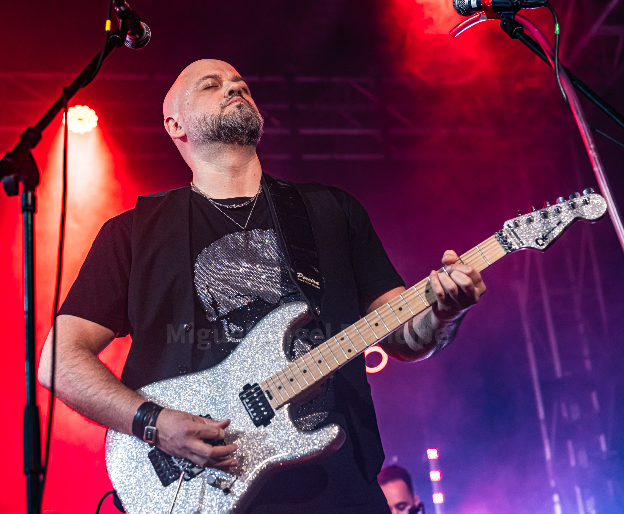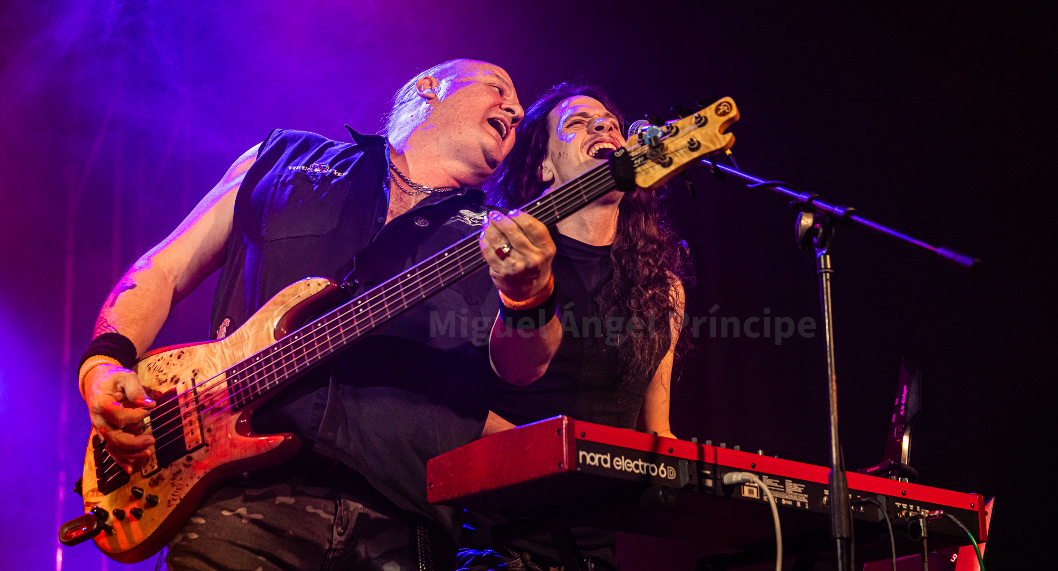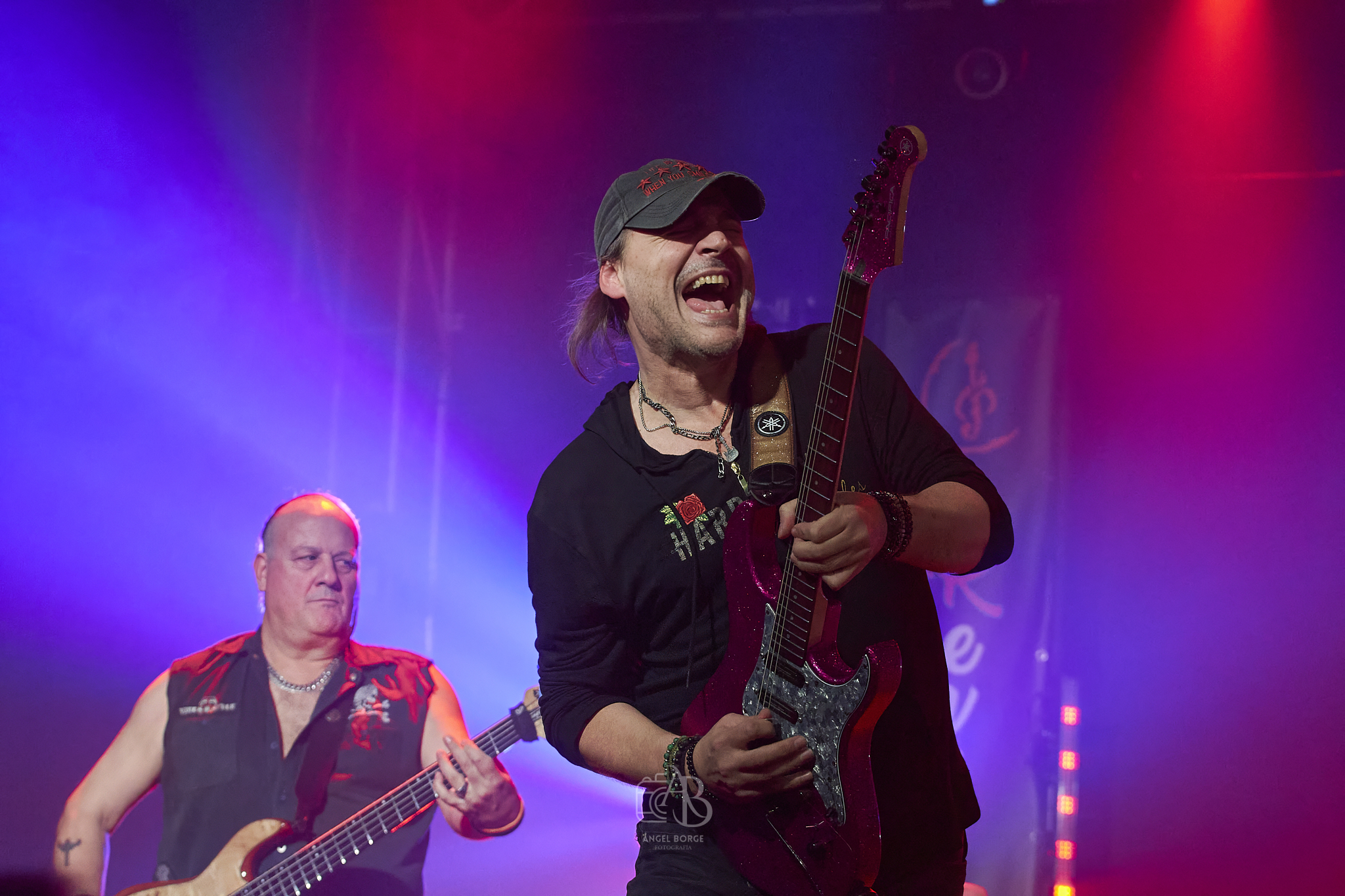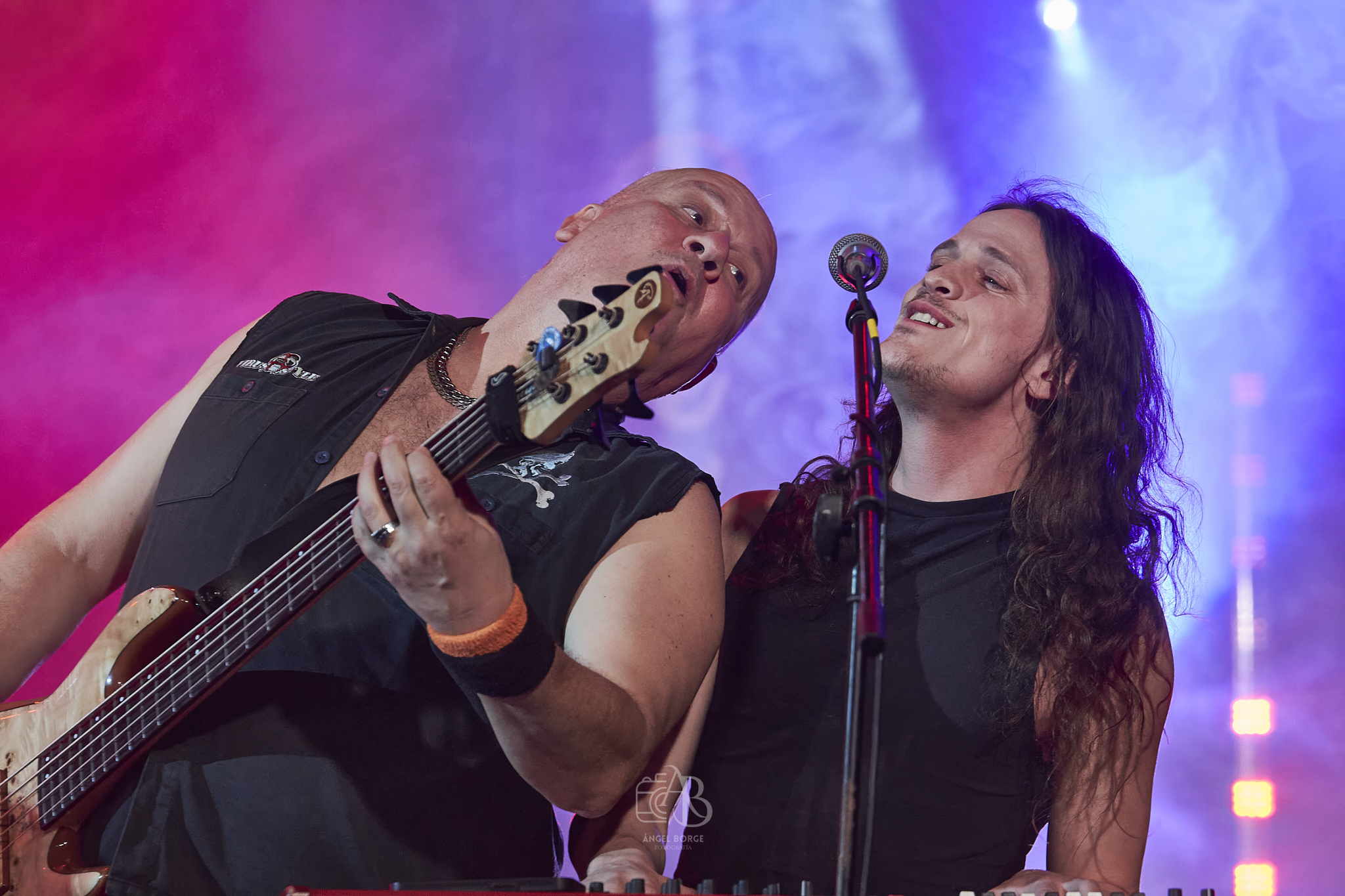 Abrieron en inglés con «Straight To Your Heart», «In My Life», «Addictive Love» y «Days Of Youth» antes de pasar a interpretar otro gran tema ahora en castellano como es «No Puede Ser», notándose tanto en estos como en los siguientes la maestría de David Palau en cada solo y en cada riff regalándonos no solamente los oídos con su virtuosismo sino también los ojos con sus poses al ejecutar las canciones aunque no únicamente se lucieron las seis cuerdas, sino que también las cuatro con Diego Teruel al frente brillaron con luz propia, energía e innegable frescura por no hablar del incombustible teclista Oriol que en cuanto le era posible se alejaba del teclado para saltar mientras cantaba.