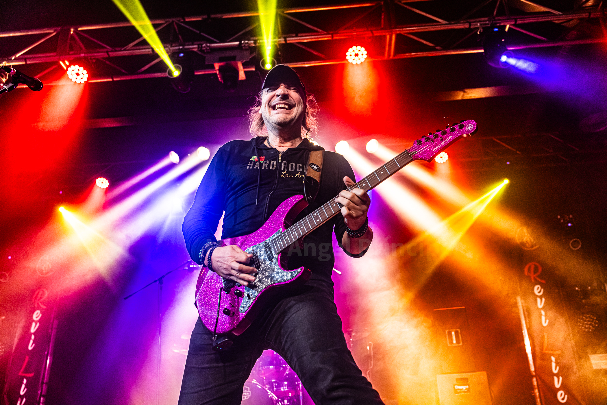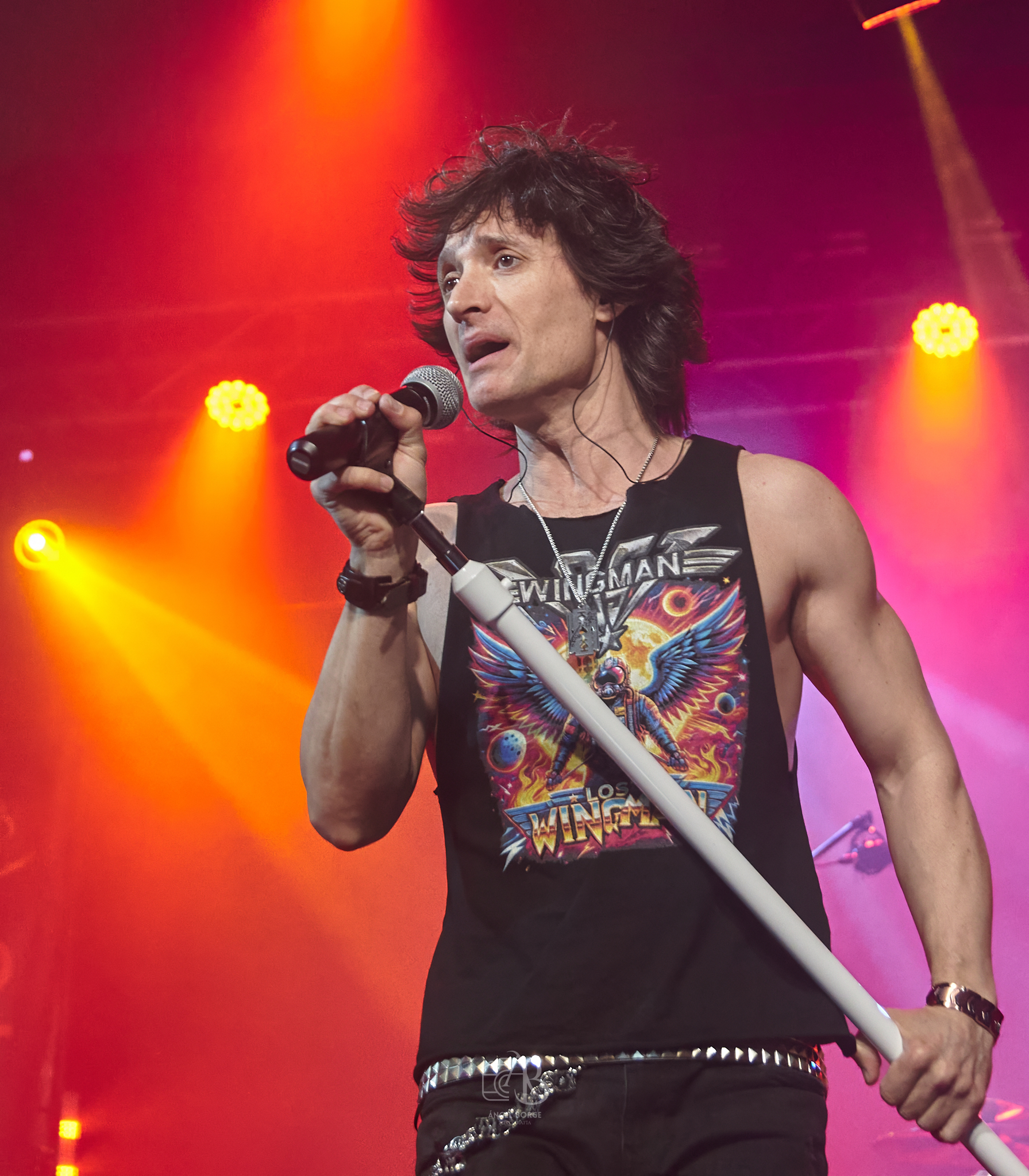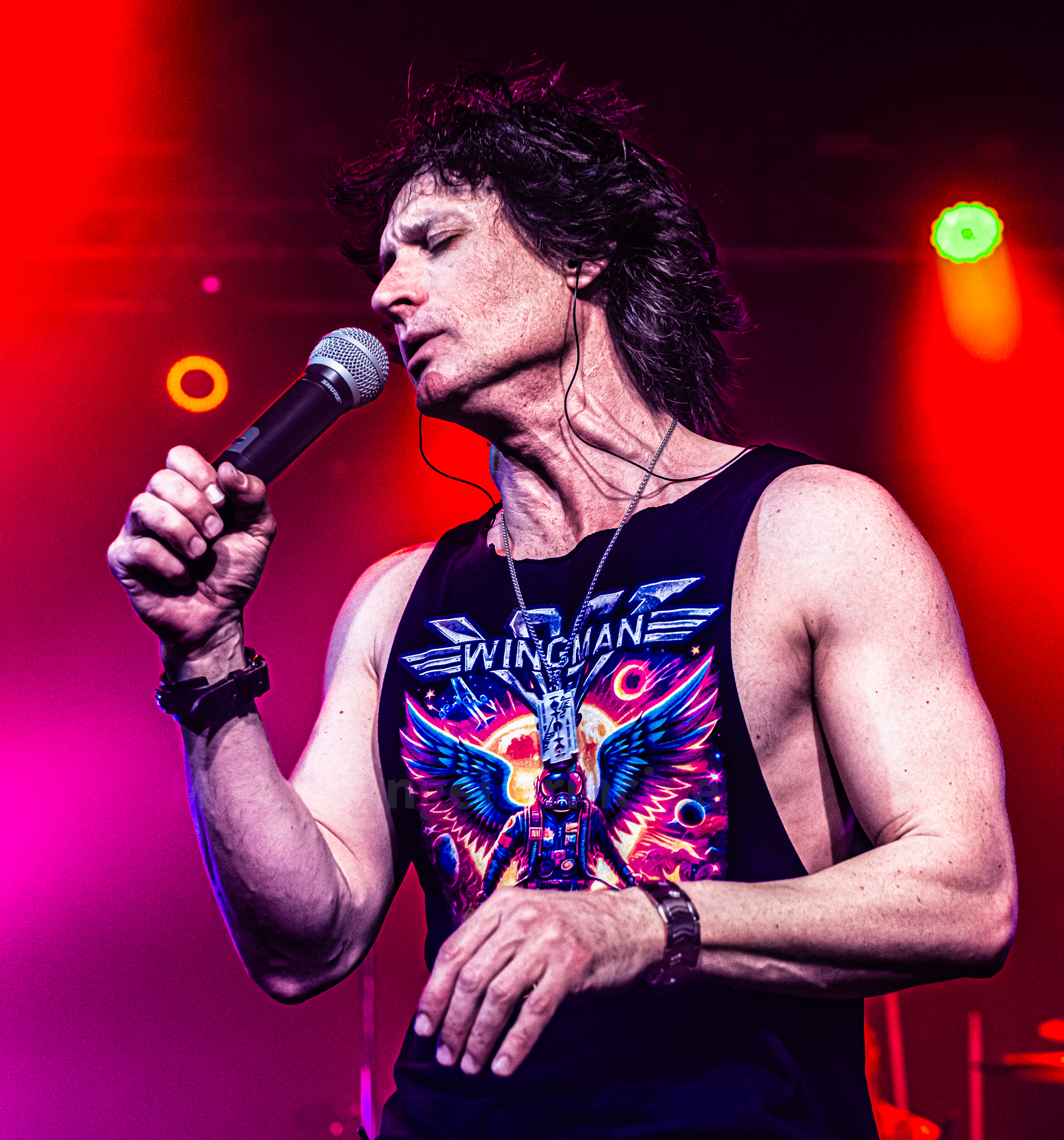 Tras alguna canción más, me sorprendió bastante el escuchar covers a lo largo de la noche y es que LOST WINGMAN cuenta con un proyecto paralelo llamado LITTLE RUNAWAYS que es un gran tributo a BON JOVI, interpretando además la banda «Superstitious» de los suecos EUROPE antes de retomar de nuevo los temas propios con «Passing Away» para viajar musicalmente al Reino Unido con «Hysteria» de los grandísimos DEF LEPPARD, volviendo el grupo otra vez a su producción con «Fade To Grey», «Junkie» o «Fuck A.I.» para terminar con el «Livin’ On A Prayer» de BON JOVI poniendo este gran quinteto con su propuesta al ochentero estilo del Hard Rock, el broche de oro a una magnifica noche.