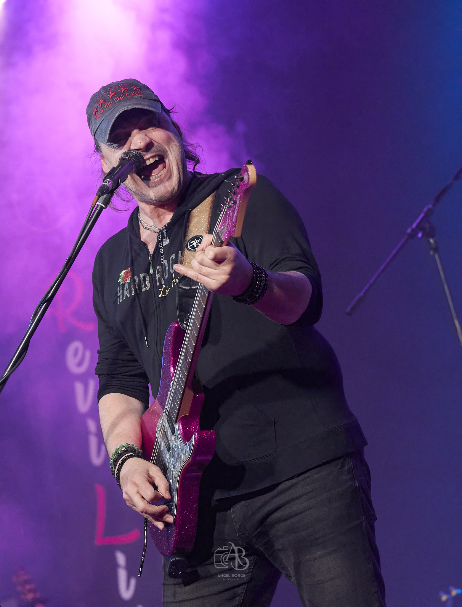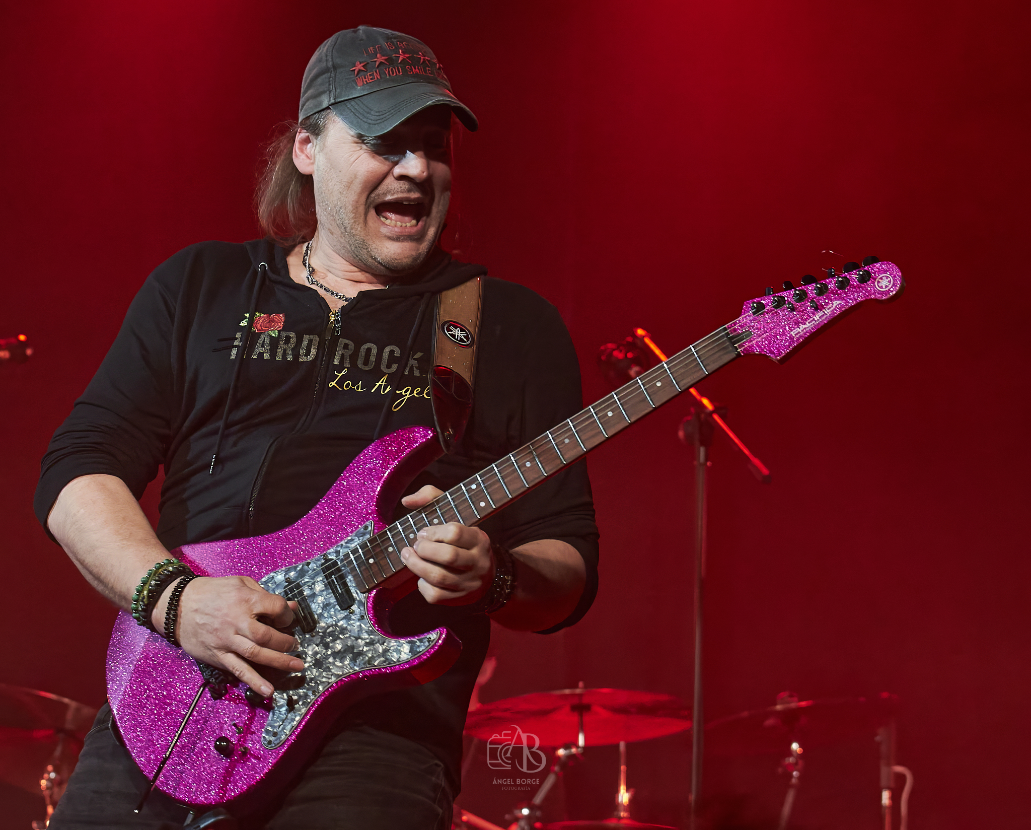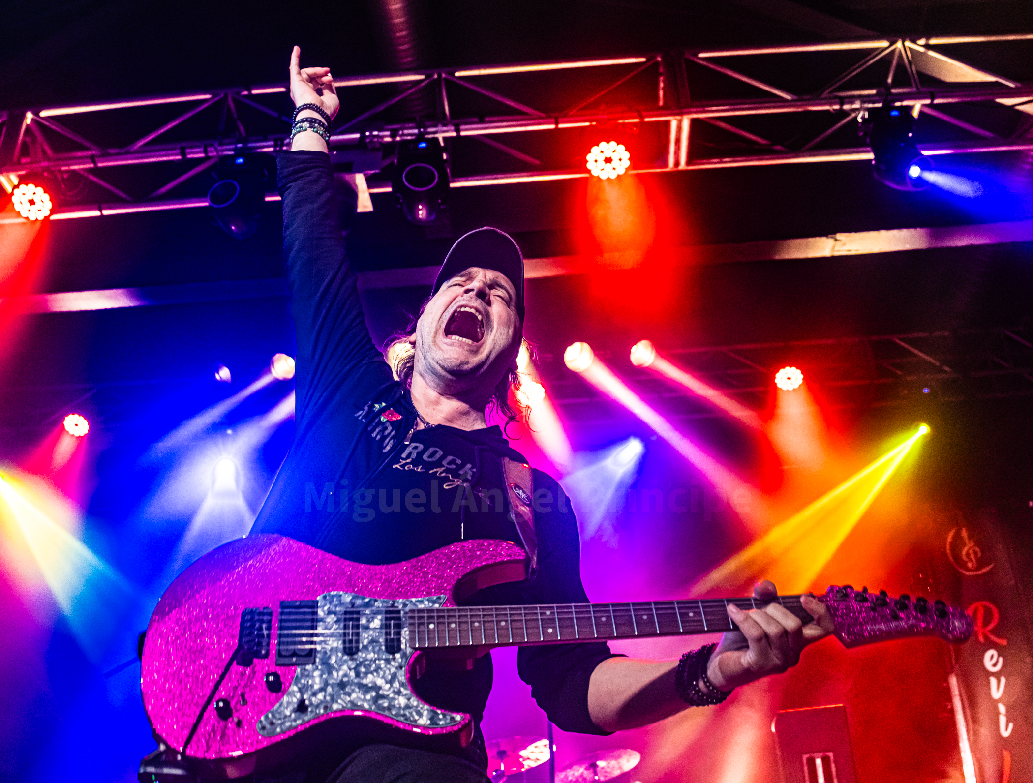 Tras alguna canción más, me sorprendió bastante el escuchar covers a lo largo de la noche y es que LOST WINGMAN cuenta con un proyecto paralelo llamado LITTLE RUNAWAYS que es un gran tributo a BON JOVI, interpretando además la banda «Superstitious» de los suecos EUROPE antes de retomar de nuevo los temas propios con «Passing Away» para viajar musicalmente al Reino Unido con «Hysteria» de los grandísimos DEF LEPPARD, volviendo el grupo otra vez a su producción con «Fade To Grey», «Junkie» o «Fuck A.I.» para terminar con el «Livin’ On A Prayer» de BON JOVI poniendo este gran quinteto con su propuesta al ochentero estilo del Hard Rock, el broche de oro a una magnifica noche.
