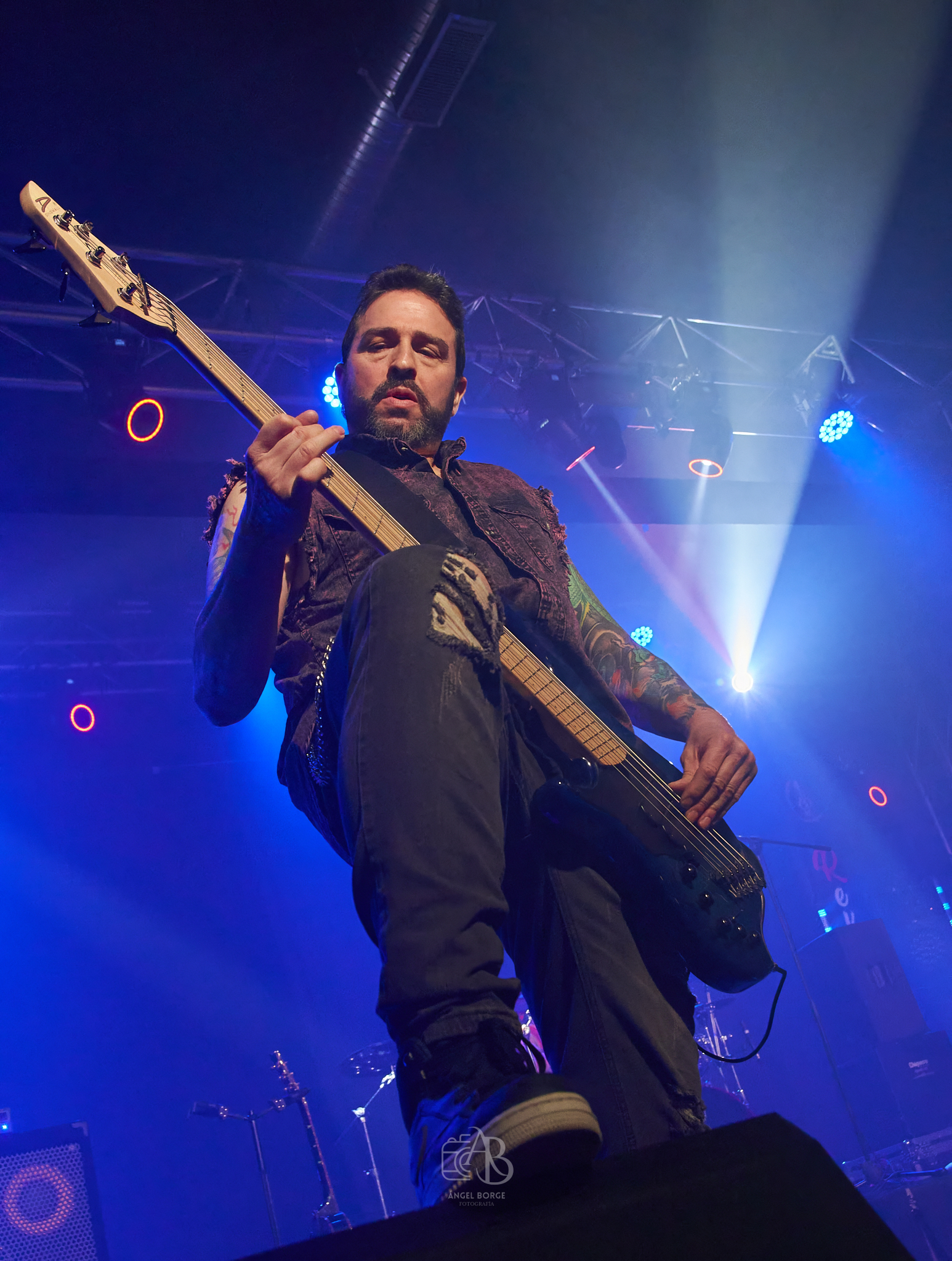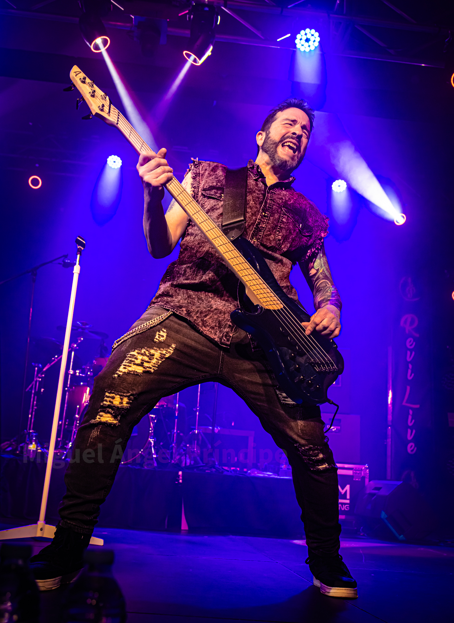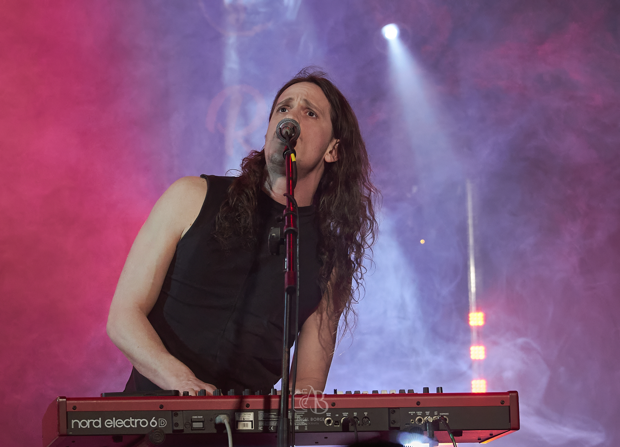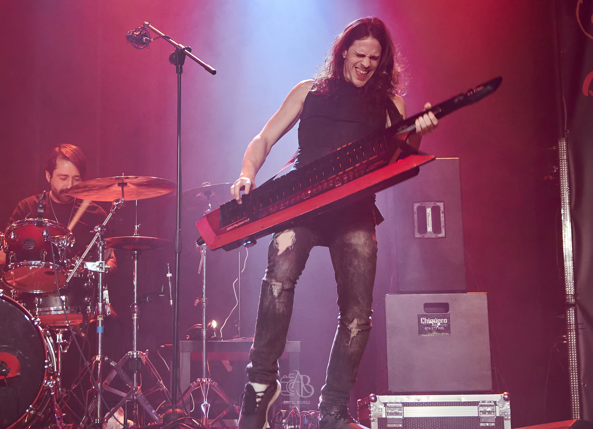Pero aún nos quedaba el huracán LOST WINGMAN que además jugaba en casa contando los madrileños en sus filas con el enérgico frontman Chema Sales a los mandos acompañado por Daniel Pereira a la guitarra, Javier Martín a la batería, Daniel Fernández (también componente de DARK MOOR) al bajo y Pavel Mora a las teclas para no darnos tregua arrancando con «Break Through All The Lines», «Stranger» y «To The Limit» no parando ni el vocalista ni el bajista de moverse de un lado al otro del gran escenario con el que cuenta la Sala Revi Live.