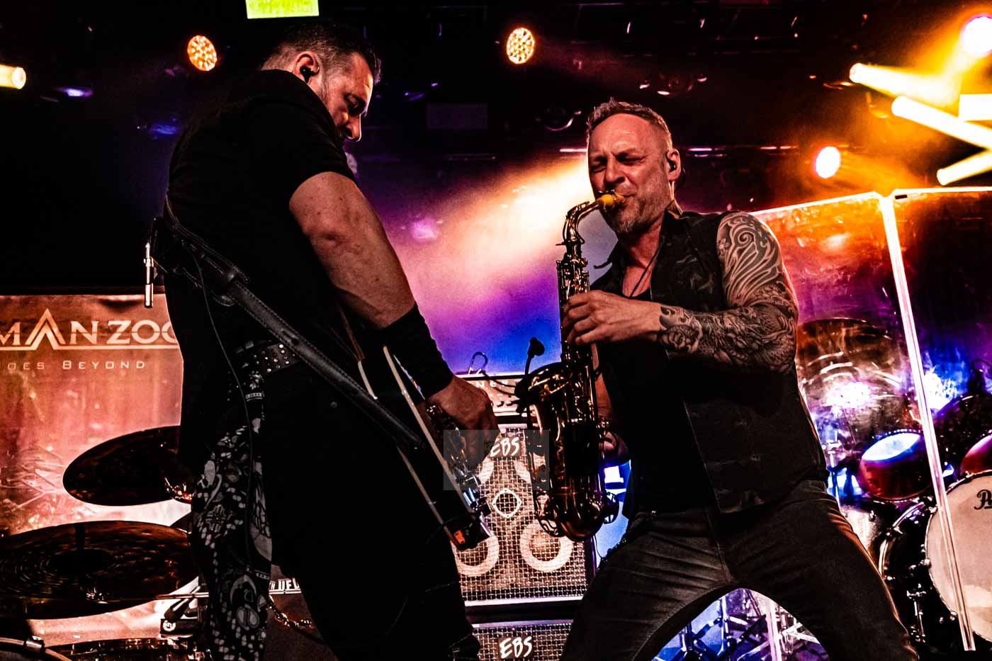 Un ágil cambio de backline dio paso con La Riviera ya repleta a los germanos HUMAN ZOO, una formación que abandera un Hard Rock Melódico elegante y exquisito que redondeó un directo nítido e impecable con la fantástica aportación de un saxofón militando en sus canciones para aportar al ya limpio y original sonido del grupo, una nota de personalidad ejerciendo éste una combinación con ensamble perfecto junto a los teclados gestionando ambos instrumentos una perfecta base rítmica.