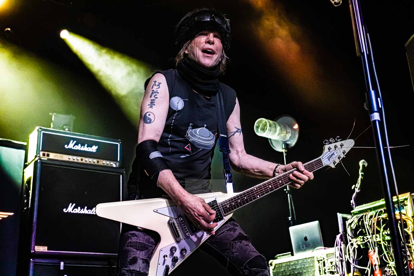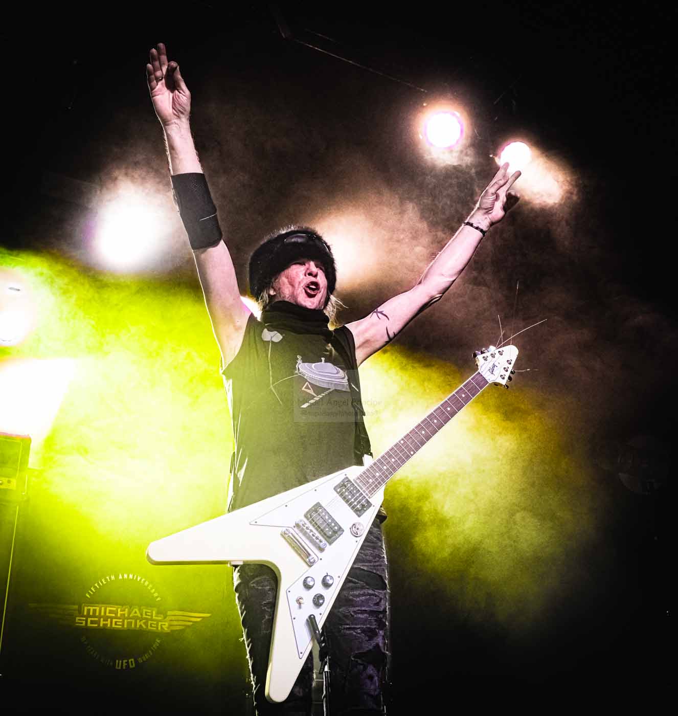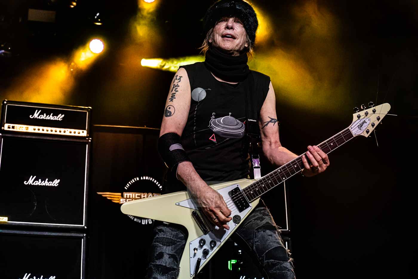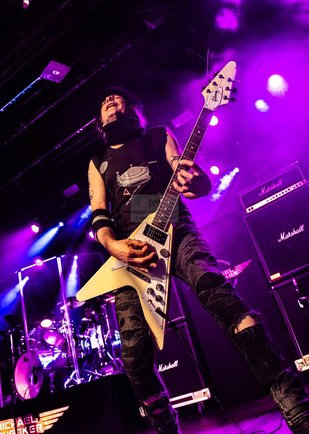 Sabíamos a lo que íbamos pero no sabíamos lo que nos esperaba y es que Michael empezó fuerte manteniendo la banda un brutal in crescendo durante toda la actuación, un show que honró a aquellos maravillosos años durante los cuales el seis cuerdas estuvo en las filas de UFO en un puro homenaje a estos que continuó con «Only You Can Rock Me», la cual puso en marcha y a prueba la garganta de los allí presentes que con las manos en alto estuvieron en clara connivencia con unos músicos entregados y comandados al micrófono por un valiente Dimitri quien pudo presumir de una potente voz que imprimió si esto es posible, aún más carácter a los temas.