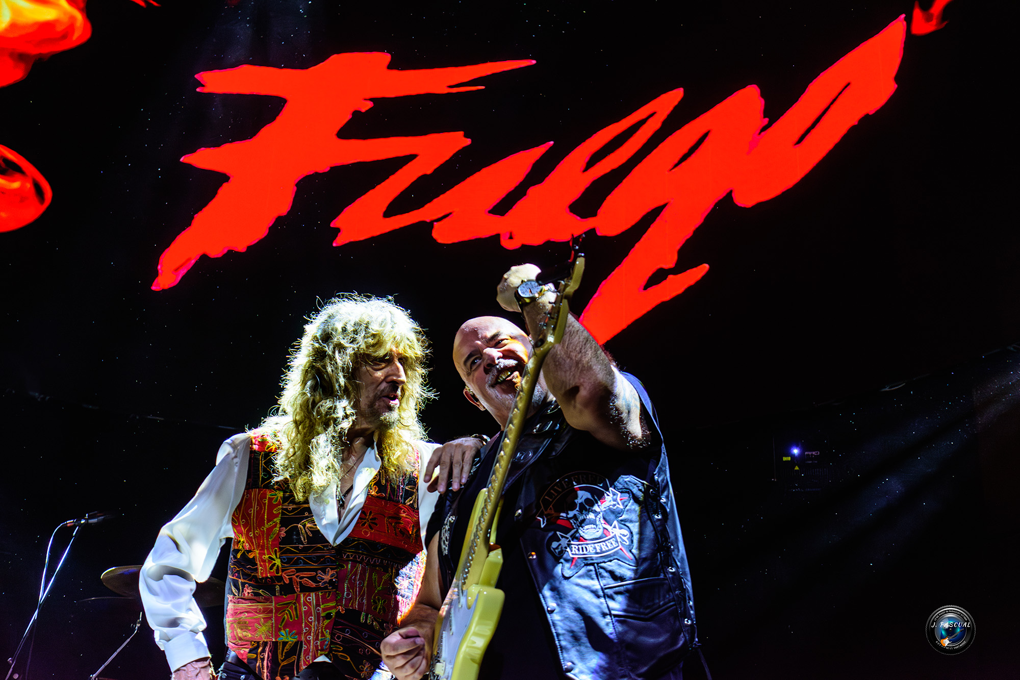 Estructurado en dos partes claramente diferencias el concierto empezaba con apenas ocho minutos de retraso sobre la hora prevista con la esperada interpretación del álbum completo de Fuego y la presencia de Jero que era recibido por una gran ovación en el momento en el que aparecía sobre el escenario, para atacar junto a Juan Miguel Rodríguez a los teclados y la habitual y potente base rítmica de la banda en estos últimos tiempos conformada por Cesar Sánchez al bajo y Óscar Pérez a la batería los primeros e inconfundibles acordes de «Nessa», momento en el que Molina se incorporaba al escenario, ataviado convenientemente para la ocasión con esa icónica casaca roja que luce en la portada del álbum, prácticamente sin pausa ni respiro seguirían «Caballeros de Hierro» y «Lucifer» para ahora si dejar que José Carlos tomara por primera vez brevemente la palabra, antes de hacer arder literalmente la sala con «Fuego».