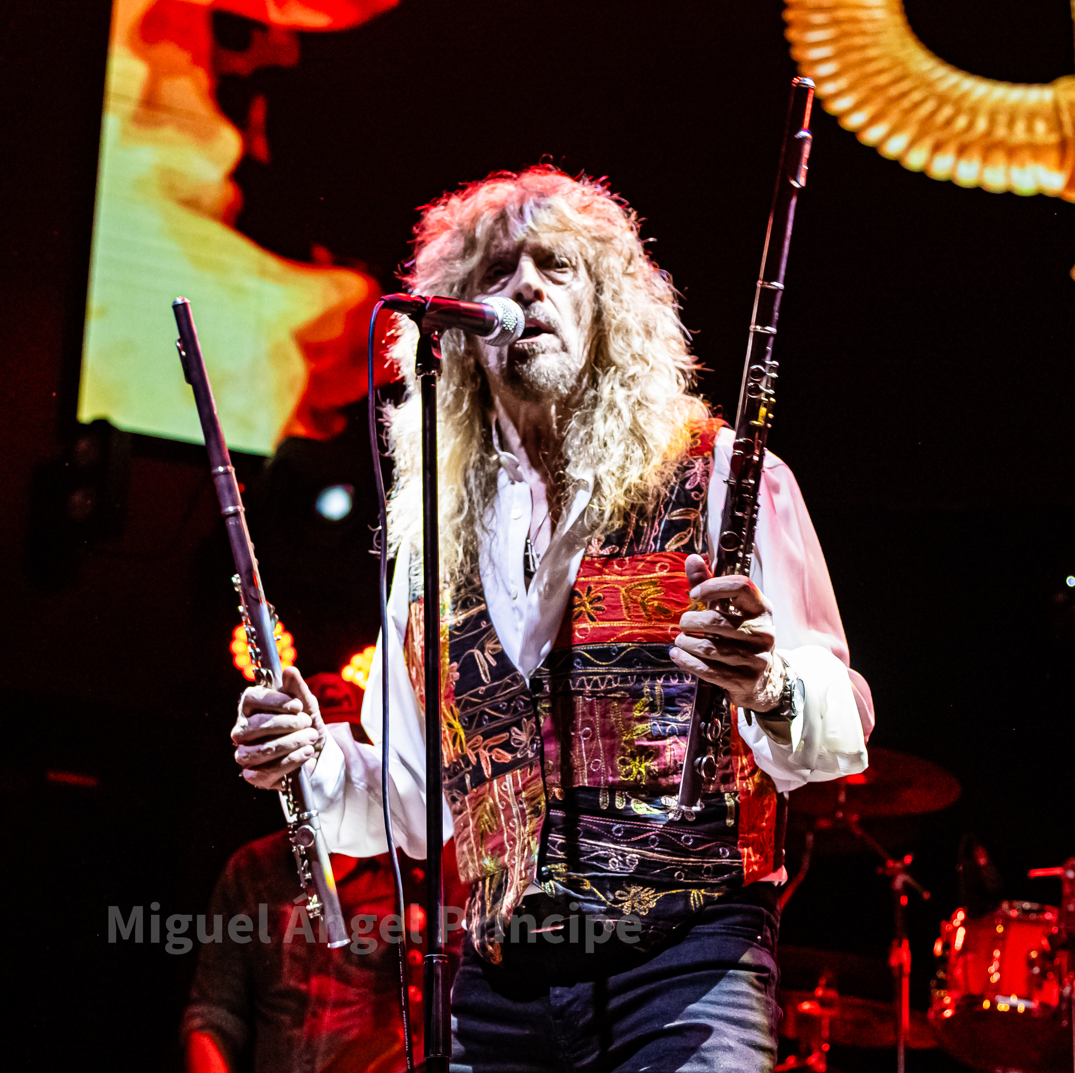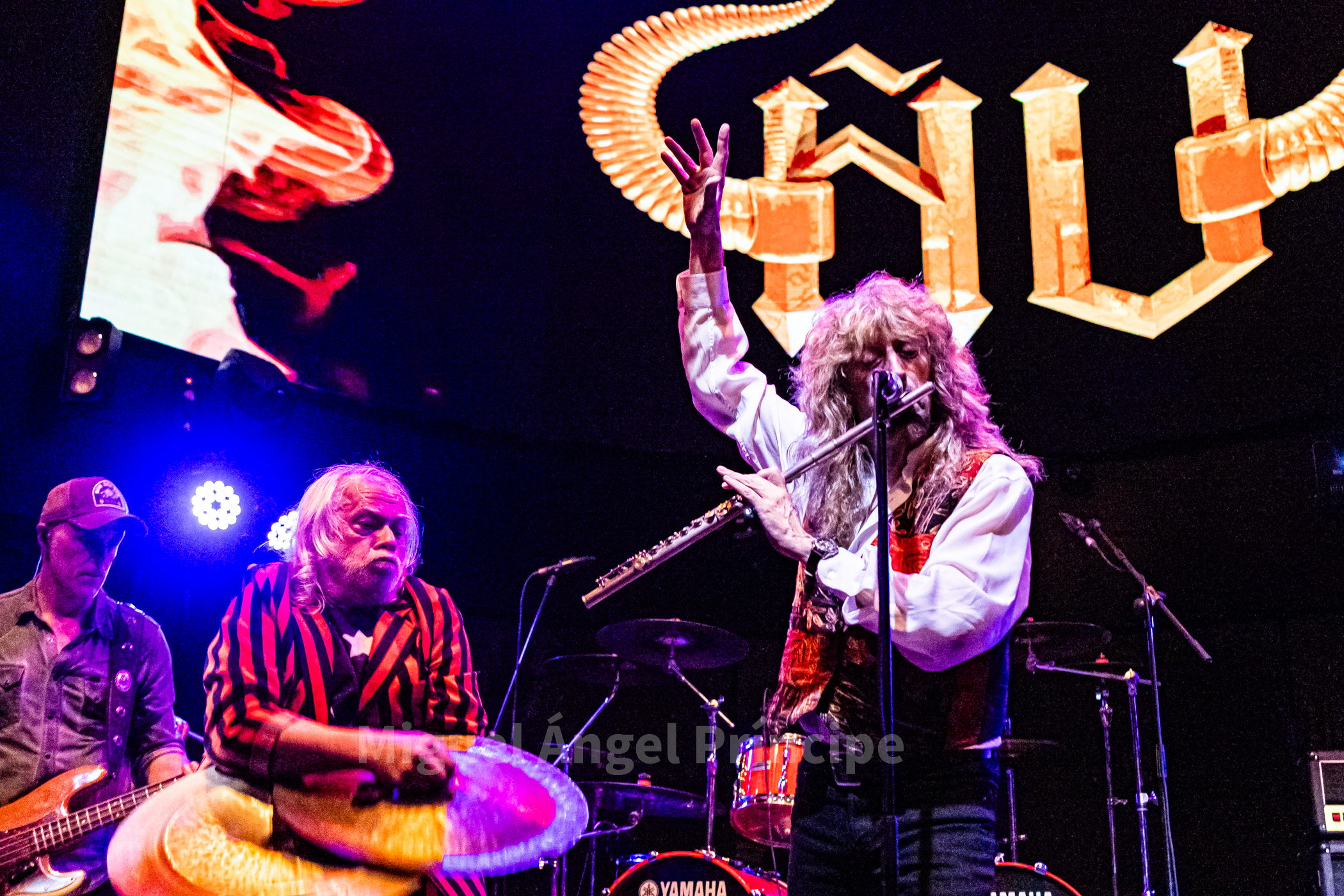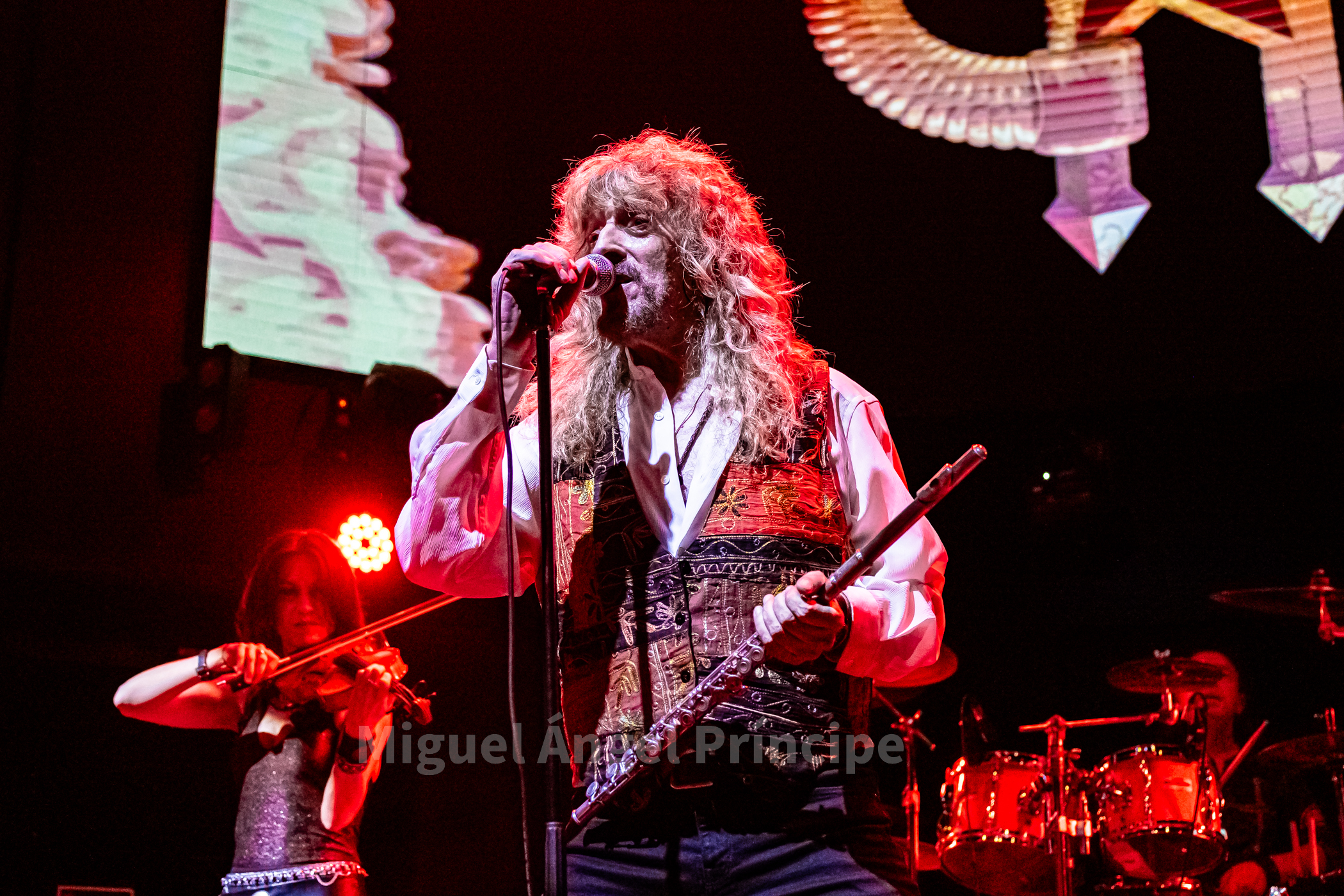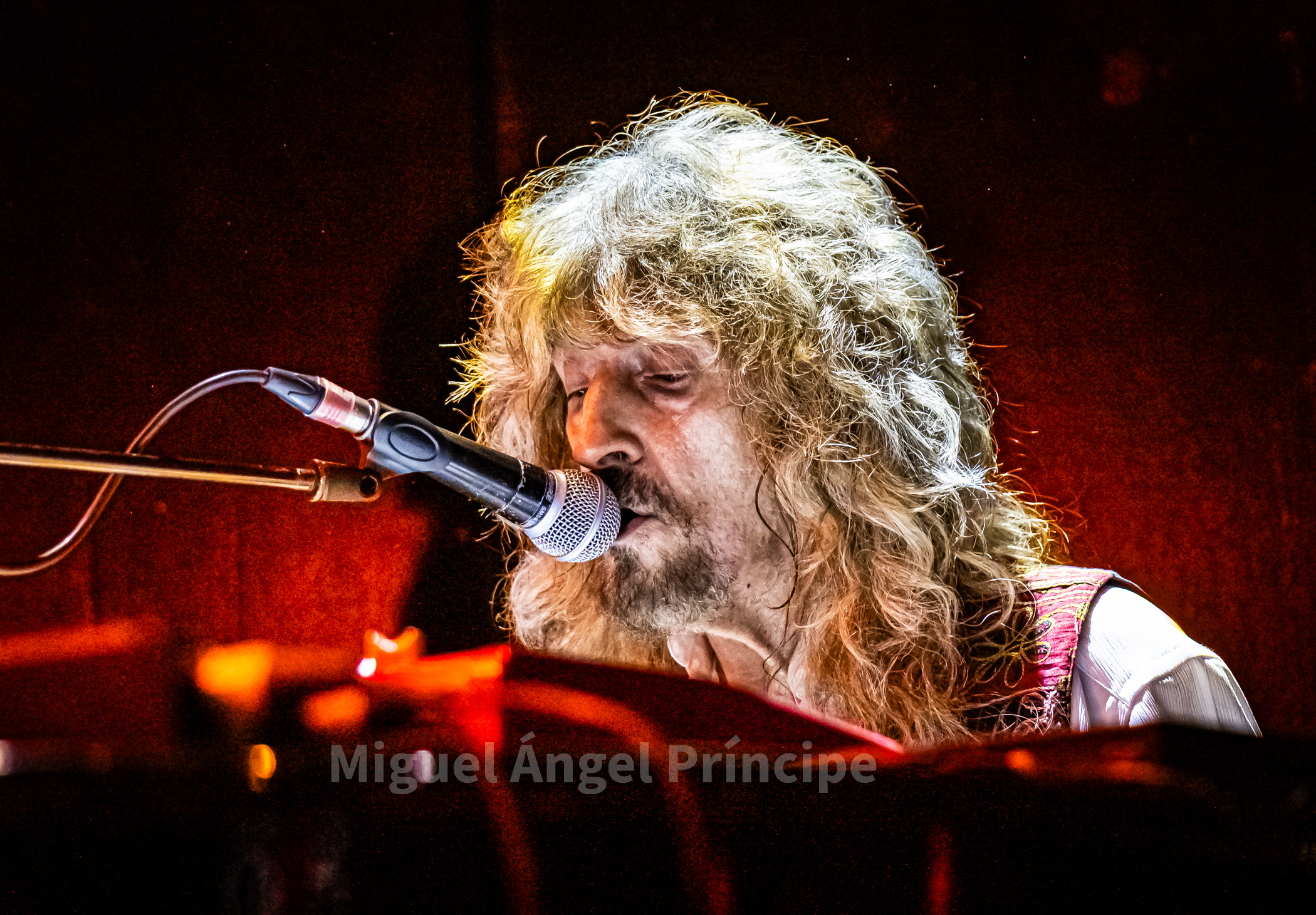 Tras un no muy velado mensaje sobre la mansedumbre de la sociedad actual, lanzado para tras un tanto accidentado comienzo por la falta de sonido de la guitarra acústica de Molina, solventado con humor e iniciando prácticamente a cappella finalmente «La Revolución» que nos traería a la finalización del mismo a un nuevo miembro de la banda sobre el escenario con la irrupción de Peter Mayr a golpe de platillo, para tomar su puesto a los mandos del Hammond y unirse a sus compañeros ya hasta el final de la noche, en un recital que continuaría con «El Hombre de Fuego» en una bacanal instrumental por parte de cada uno de sus componentes, con reminiscencias a Deep Purple de las que no dejan indiferentes a nadie y que continuarían con «La Bailarina» sonando por toda la sala como si de una sola voz se tratase. Llegado este momento era el turno de calmar un poco los ánimos con Molina sentado al piano para interpretar «Flor de Metal» y meternos ya en la recta final de esta primera parte con la potencia de las cuerdas de Jero provocando que a más de uno se nos pusieran los pelos de punta al son de «Más Duro que Nunca» que hacía que la sala se viniera abajo.