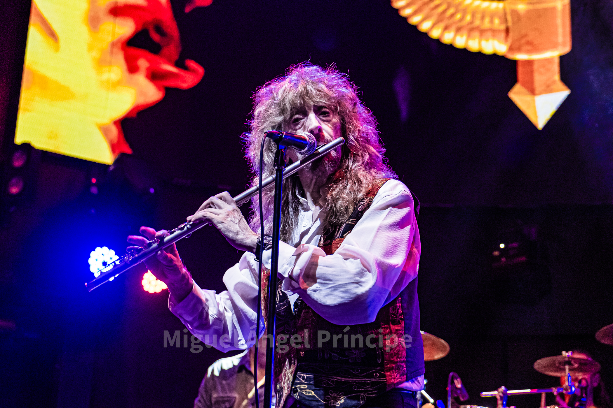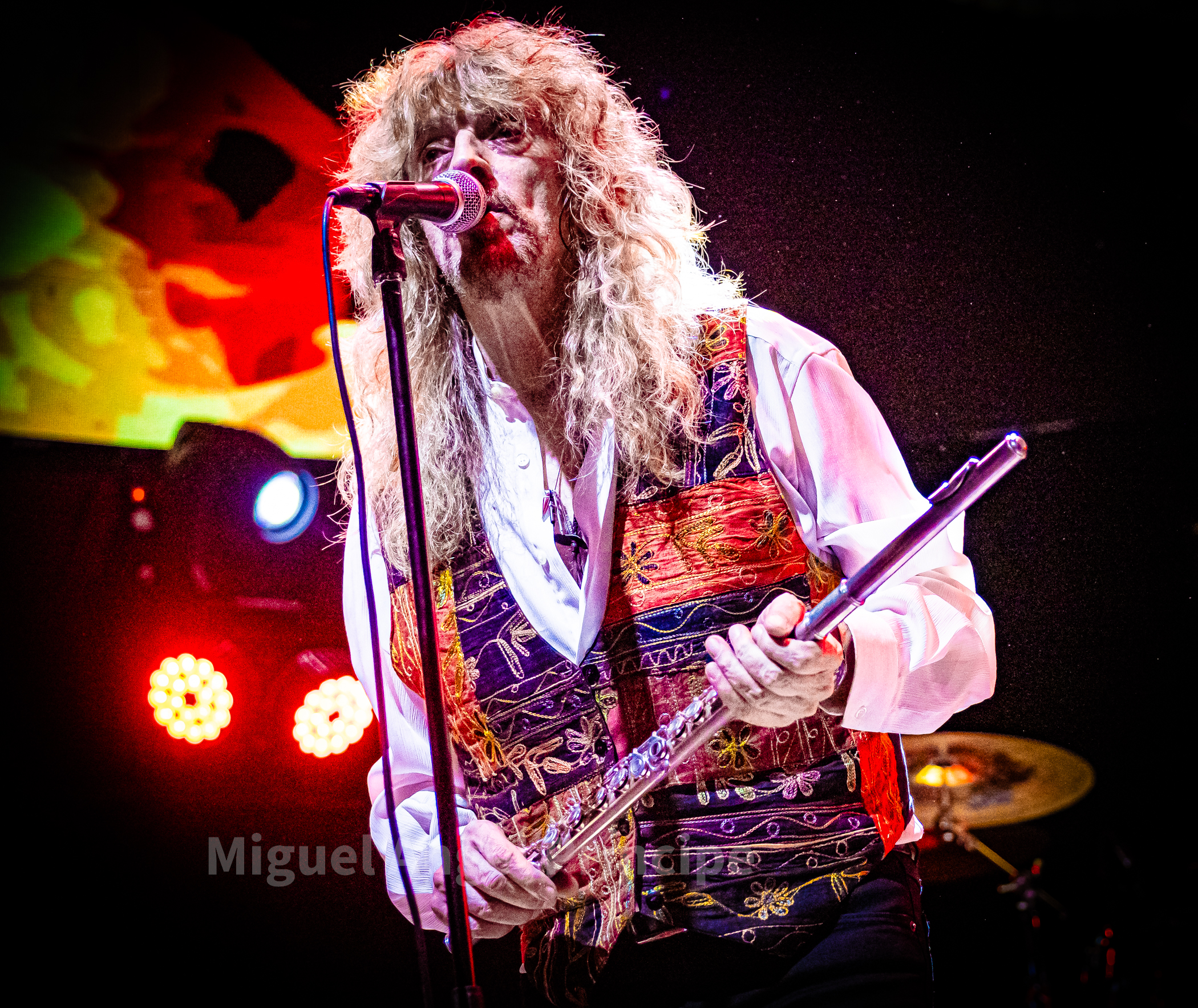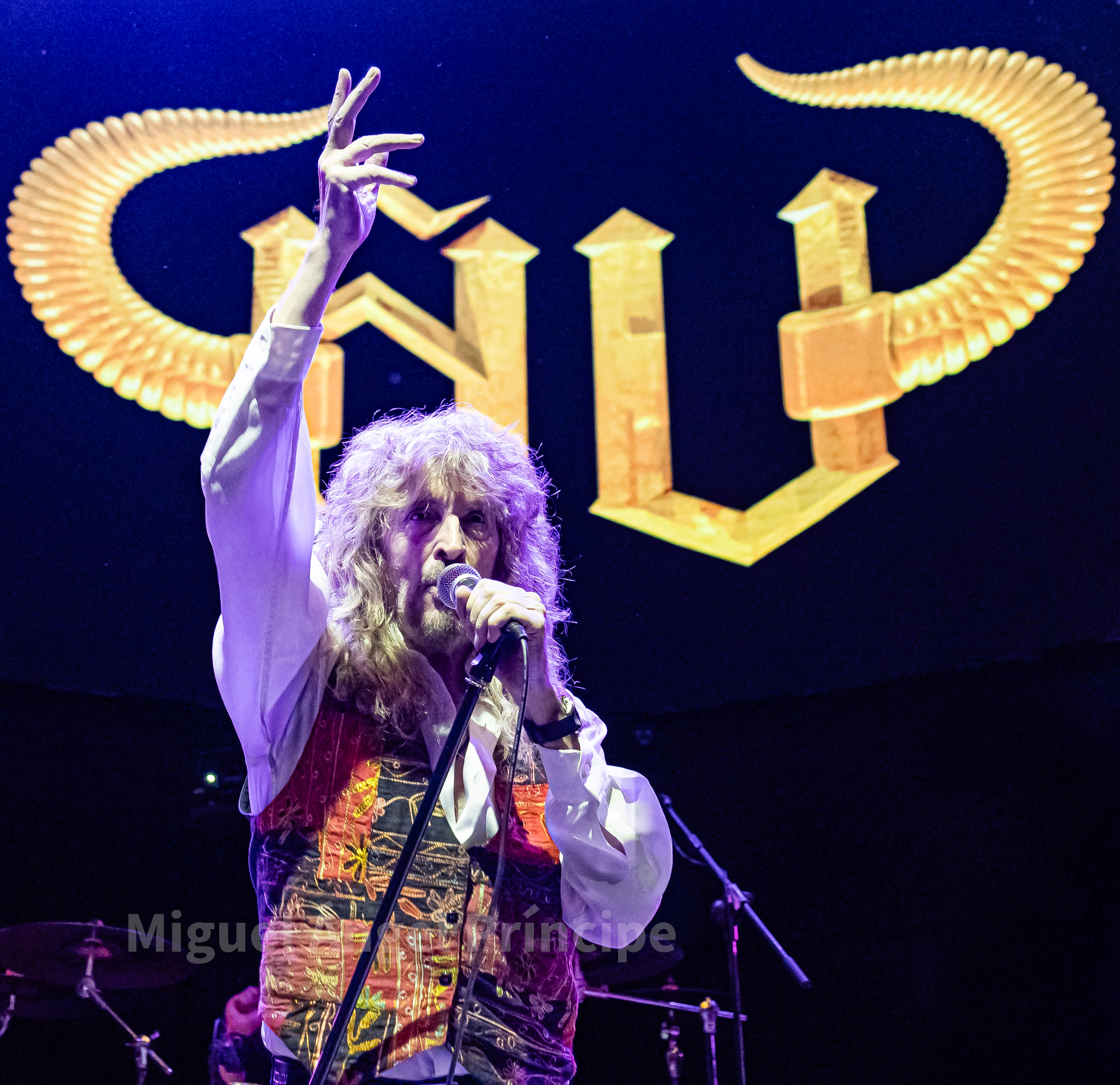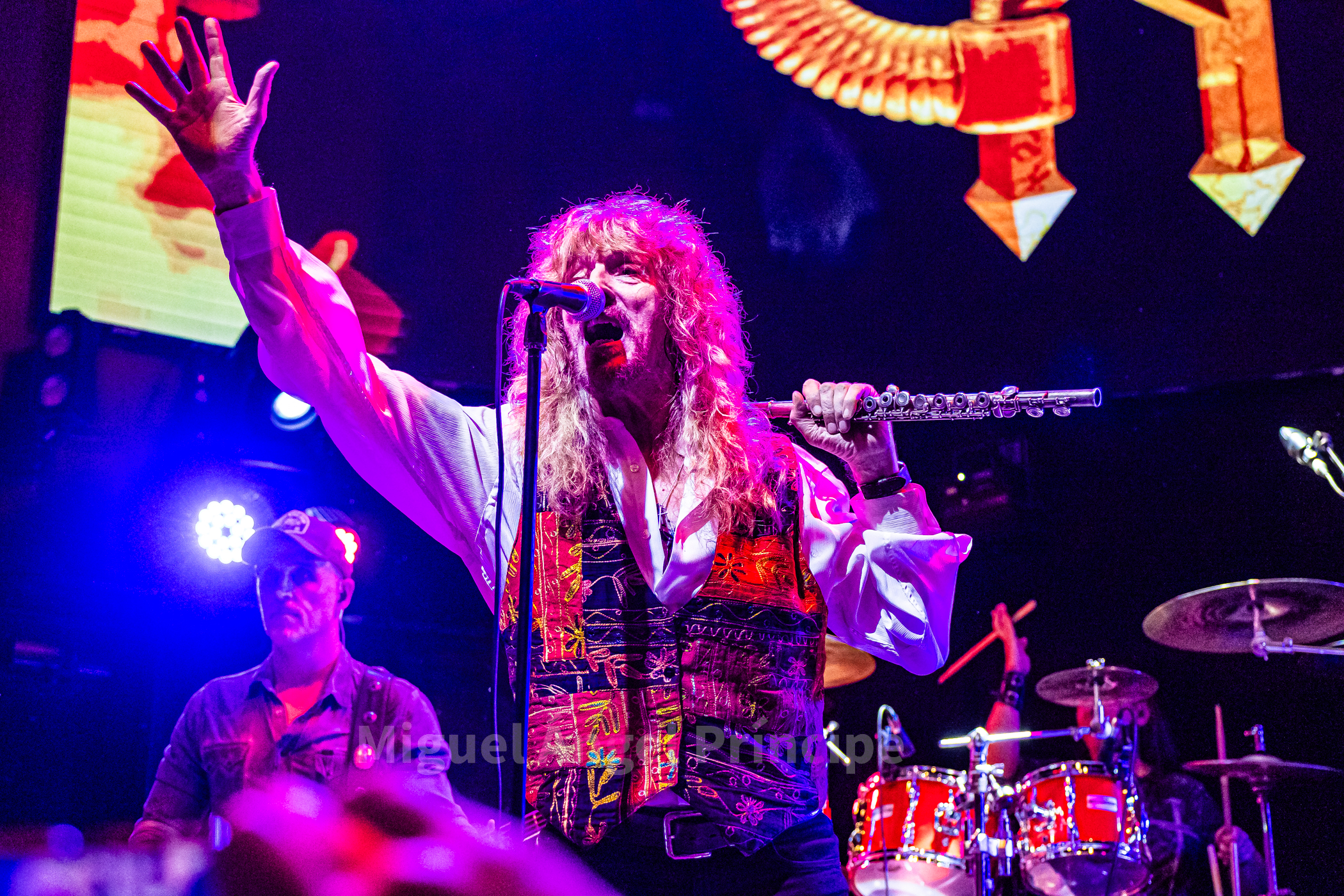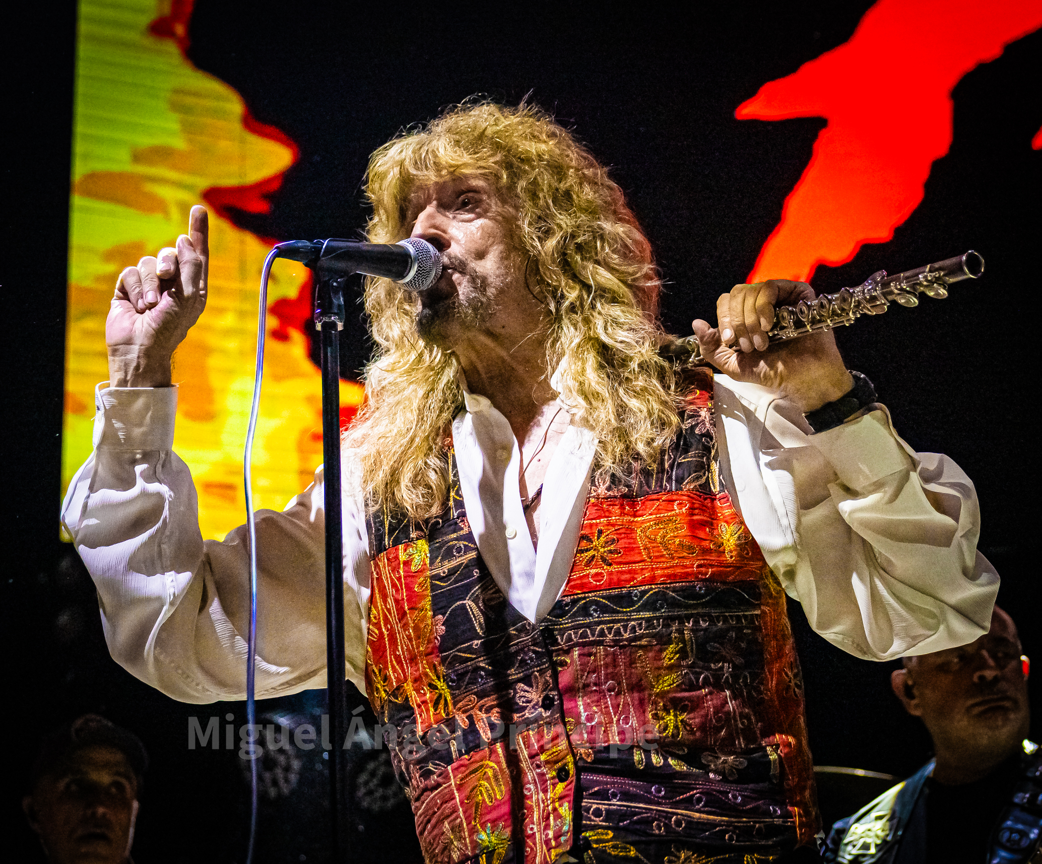 Tras un no muy velado mensaje sobre la mansedumbre de la sociedad actual, lanzado para tras un tanto accidentado comienzo por la falta de sonido de la guitarra acústica de Molina, solventado con humor e iniciando prácticamente a cappella finalmente «La Revolución» que nos traería a la finalización del mismo a un nuevo miembro de la banda sobre el escenario con la irrupción de Peter Mayr a golpe de platillo, para tomar su puesto a los mandos del Hammond y unirse a sus compañeros ya hasta el final de la noche, en un recital que continuaría con «El Hombre de Fuego» en una bacanal instrumental por parte de cada uno de sus componentes, con reminiscencias a Deep Purple de las que no dejan indiferentes a nadie y que continuarían con «La Bailarina» sonando por toda la sala como si de una sola voz se tratase. Llegado este momento era el turno de calmar un poco los ánimos con Molina sentado al piano para interpretar «Flor de Metal» y meternos ya en la recta final de esta primera parte con la potencia de las cuerdas de Jero provocando que a más de uno se nos pusieran los pelos de punta al son de «Más Duro que Nunca» que hacía que la sala se viniera abajo.