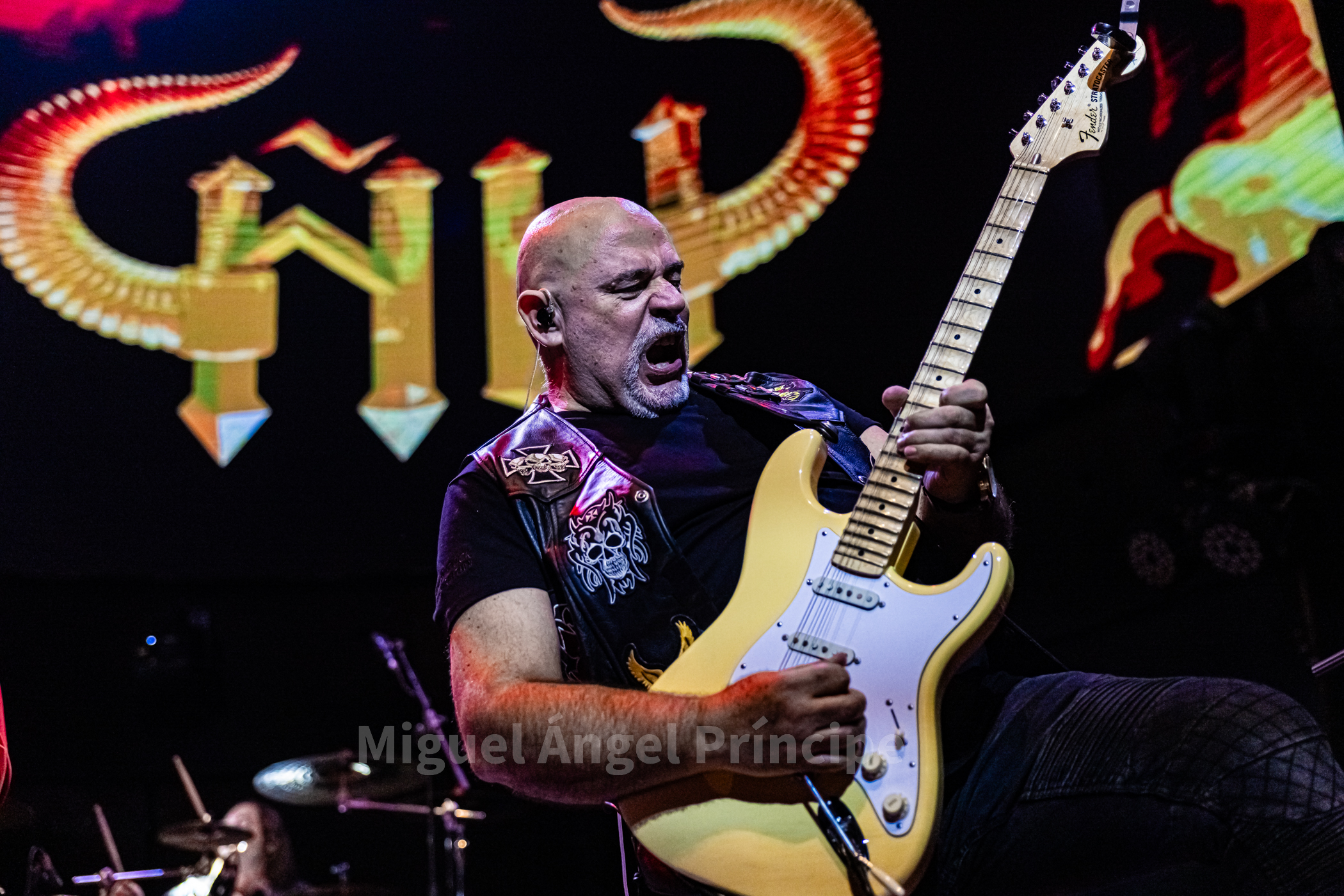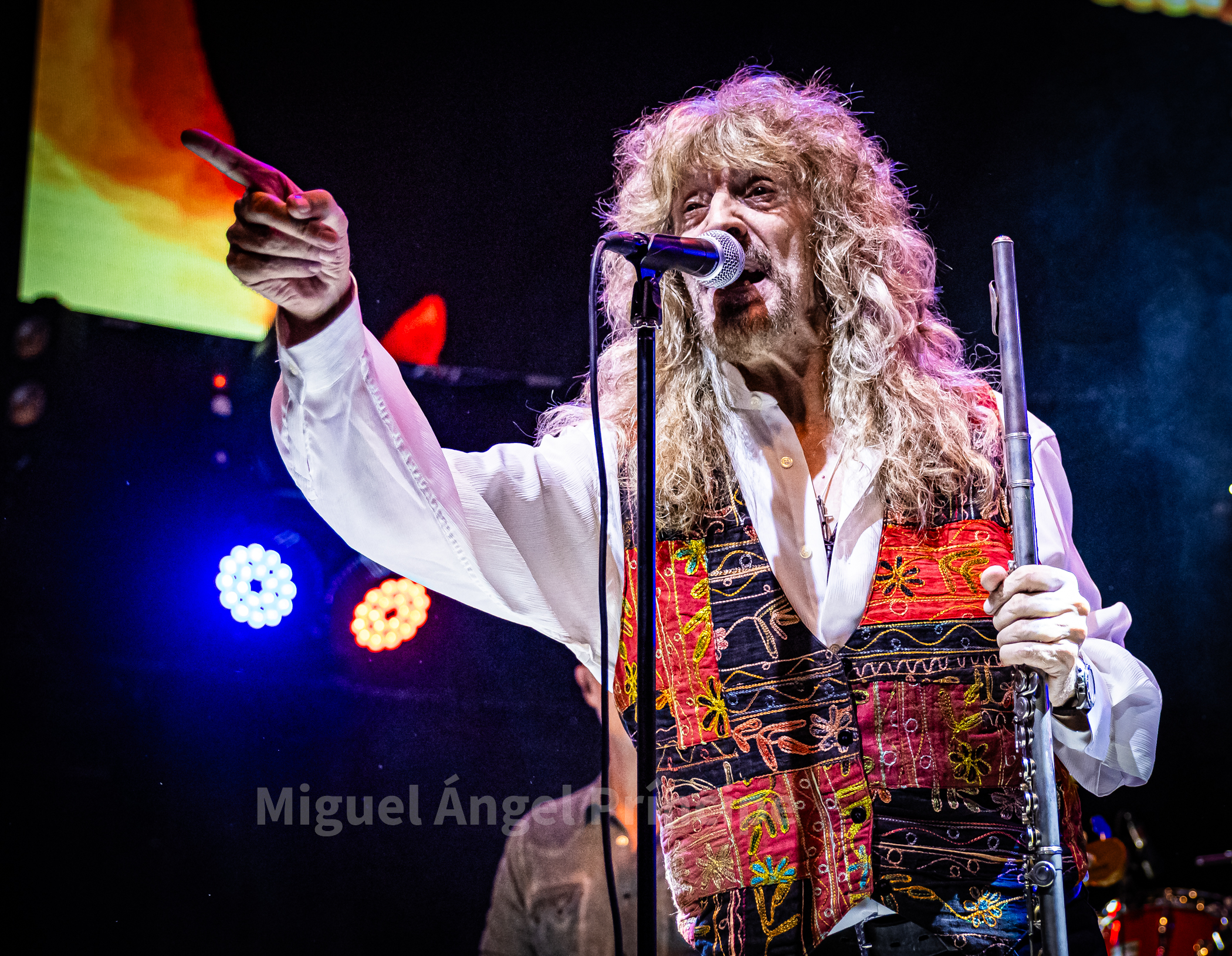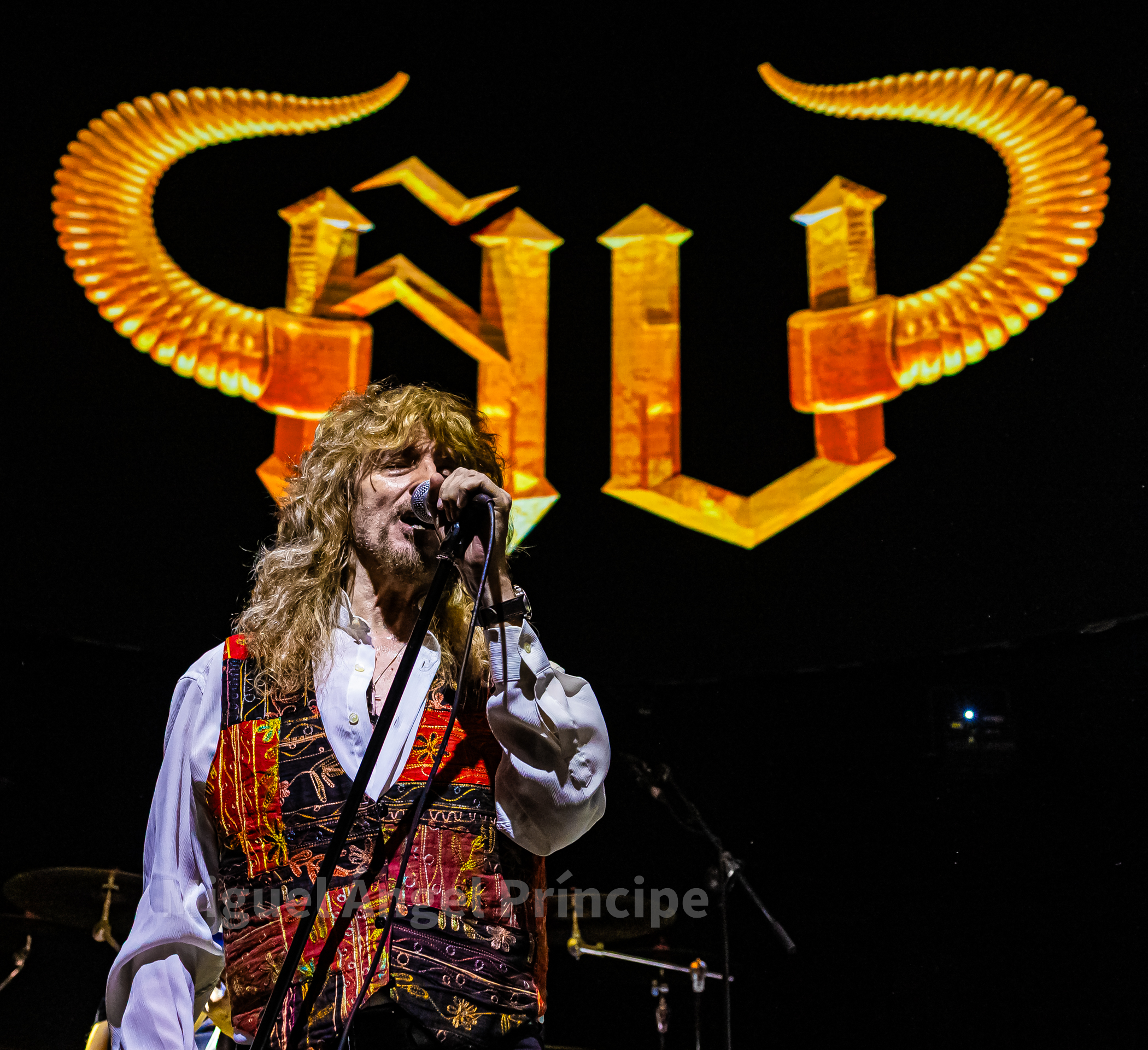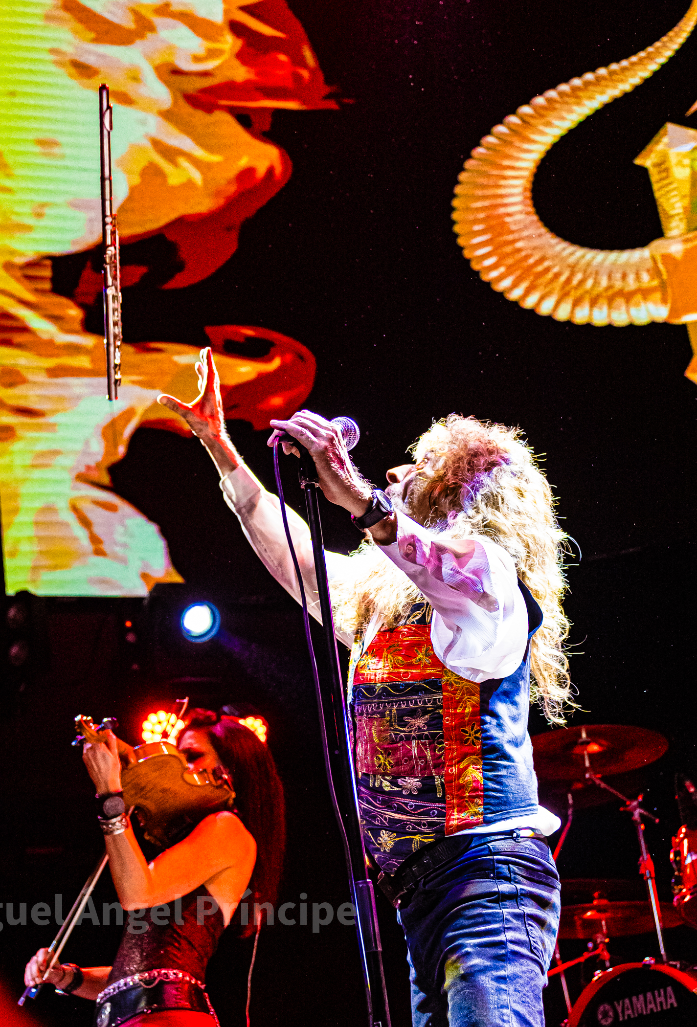 Tras un no muy velado mensaje sobre la mansedumbre de la sociedad actual, lanzado para tras un tanto accidentado comienzo por la falta de sonido de la guitarra acústica de Molina, solventado con humor e iniciando prácticamente a cappella finalmente «La Revolución» que nos traería a la finalización del mismo a un nuevo miembro de la banda sobre el escenario con la irrupción de Peter Mayr a golpe de platillo, para tomar su puesto a los mandos del Hammond y unirse a sus compañeros ya hasta el final de la noche, en un recital que continuaría con «El Hombre de Fuego» en una bacanal instrumental por parte de cada uno de sus componentes, con reminiscencias a Deep Purple de las que no dejan indiferentes a nadie y que continuarían con «La Bailarina» sonando por toda la sala como si de una sola voz se tratase. Llegado este momento era el turno de calmar un poco los ánimos con Molina sentado al piano para interpretar «Flor de Metal» y meternos ya en la recta final de esta primera parte con la potencia de las cuerdas de Jero provocando que a más de uno se nos pusieran los pelos de punta al son de «Más Duro que Nunca» que hacía que la sala se viniera abajo.