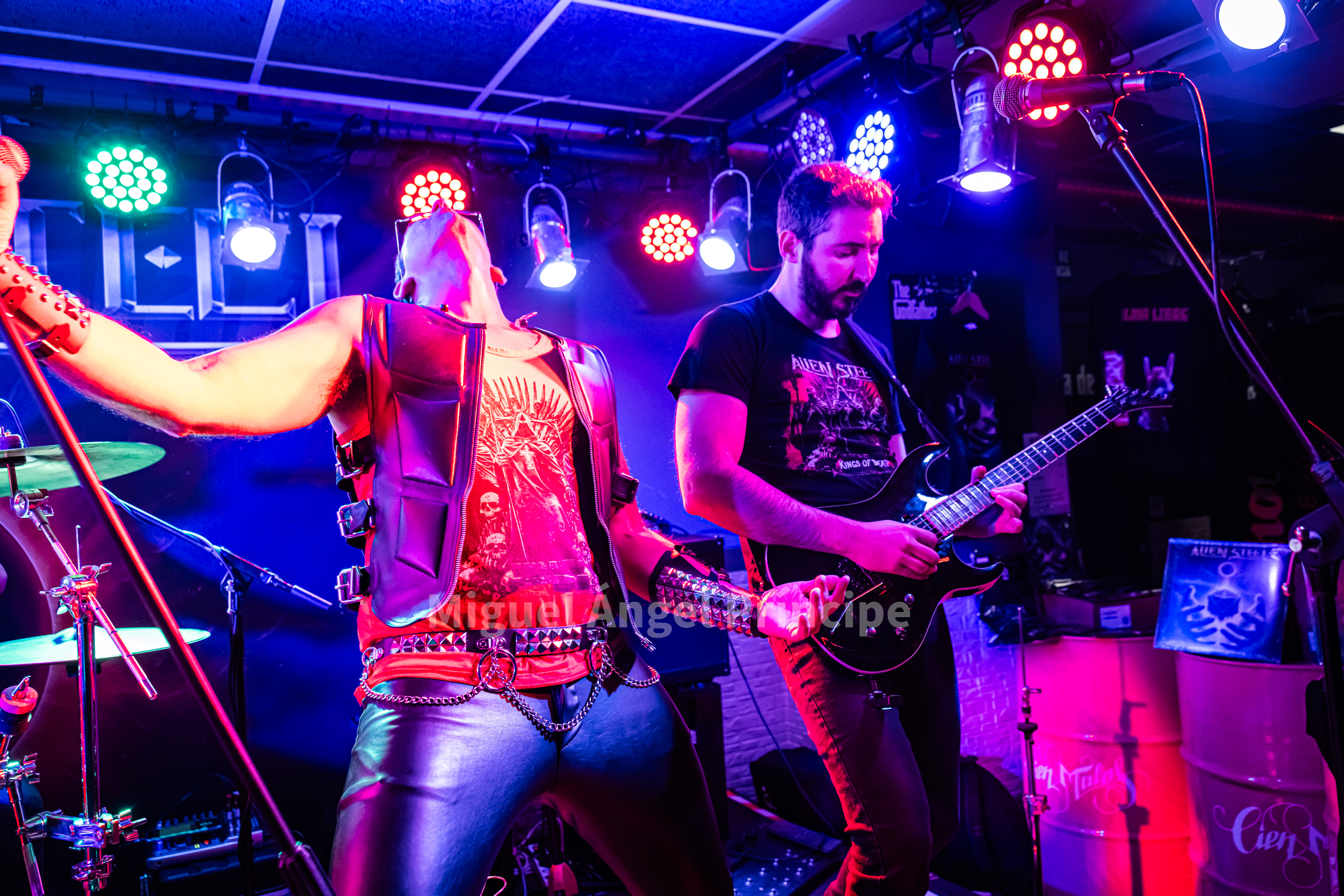 La apertura de puertas estaba prevista a las 21:00 pero a esa hora aún estaban las bandas probando sonido, hecho que demoró el inicio del concierto para en torno a las 22:35 subirse al escenario ALIEN STEEL con mucho cuero en su estética predominando el negro, además de unas grandes muñequeras de pinchos en los brazos del cantante que hacían presagiar para los que no los conociéramos que el combo nos iba a presentar autentico Heavy Metal en su descarga, como así fue finalmente.