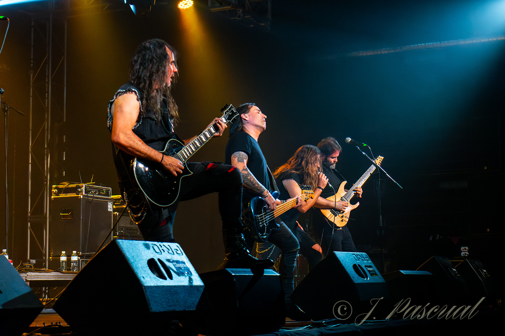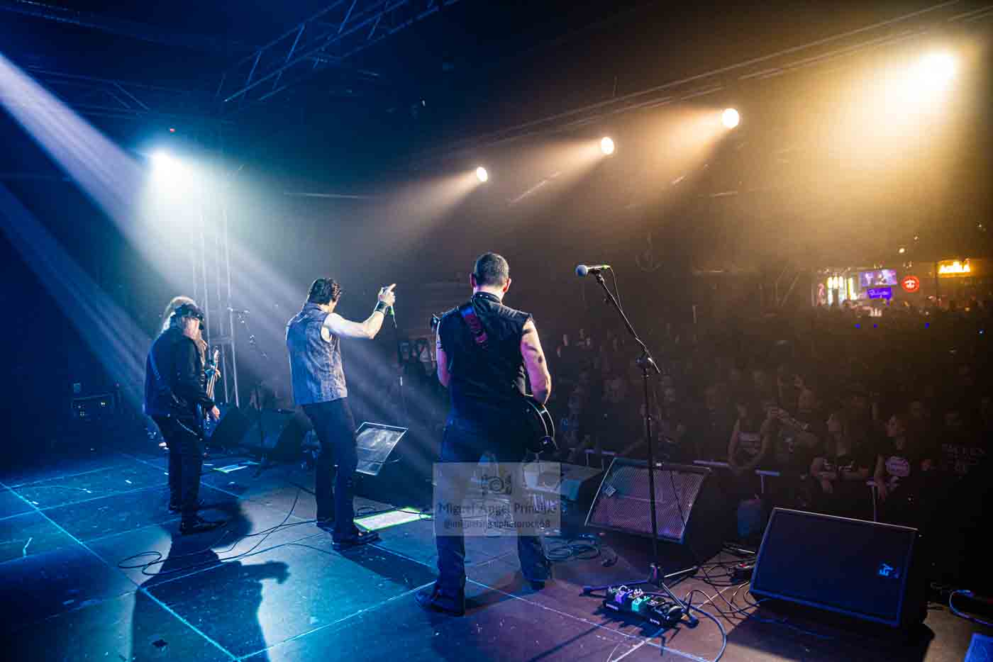 «Hoy Por fin» un tremendo y contundente tema, nos dejaba una muestra más del gran trabajo realizado por las guitarras de Enrique y Óscar a lo largo de toda su descarga, «Renacer» pura adrenalina en forma de Power Metal, ampliamente coreada por la sala, dentro de esa misma senda nos llegaba «Tres y el Apocalipsis» donde los teclados pregrabados daban comienzo al tema, tras la marcha de su teclista al que esperemos pronto encuentren sucesor. «Volver a Nacer» nos retrotraía al año 2000 cuando se publicó Mafia, acercarnos al inexorable final que siempre nos parece demasiado cercano, sobre todo cuando lo que estamos viendo sobre el escenario merece la pena, «Tarde Ya» y «Sacrificio» eran los temas elegidos para el mismo, una auténtica explosión de Metal para dejar muy alto el pabellón, a la espera de tenerlos pronto de nuevo de visita, con su anunciado nuevo trabajo Aquelarre del que hace unos días pudimos conocer su portada.
