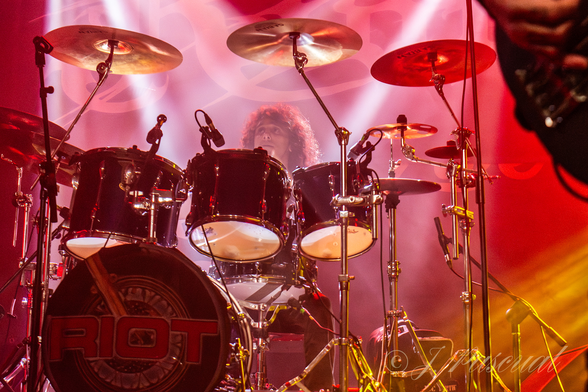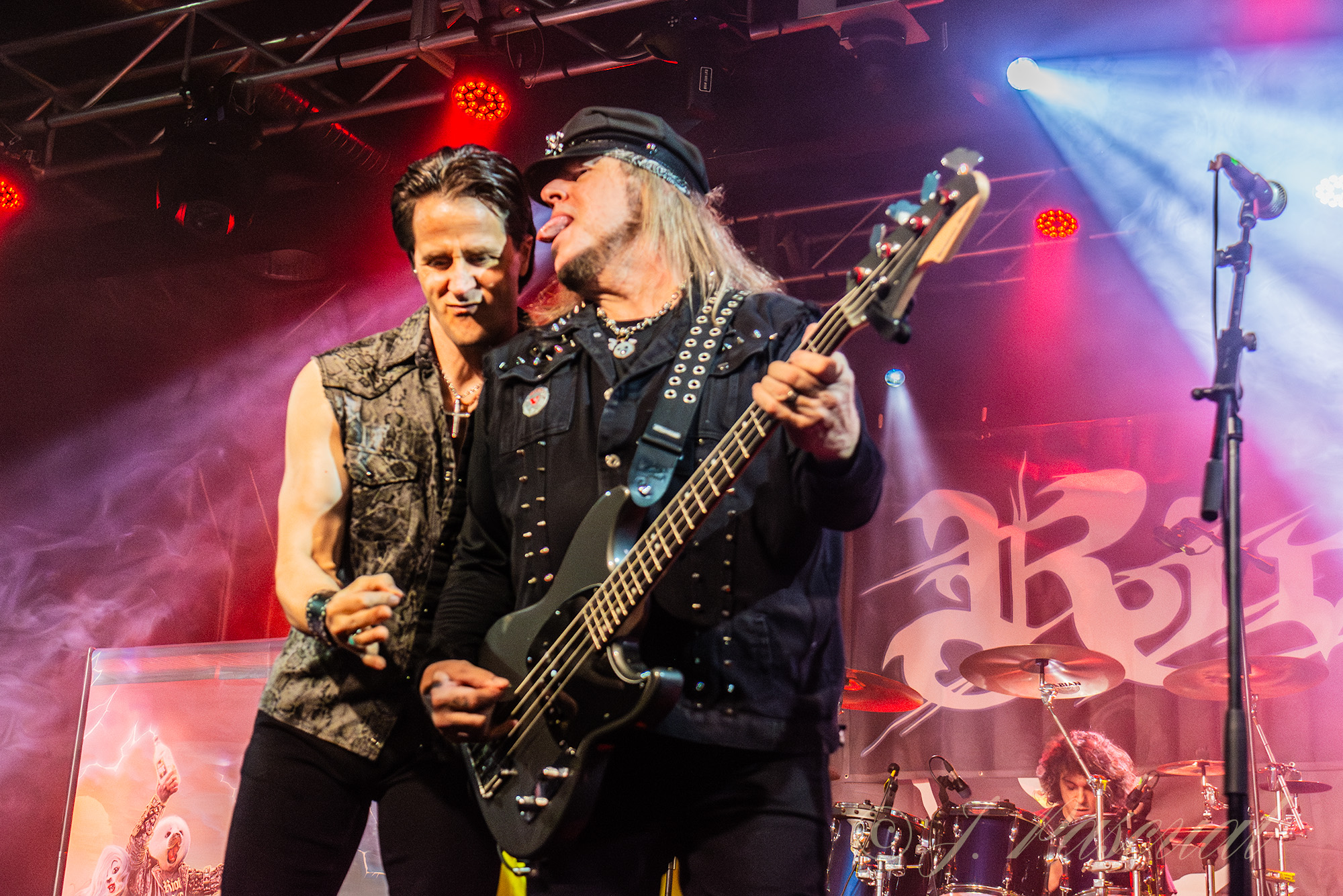 Tras el perceptivo cambio se backline, los miembros de RIOT V poco a poco fueron apareciendo sobre el escenario para tomar posiciones, el primero de ellos Don Van Stavern, con su ya habitual botella de tequila José Cuervo, el batería Jesse Tudda, Jonathan Reinheimer y Mike Flyntz, a las guitarras y Todd Michael Hall a la voz. «Hail To The Warriors» de su más reciente trabajo, arrancaba entre los aplausos del público, ya entregado desde los primeros compases, como pudimos constatar en «Fight Or Fall», donde los puños al aire comenzaban a hacer acto de presencia mientras se coreaba su potente estribillo. Con «Road Racin» efectuábamos un viaje al pasado más concretamente al año 1979, para el deleite de los más veteranos seguidores de la banda, para continuar con el recorrido por su legado musical con otro épico tema como es «Warrior» incluido en el legendario álbum Thundersteel que en 1988 revolucionaria el sonido del Heavy Metal. Una cascada de grandes y reconocibles temas de la banda como «Bring The Hammer Down», «Johnnys Back» o «Restless Breed» hacían las delicias de un público, que no dejaba de corear con los puños en alto, cada nuevo tema.