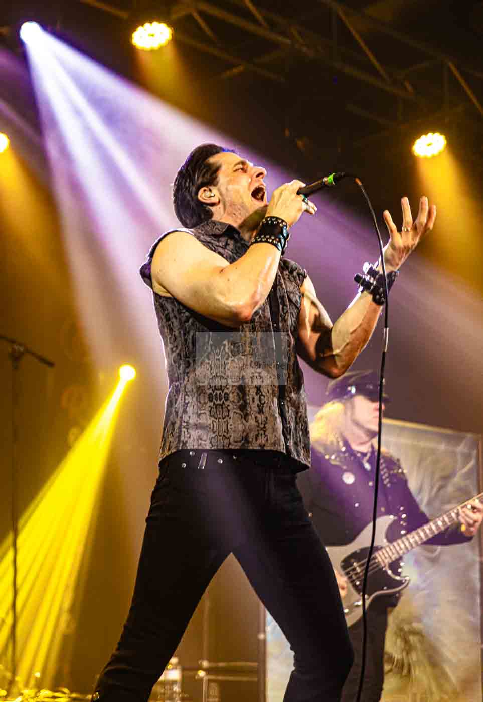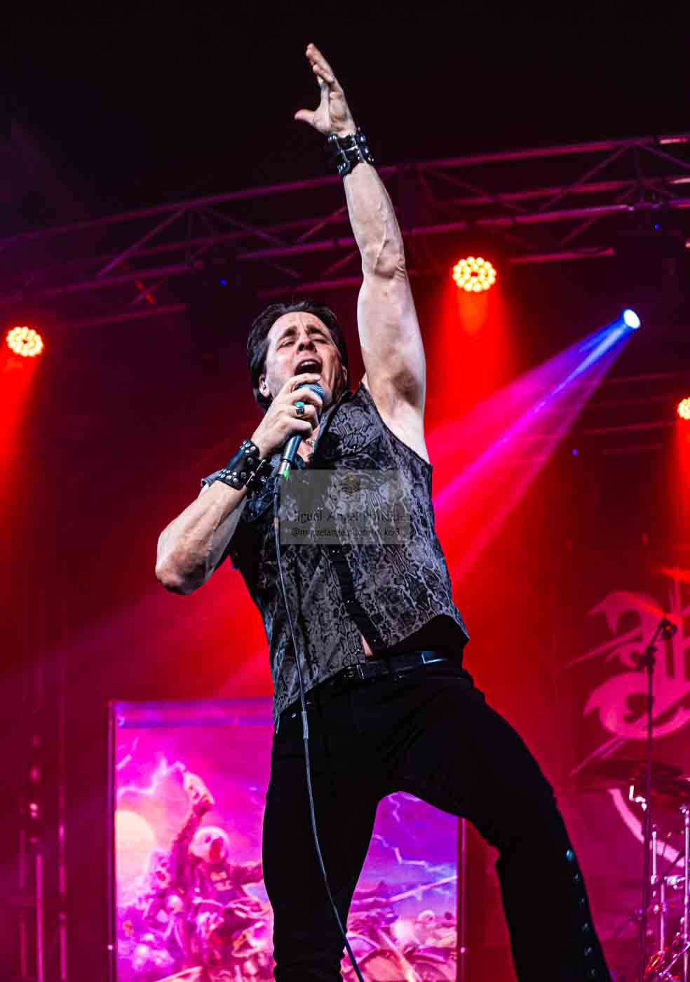 «Bloodstreets» daba esa parte de sosiego y emotividad siempre necesaria, para adentrarnos nuevamente en el presente de su último trabajo Mean Streets con «Love Beyonf The Grave» que se iniciaba de manos de la dupla formada por las hachas de Mike y Jonathan, y nos dejaba de nuevo uno de esos estribillos que se te quedan en la cabeza y que no puedes menos que repetir junto a la banda. Ya metidos en la parte final los trallazos se sucederían uno tras otro «Flight of the Warrior», «Swords and Tequila» para poner el punto y aparte con ese arrollador tema que es “Thundersteel” donde los riff, solos y melodía forman un conjunto difícilmente igualable para dejar el momento final bien arriba, Pero eso no era todo aún nos quedaba los siempre ansiados bises que aún nos dejarían momento para el recuerdo arrancando con “Take me Back”, para continuar con «Sign of the Crimson Storm» y decir el adiós definitivo con «Fire Down Under»