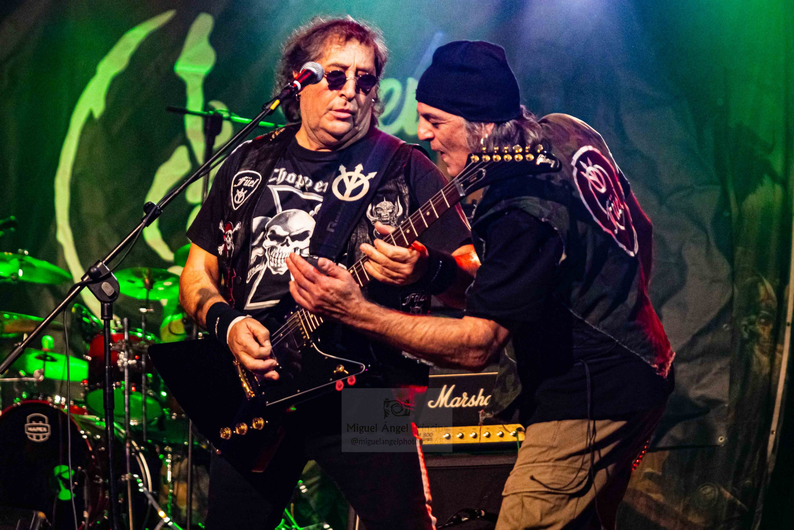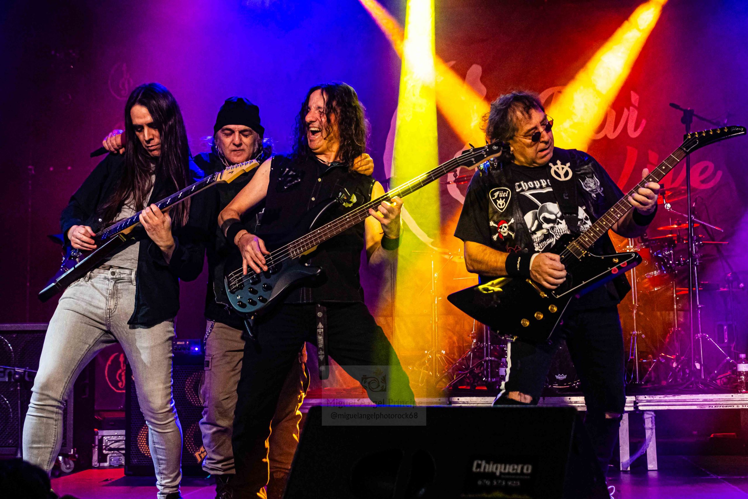 Afilados riffs, solos depurados y una excelente sintonía entre ambos seis cuerdas fueron claves para que cañonazos como «Bajo La Piel» con una imbatible batería en su inicio o la mítica «Füel» de extraordinario poderío en la garganta de Casillas incuestionable tanto en los agudos más nítidos como en los graves más exigentes, convivieran a la perfección con la base rítmica que el virtuoso bajista Alex Tormentor propinó de forma brillante con certeros slaps haciendo que tanto las citadas como «Los Salvajes», «De Un Tiempo A Esta Parte» o «Una Noche Más» redondearan una actuación sin fisuras.