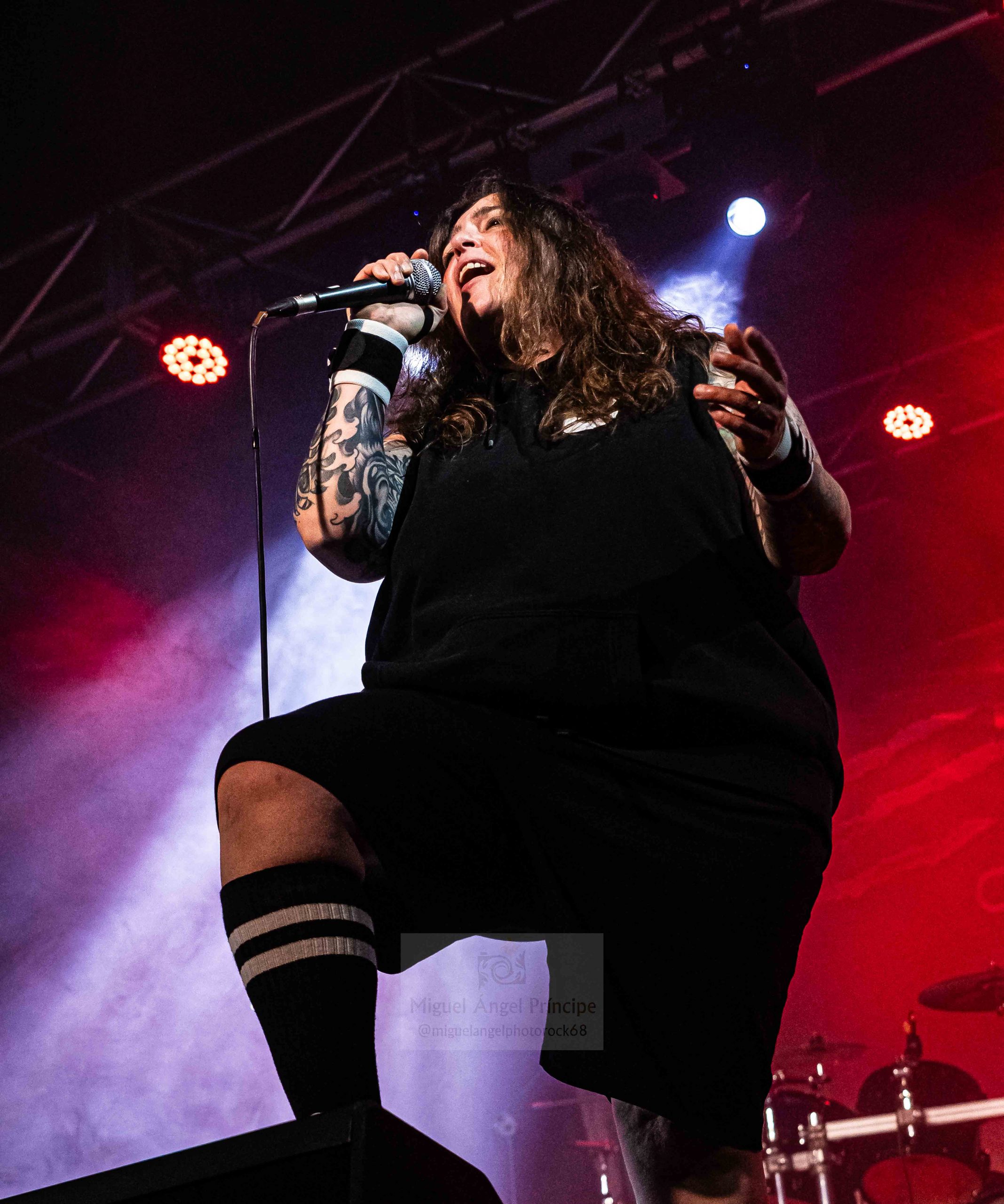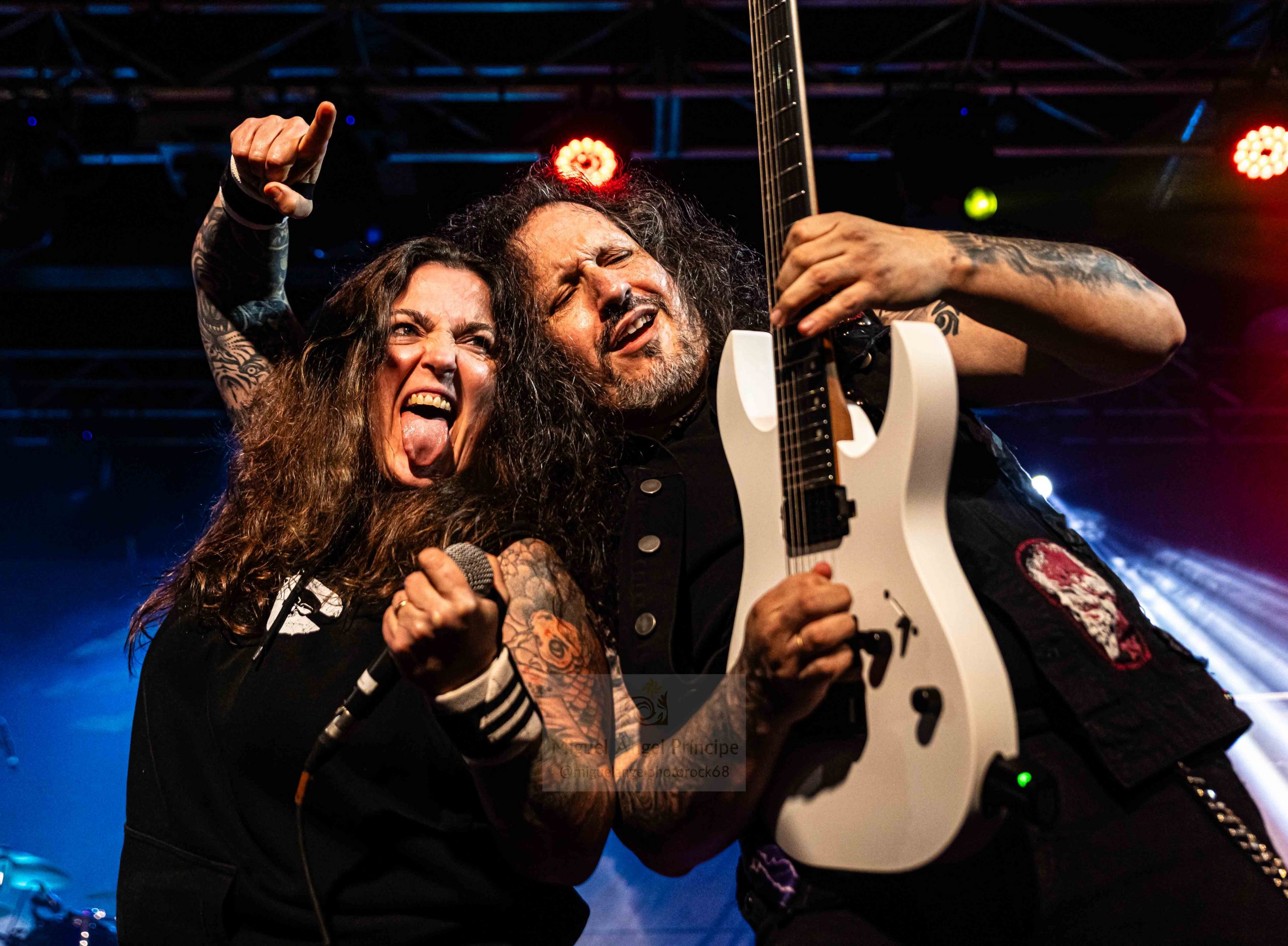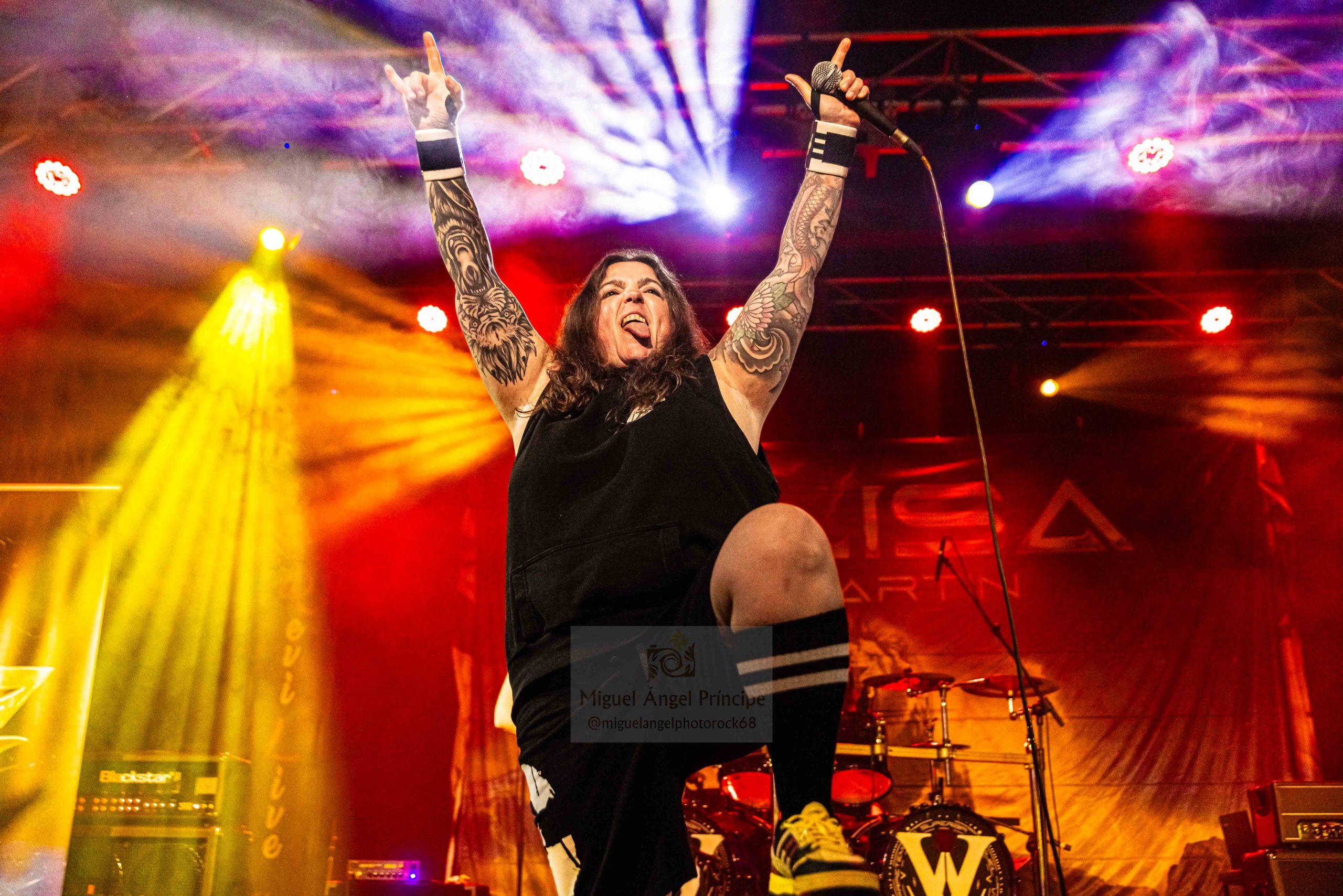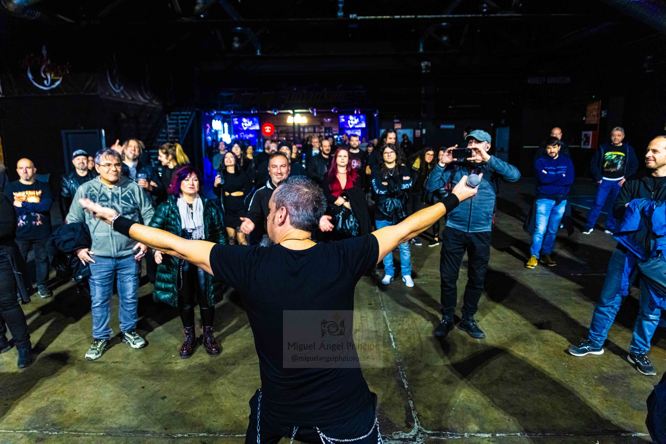 Manteniendo la velada una alta línea de calidad y creándose poco a poco una atmósfera cada vez más propicia para que el público interactuase con los músicos, llegó el momento de disfrutar con ELISA C. MARTIN cuya sola aparición sobre la tarima llenó ésta pues nuestra vocalista de raza y de Heavy Metal sabe arrastrar como un huracán a la gente que presencia sus directos, conminando siempre a la feligresía para que colabore en sus shows que van más allá de lo estrictamente musical al estar también a la altura de su indiscutible voz una actitud sobre las tablas tan vibrante como inapelable y contagiosa.