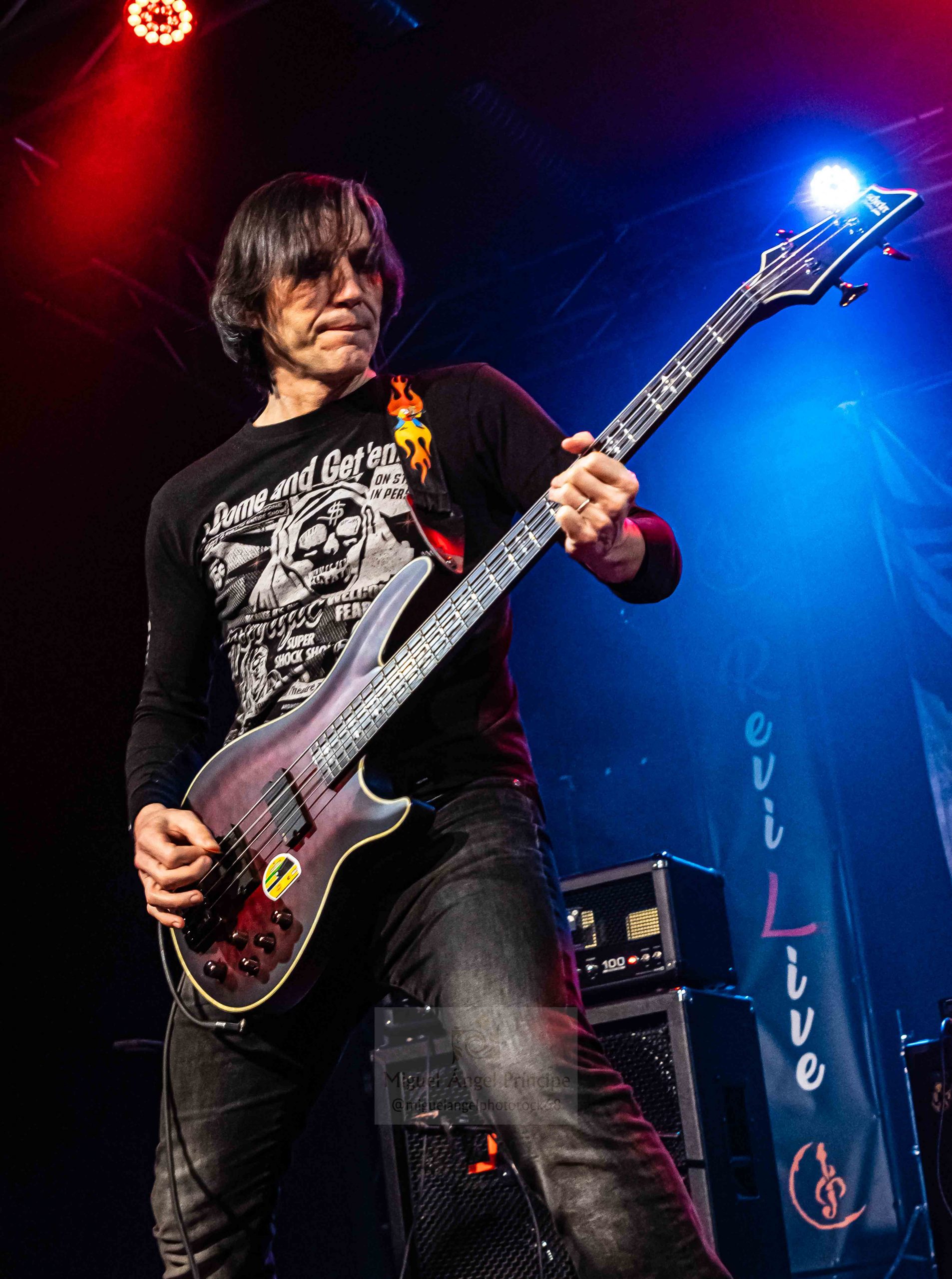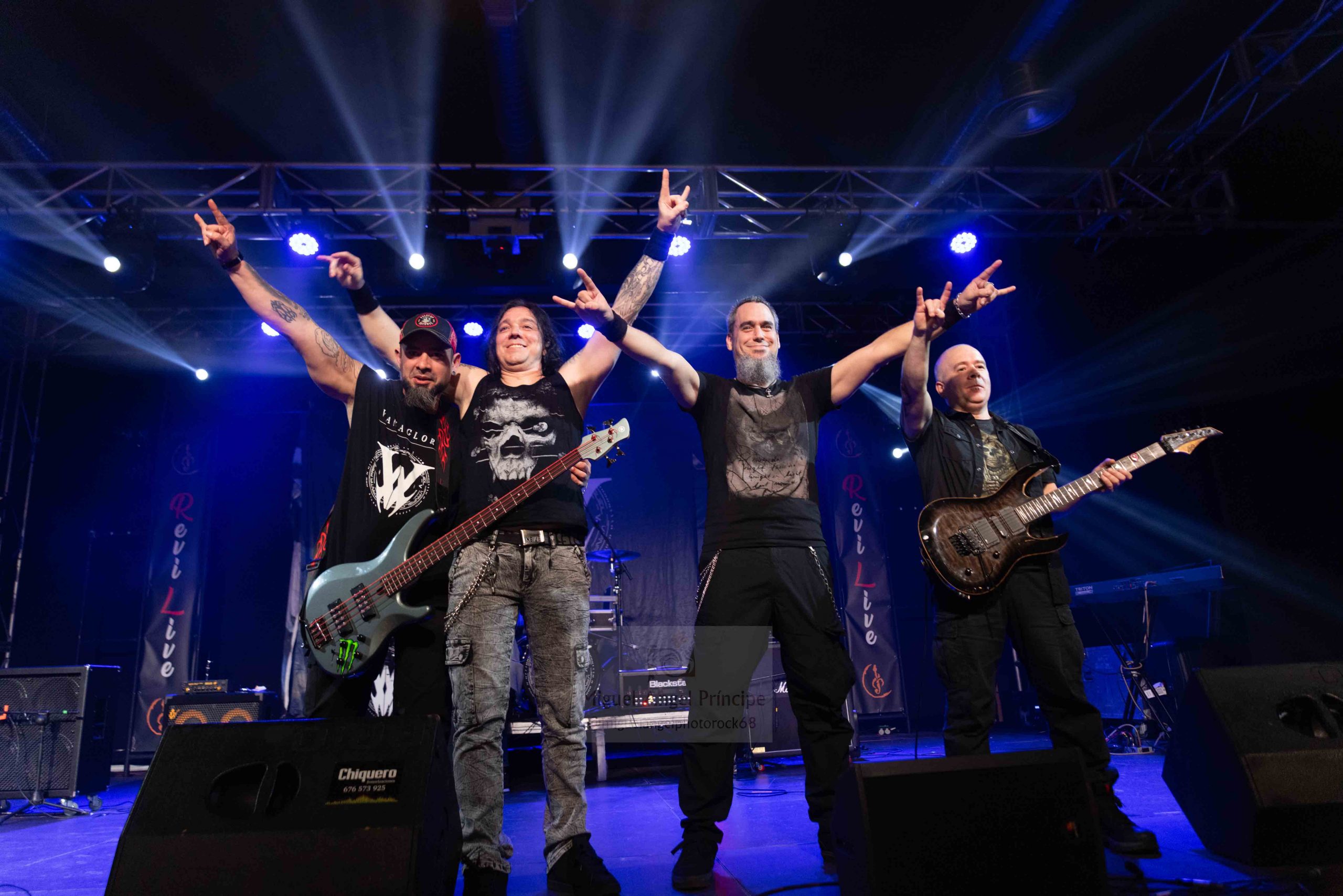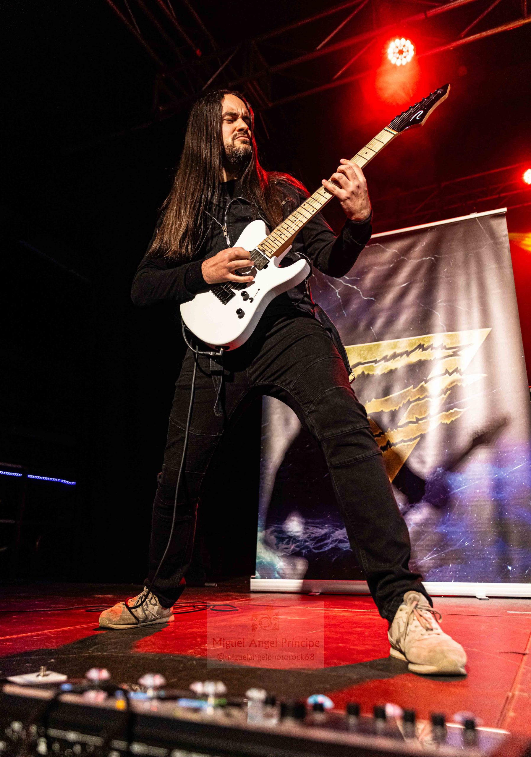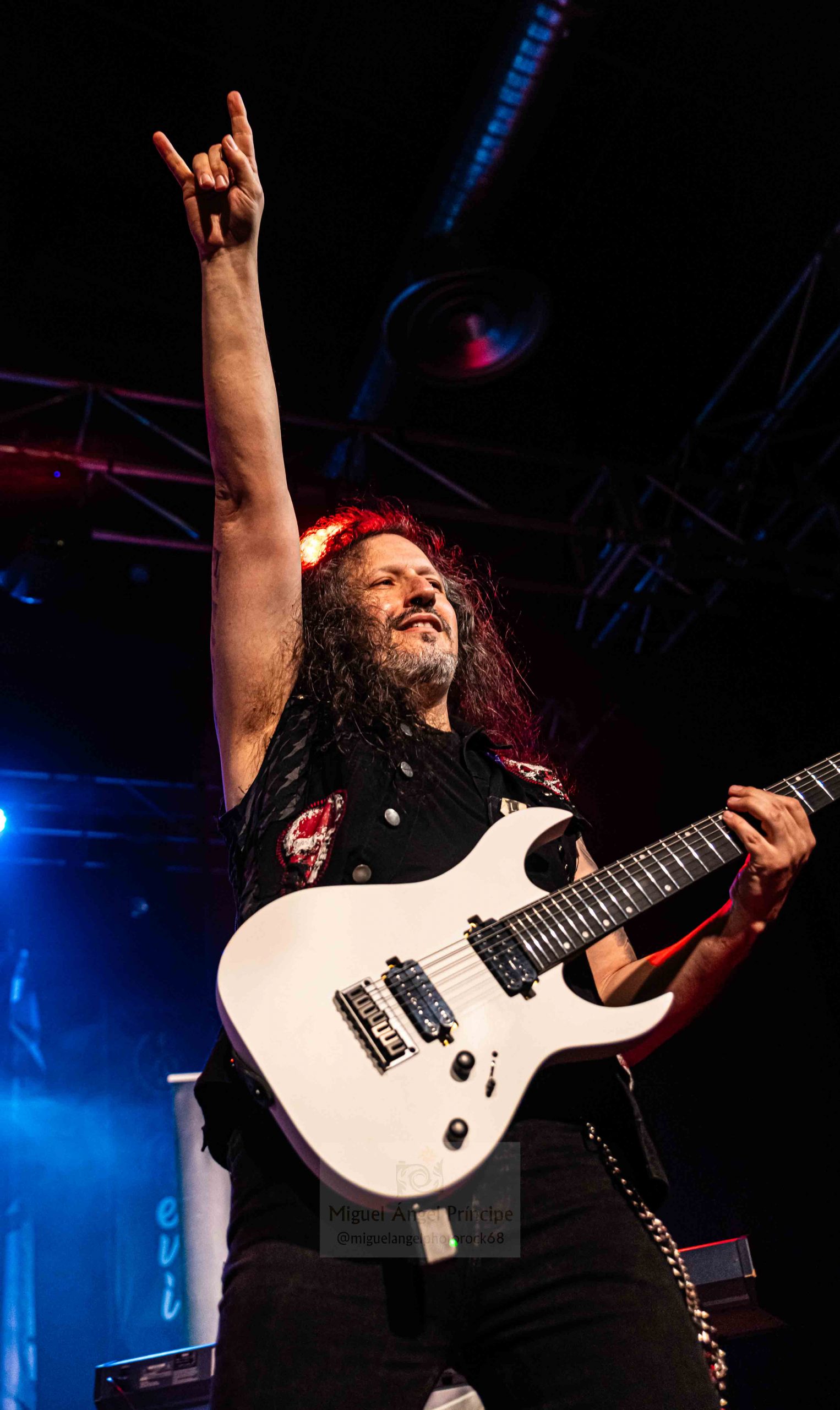 Los parches implacables fueron también actores destacados de este directo explosivo que llenó la sala de un fino y nítido sonido, enmarcándose en el mismo temas rápidos con guitarras aceleradas donde no faltó un generoso solo de batería para enfilar el desenlace donde cayeron en cascada «Violet Loneliness», «Black Mask Of Fear», la infalible versión de A-HA «Take On Me» y como bises «Moonlight» de LABYRINTH haciendo un merecido guiño a Roberto por su esfuerzo y «Send Me An Angel» como fin apoteósico para una actuación sin fisuras que será recordada como una exitosa exclusividad.