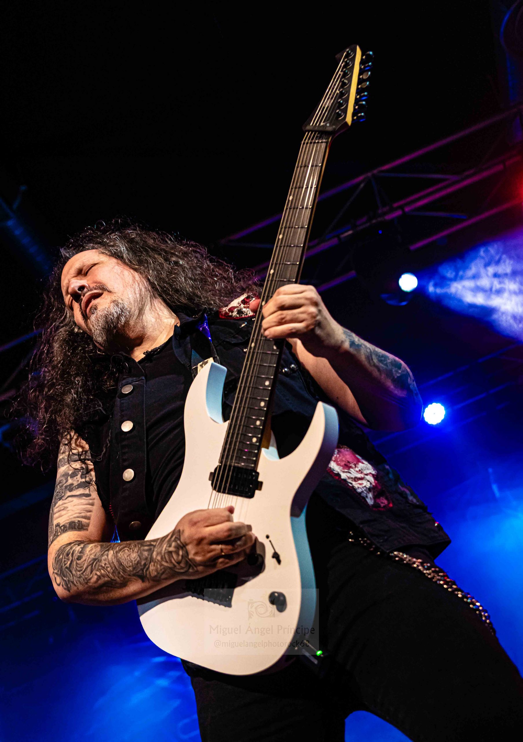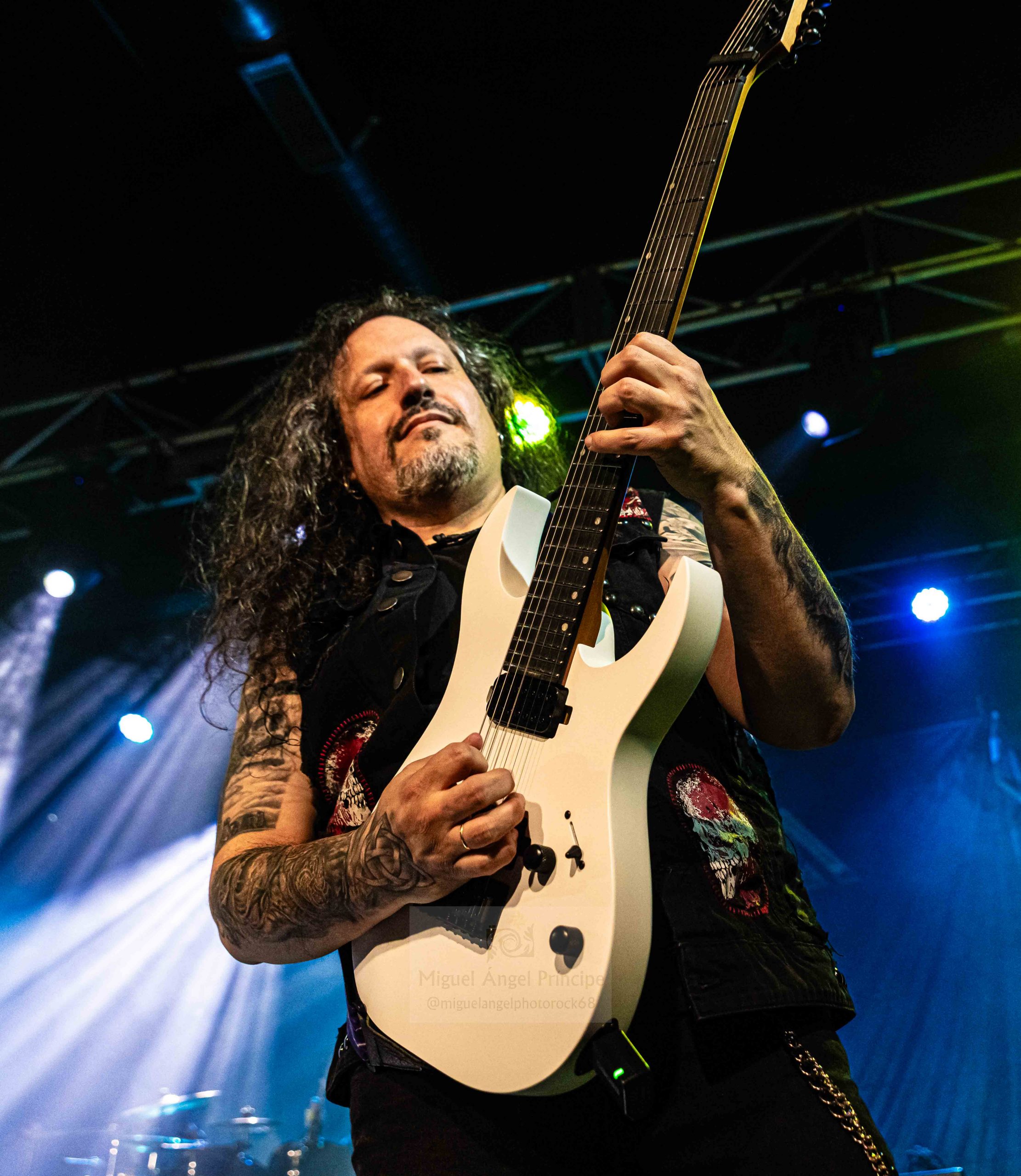 El teclado dio paso tras una penetrante Intro a «The Ballet Of Blood And Angels’ Tears», la primera canción que puso en valor la hazaña de Tiranti remarcada por el guitarrista al señalar el tiempo récord empleado por Roberto para aprenderse las composiciones, aunque inevitablemente el cantante tuvo que contar con la ayuda ocasional de un discreto teleprompter que para nada mermó ni sus tremendas capacidades ni el tremendo espectáculo gestionado por este combo que con extraordinaria nitidez, limpieza y virtuosismo bordó uno de los directos más exigentes y difíciles debido a las singulares circunstancias.