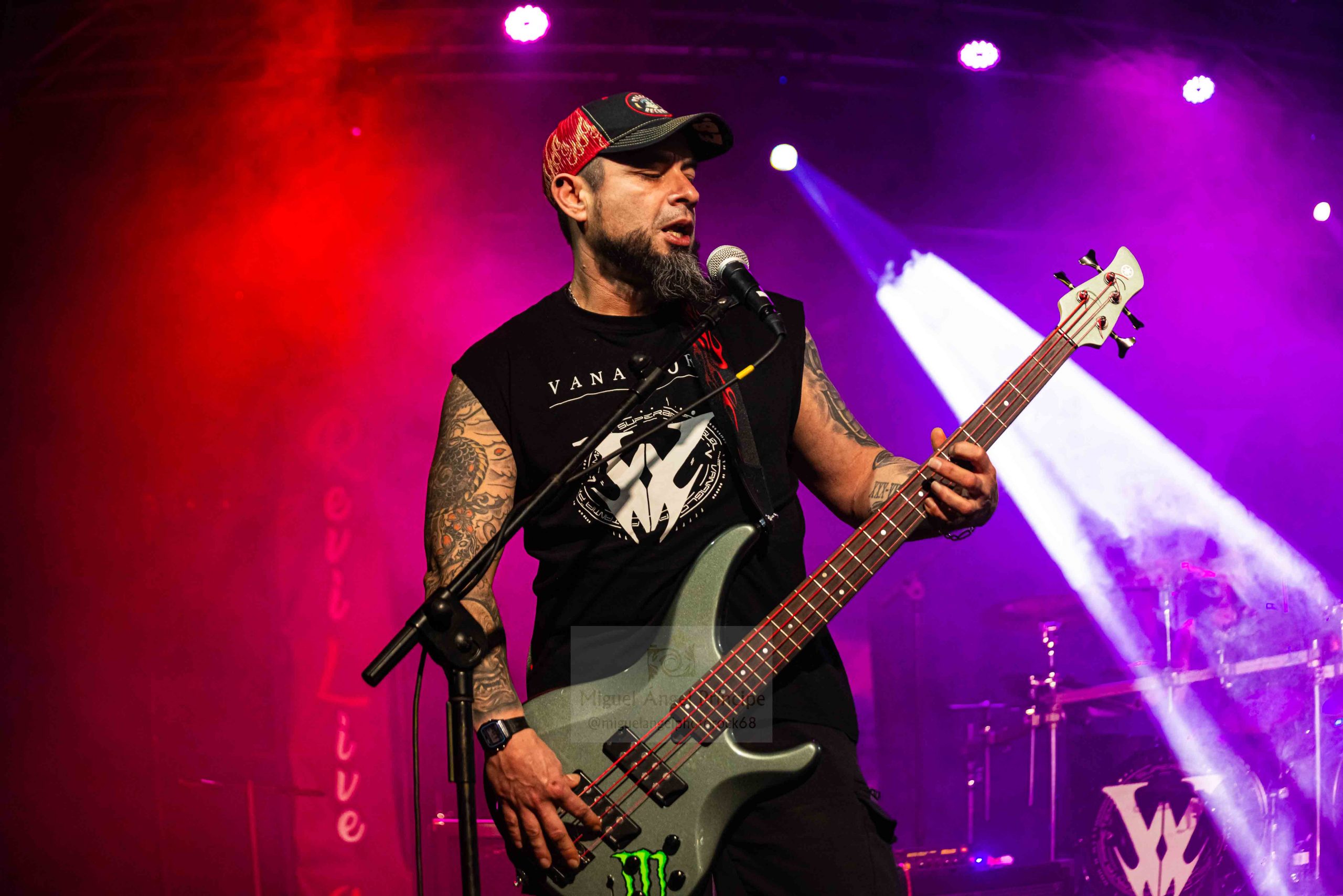 Dispuestos a desgranar un repertorio de once temas con la rabia que les caracteriza, los madrileños VANAGLORIA de Luis Miguel Merino a la voz arrancaron con «Humana Condición» (2013) y su conocida velocidad metalera basada en los riffs ganadores de Diego Millán, quien tampoco se despeina a la hora de ejecutar unas seis cuerdas más rítmicas haciendo virtud de su exclusividad en el grupo como guitarrista para afianzar esa intrínseca rapidez de las composiciones también presente en «Afectados Del Olvido» (2023) o «Letargo» (2023), combinando así magistralmente pasado y presente.