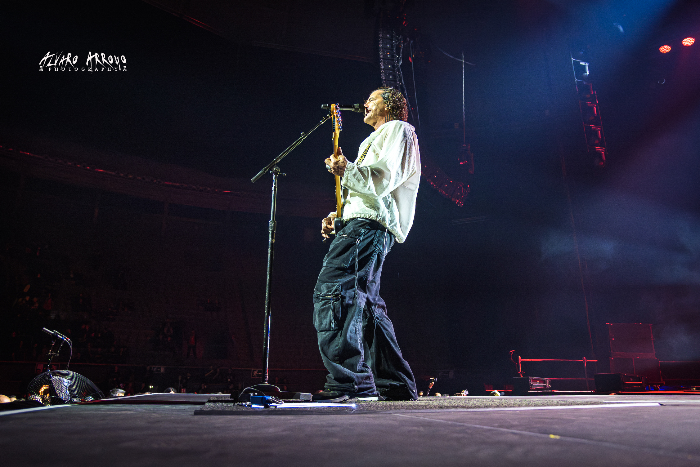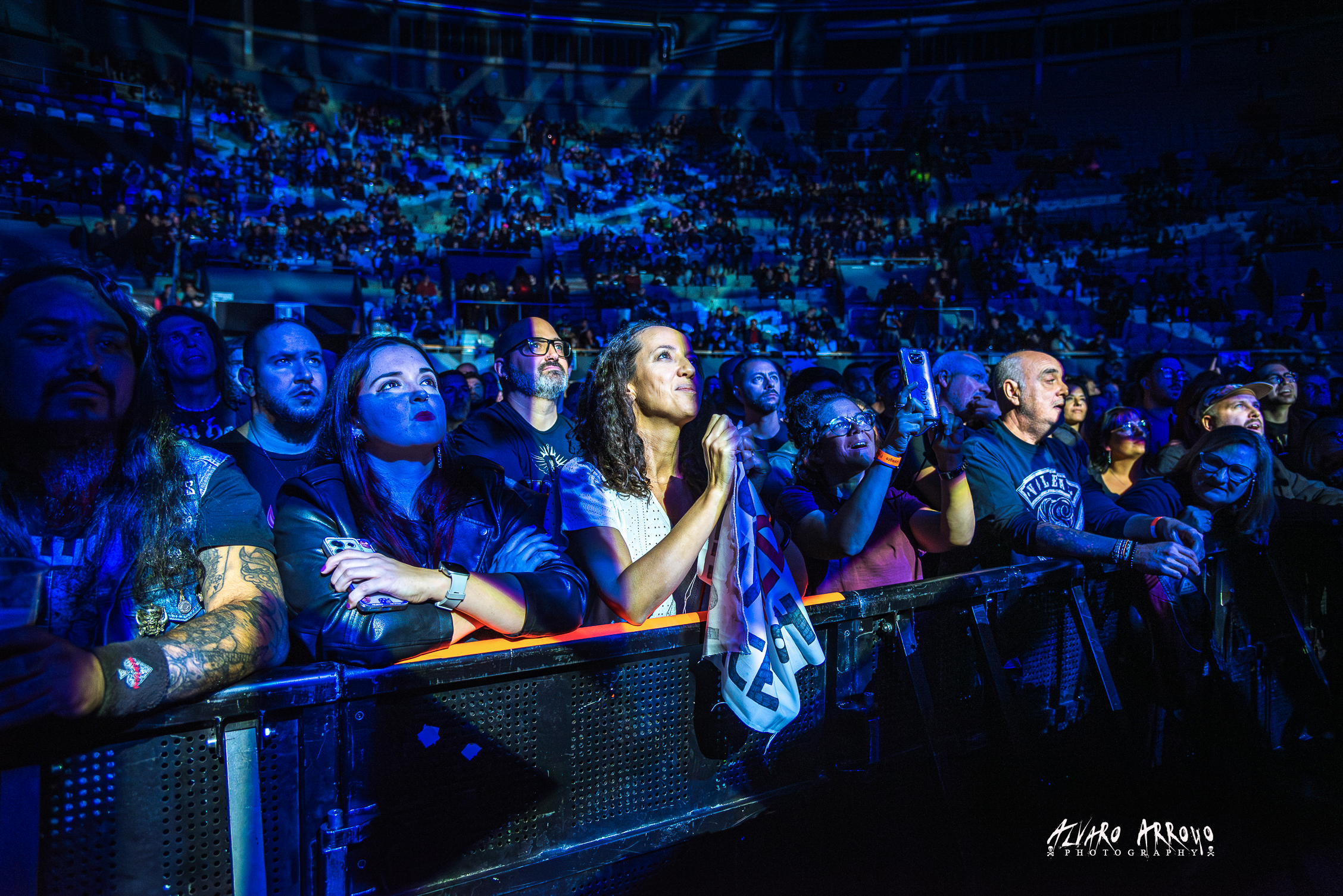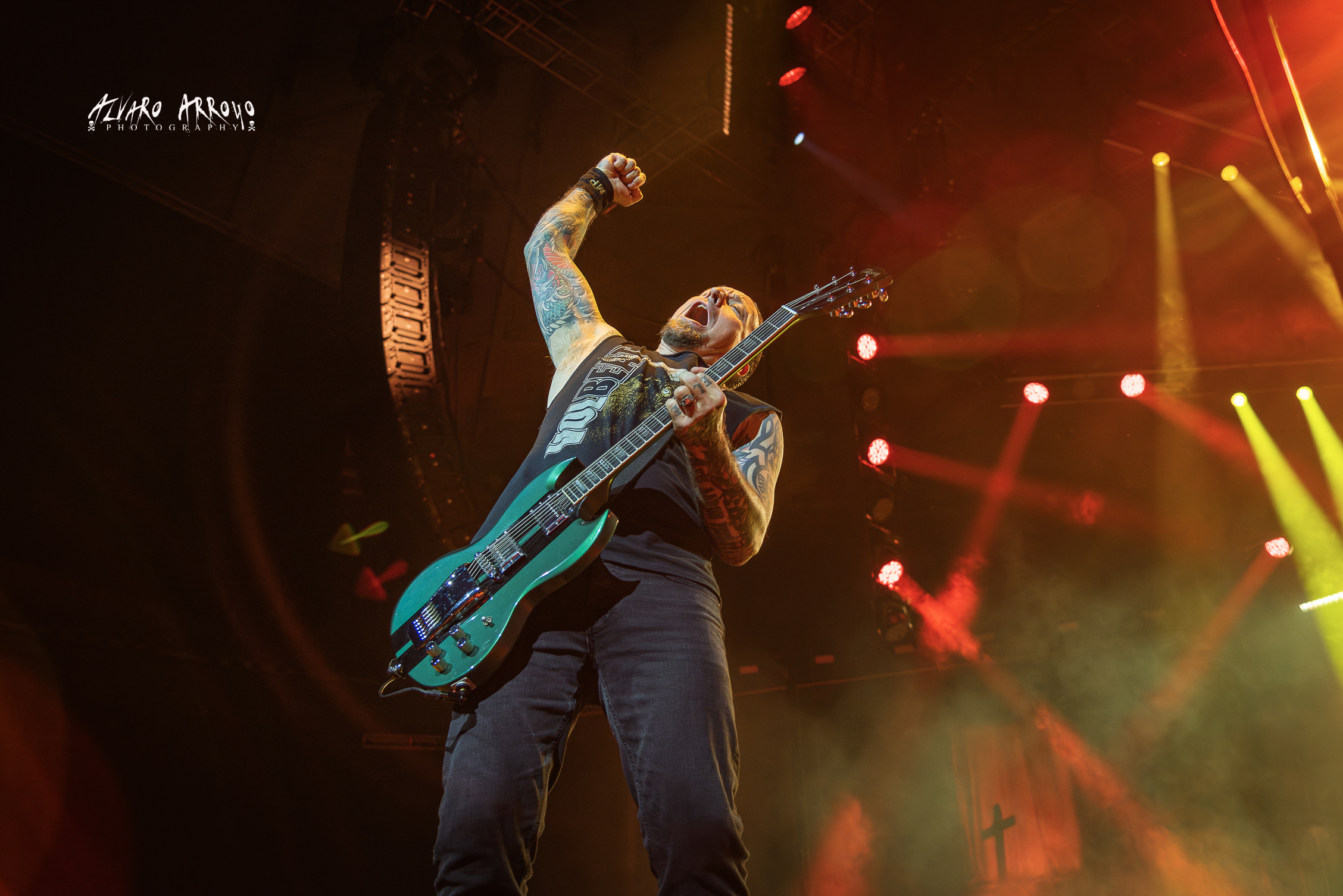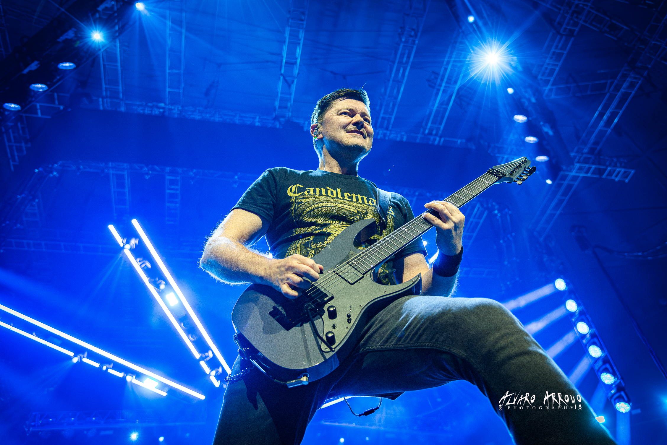 Los daneses tenían varias novedades para presentarnos hoy; la principal en la formación donde la salida en 2023 del guitarrista estadounidense Rob Caggiano tras una década formando tándem con Poulsen en las labores compositivas y sobre los escenarios ha sido suplida finalmente por el también danés Flemming Clausen Lund, quien como el bajista Kaspar Boye Larsen cumpliría sin grandes alardes con su cometido esta noche pero creo que no pasarán a la historia de la música por su desbordante carisma, dejando todo el peso escénico en manos del líder de la banda. Caso aparte el del también miembro fundador Jon Larsen, quien tendría que lidiar estoicamente en la noche de hoy con un sonido de batería muy saturado de graves como única nota negativa en el sonido casi perfecto del resto del grupo.