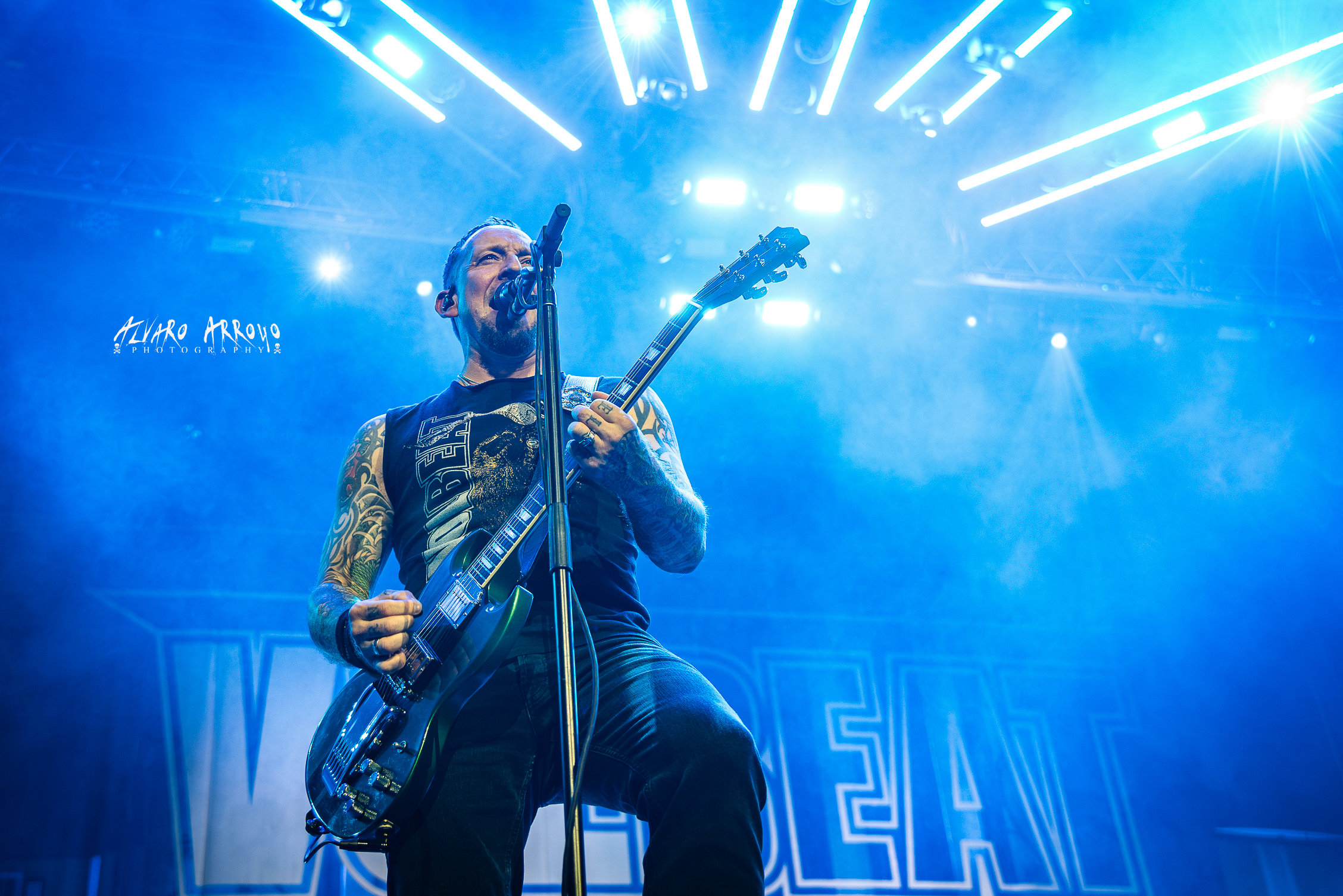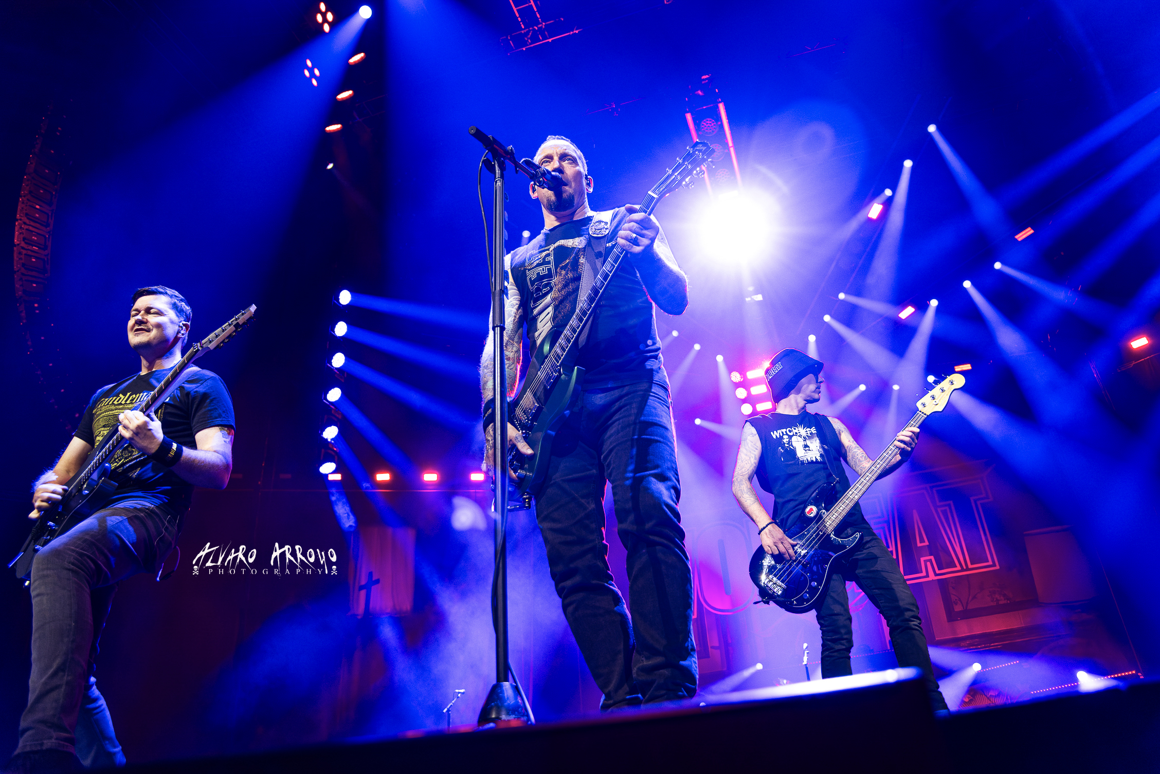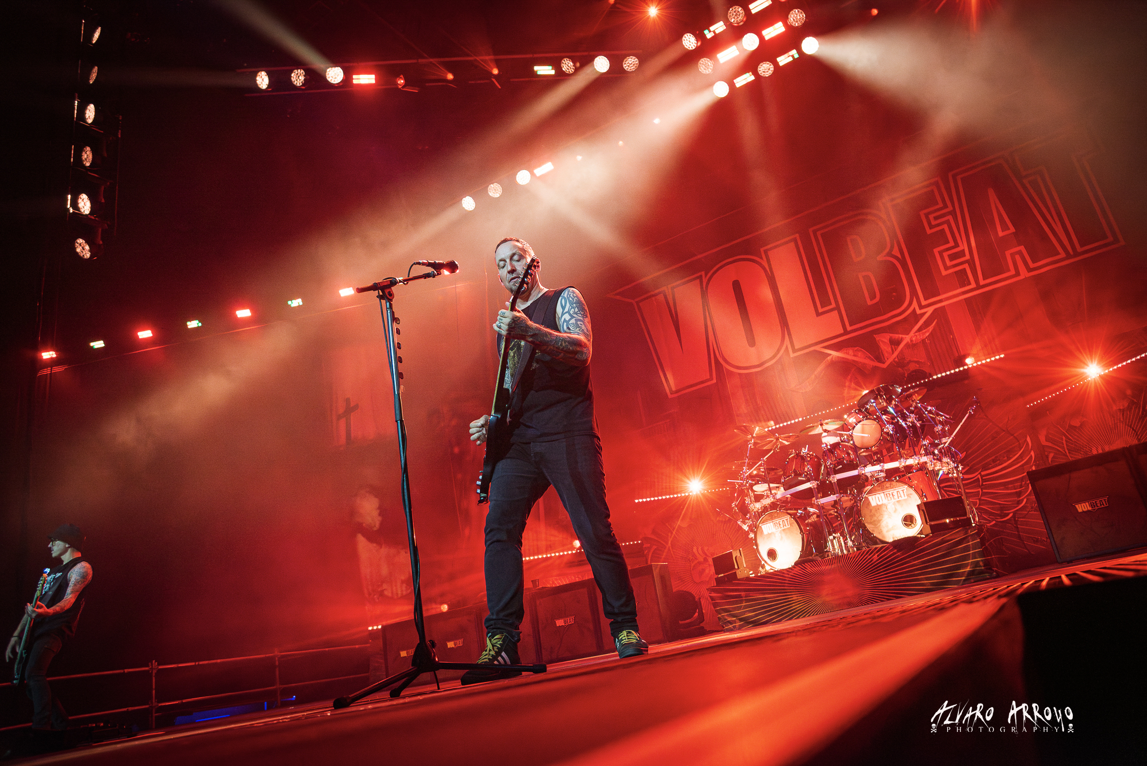 La expectación ya era máxima a la hora de recibir a las huestes de Michael Poulsen, desatándose un rugido de aprobación cuando pasadas las nueve de la noche cayó el telón con las siluetas de los 4 miembros actuales de VOLBEAT que «escondía» la disposición final del escenario, saliendo la banda dispuesta a no realizar concesión alguna desde la cabalgada inicial de «The Devil´s Bleeding Crown» y logrando alcanzar un tempranero clímax de euforia irrefrenable entre los asistentes con la siguiente «Lola Montez», clásico ya por derecho propio del género Metal en su vertiente más comercial.