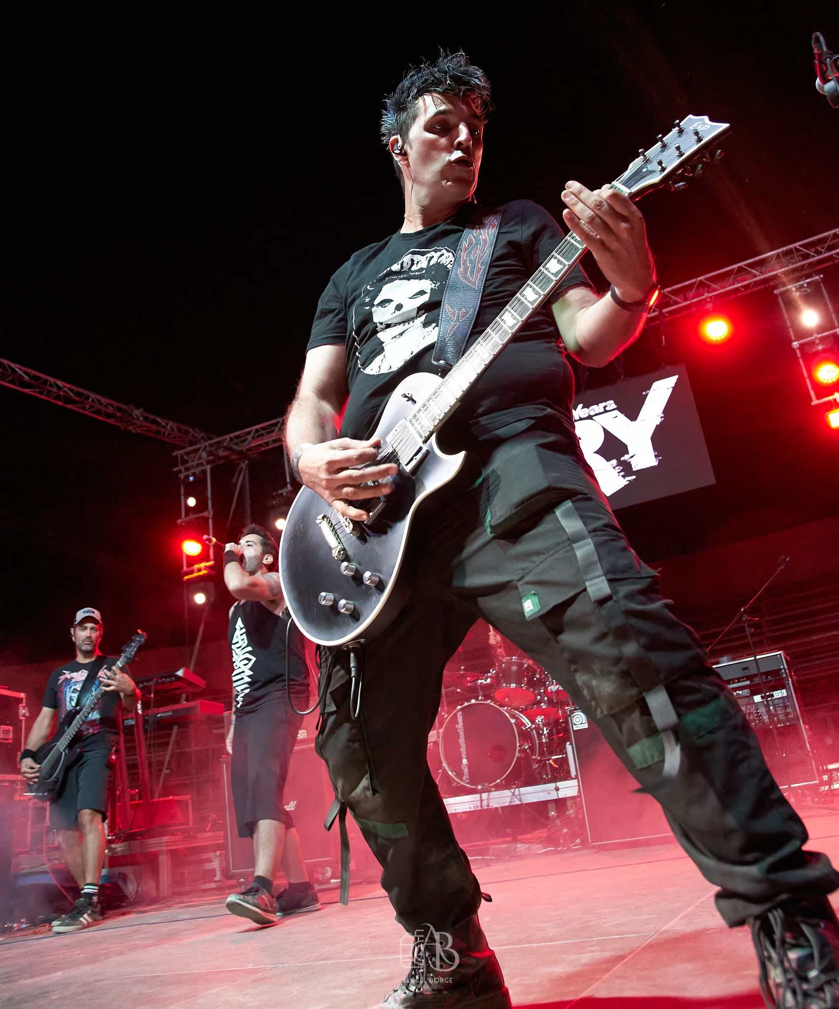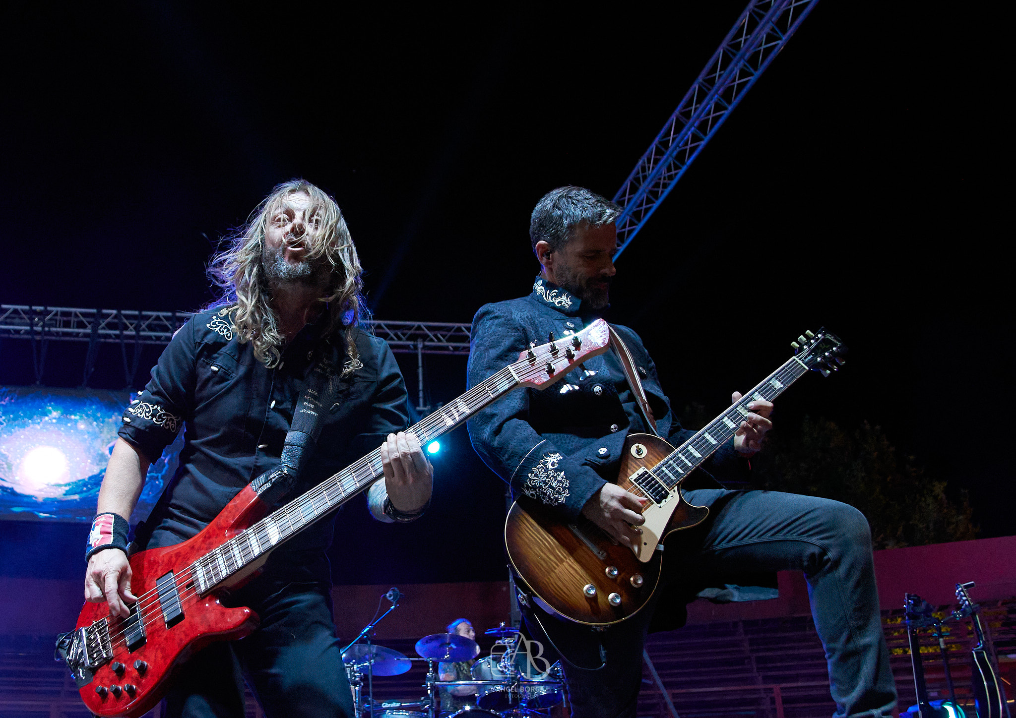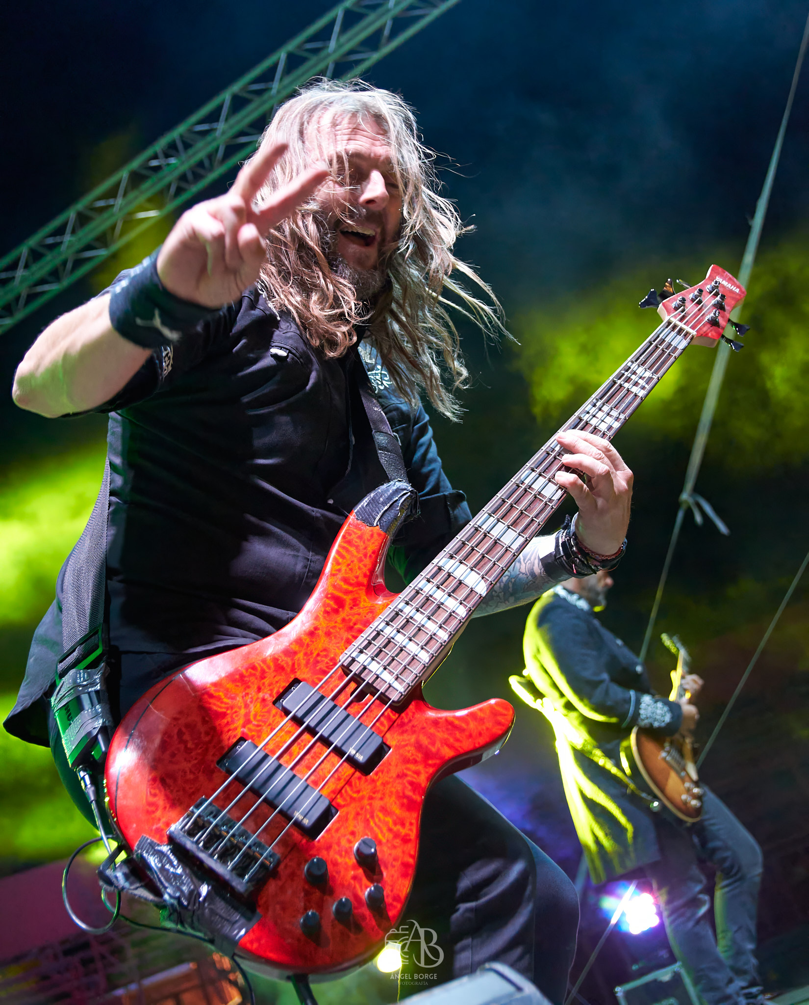 Tras algo más de dos horas de retraso, el coso taurino recibió en su arena a una feligresía que se fue acomodando para disfrutar de la primera descarga de la velada gracias a TRY-THE REVOLUTION YEARS, quienes a las 22:45 ya bien entrada la noche se subieron al escenario haciendo gala de sus característicos riffs y entregada actitud empezando con «Victim No More» con su frontman Jorge incitando desde el inicio a la gente para ir entrando en calor, estando acompañado el vocalista por Javier al bajo y la explosión tanto de David como de Francisco a las guitarras con Antonio al frente de la batería para seguir este combo de Nu Metal desgranando temas de su álbum The Art Of Words, un trabajo que vio la luz en el 2012 sonando entre otras canciones como «Run With Me», «Folowing The Flock», «Life» o «The President Is Dead» debiendo recortar el quinteto su Setlist al igual que le ocurrió al resto de formaciones debido al retraso en el inicio del Festival.