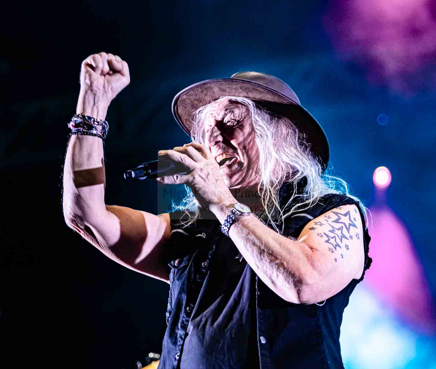 La voz de Vaughn dejó a todos los allí presentes literalmente hipnotizados, no envidiando para nada su garganta a la que el vocalista ostentaba en su juventud y totalmente ajustada a cada una de las notas que dominaron la cálida atmósfera del pabellón durante aproximadamente setenta y cinto minutos de climax absoluto, más de una hora en la que el público cantó sin titubeos haciendo los honores a unos temas poderosos gracias especialmente a los baquetazos de un incansable Johnny Dee que lejos de notar el doblete escénico, pareció golpeando los parches motivarse con su dupla en el Lion.