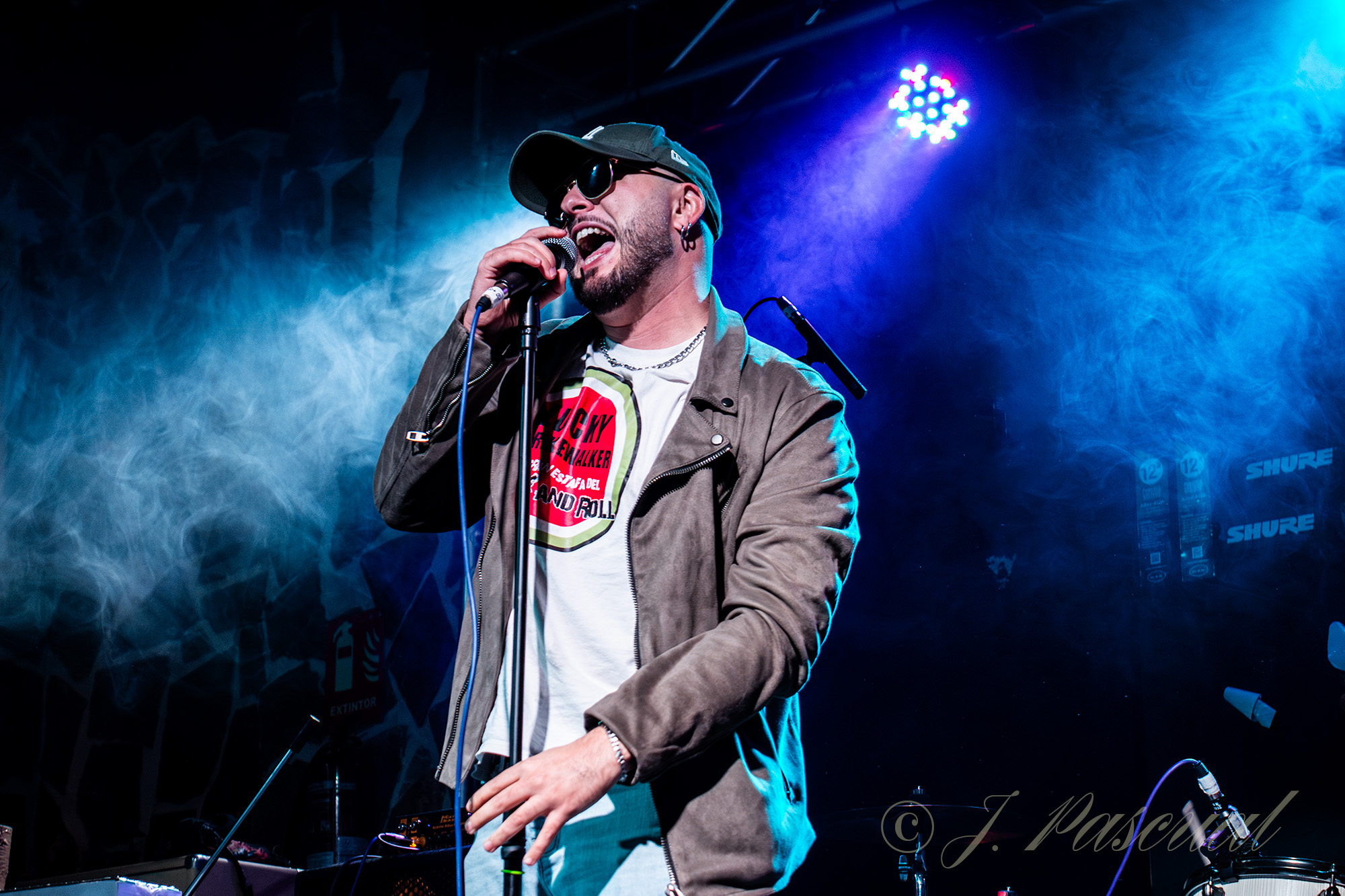 Precisamente estos últimos serian los encargados de abrir la noche cuando el reloj apenas marcaba las diez y previa presentación por parte de J. Tejada, al ritmo de la intro los chicos de la Sagra tomaban sus posiciones sobre las tablas de la Vizzio, que poco a poco iba tomando color hasta llegar aproximadamente un poco más de media entrada a lo largo de la noche y arrancar con «La Gran Estafa del Rock And Roll» tema que da título a su último trabajo, dispuestos a hacernos pasar un buen rato con su rock and rock desenfadado y un tanto punkarra digno de esa actitud que tiene la banda sobre el escenario entre gamberra y chulesca con la cabeza visible de Dani perfecto frontman a la voz, arropado por en terceto compuesto por Juanfran a la guitarra, Gabriel al bajo y David a la batería. Unos pequeños problemas técnicos, impedían como tenían previsto enlazar con este primer tema «Lobos» si bien rápidamente resueltos mientras Dani improvisaba una pequeña presentación, pronto estaríamos todos aullando a sus órdenes mientras sonaba «Lobos» a la que seguiría «Echo de Menos Tus Besos». La versión un tanto Punk del tema de ALARMA «Colgado de Ti» animaba a la sala a acompañarles con sus voces, cerrando este primer bloque con «Volverás a Llamar»