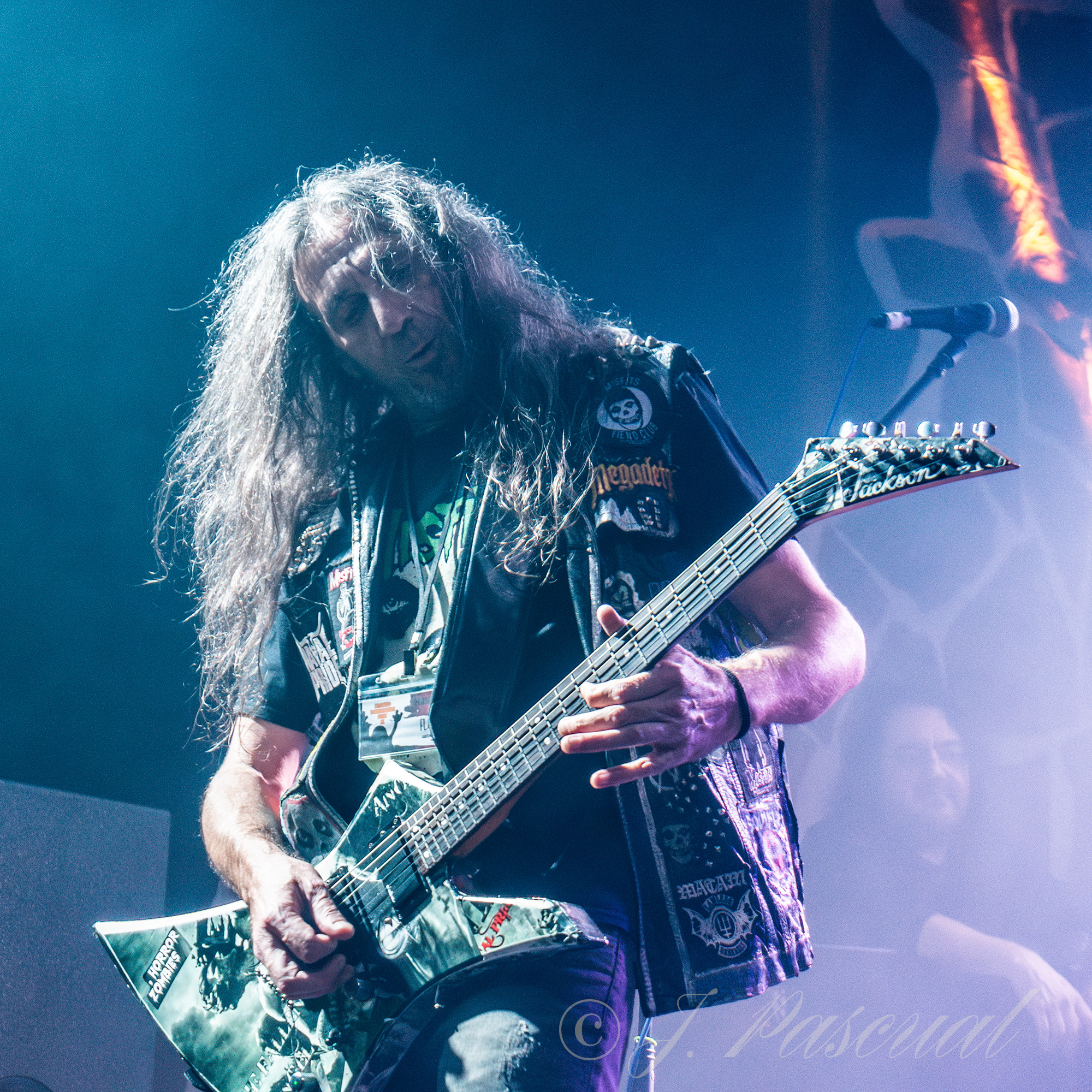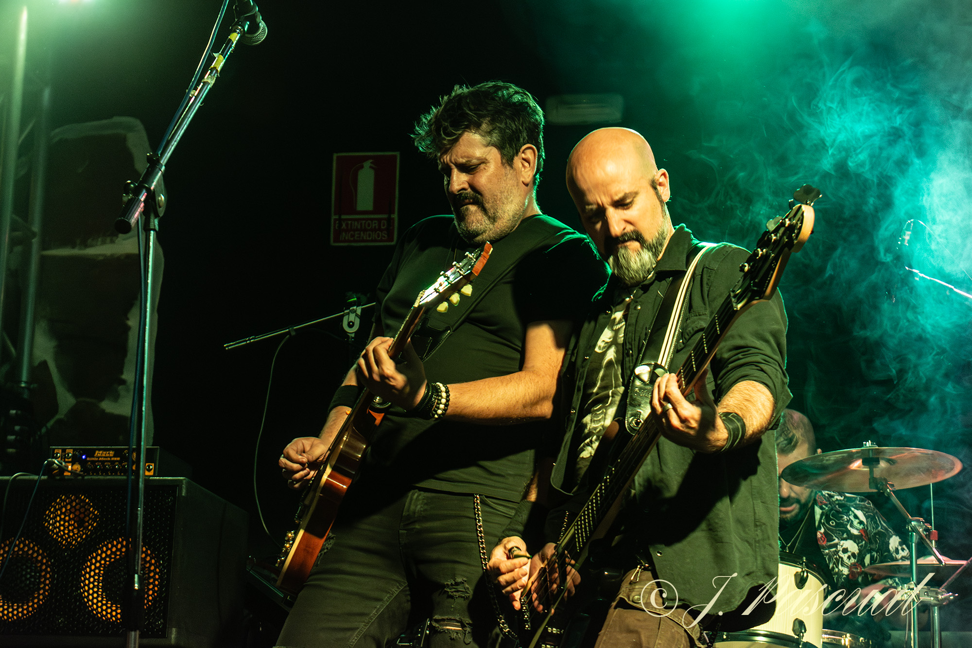 Pero si hubiera tan solo un momento por el que definir o recordar un concierto, sin dudarlo el que llegaría a continuación es sin duda el que elegiría, como bien decía Miguel Ángel en su presentación, el auténtico Heavy Metal es la actitud de Sebas, que pese a su reciente ictus, tuvo la entereza por no decirlo en palabras más gruesas de no querer perderse esa noche y subirse al escenario con sus compañeros para colgarse el bajo e interpretar «War Never Dies» con todas sus ganas y energía, dejando claro que pronto estará de nuevo a pleno rendimiento sobre los escenarios, mientras a su finalización era despedido por un enorme y sentido aplauso por toda la sala. «Time To Die» nos trasportaba a los comienzos de la banda con toda su potencia mientras que «Nigh Lord» con Oscar enmascarado en la batería no traería un gran solo por su parte, una costumbre clásica sobre todo hace unos años en todos los conciertos que se ha ido perdiendo, y que aunque siempre ha tenido sus retractores, personalmente siempre me ha parecido efectiva, para finalizar con otro gran clásico de la banda como es «Confession» y poner el punto final a esta segunda edición de un festival que aunque modesto, destaca por la entrega y pasión de sus organizadores.
