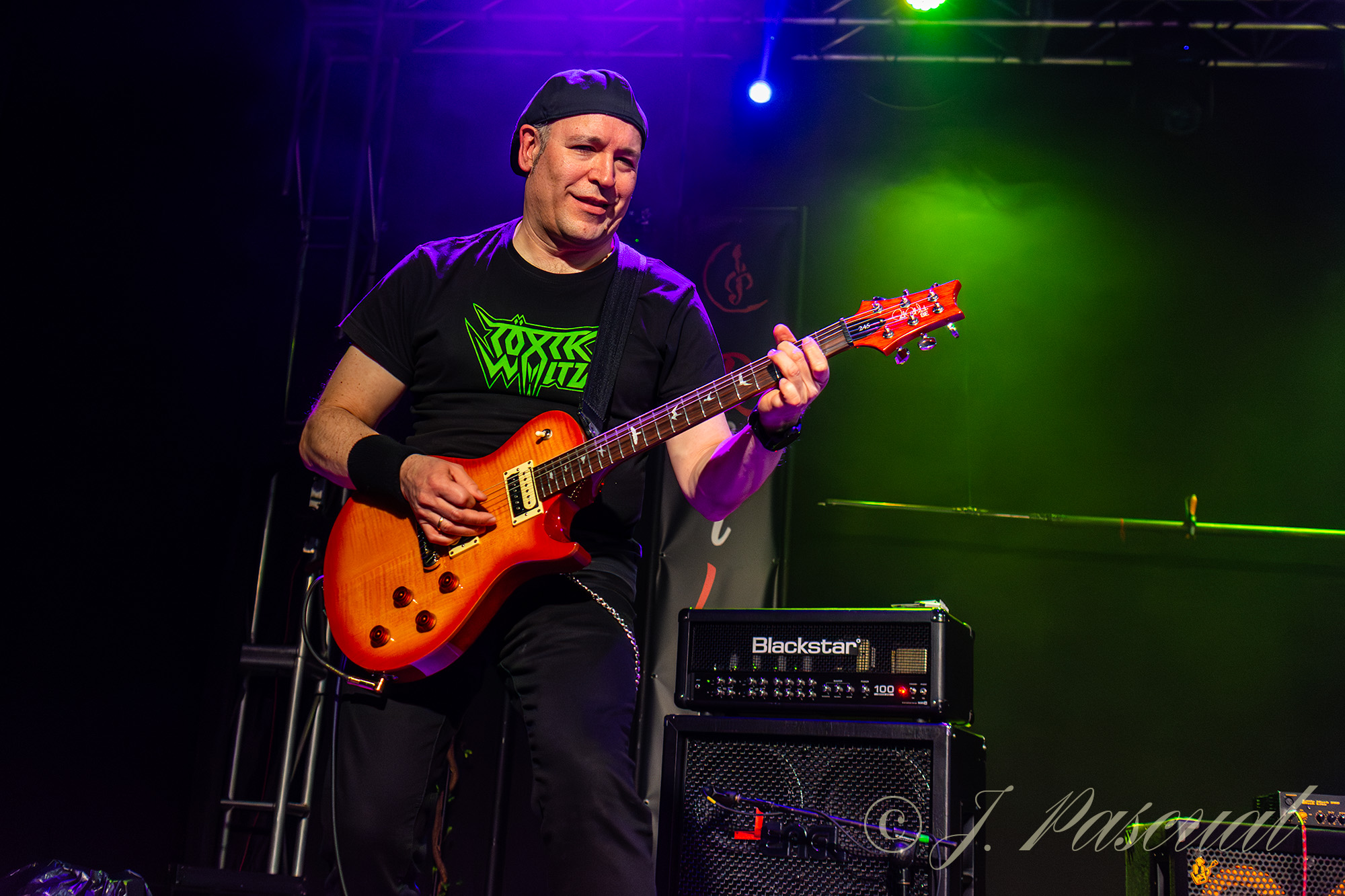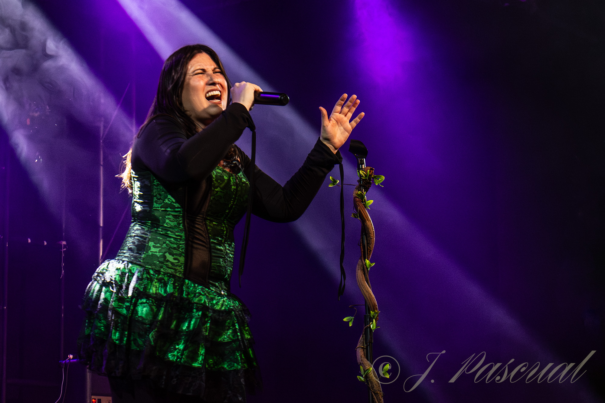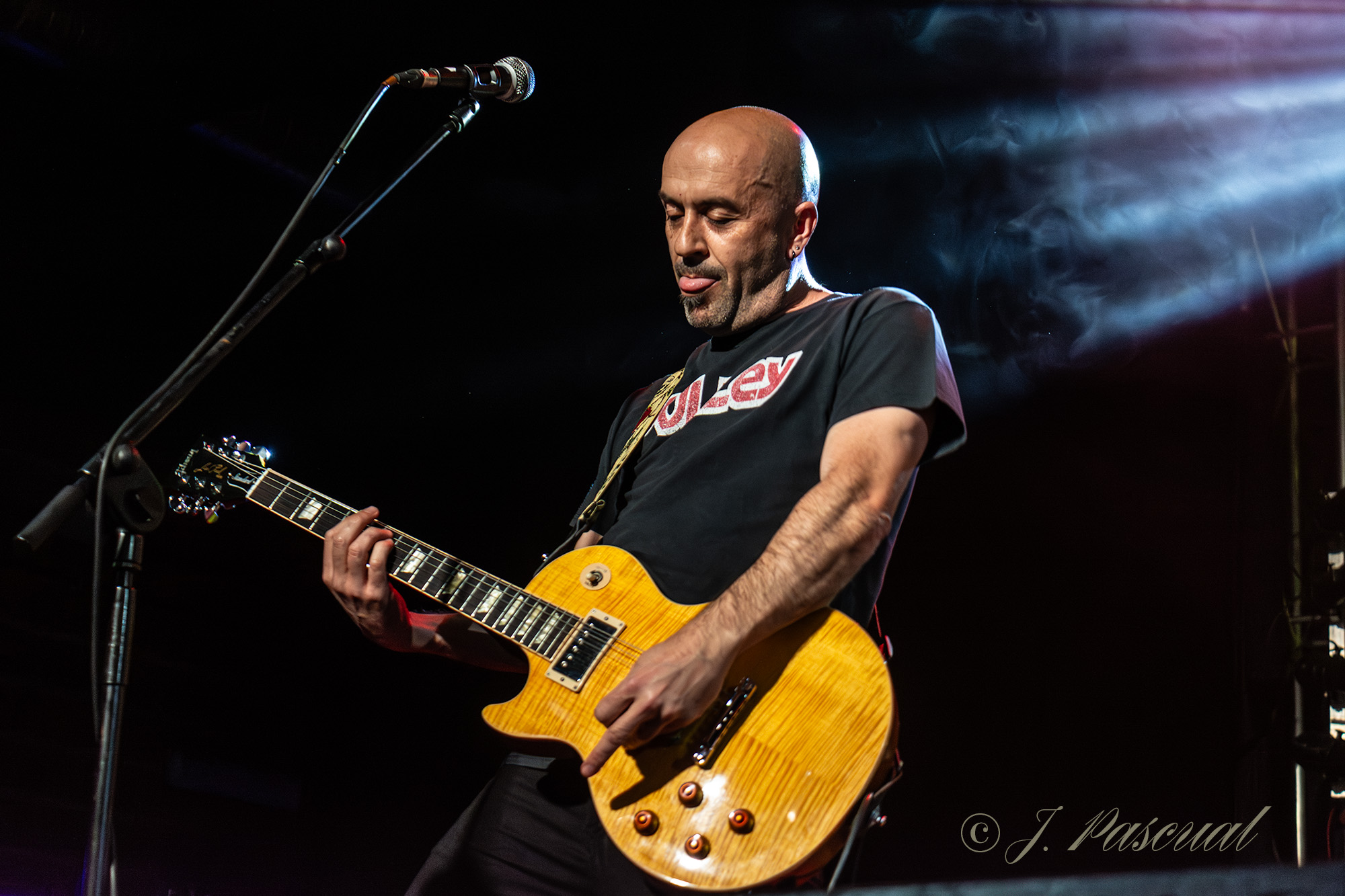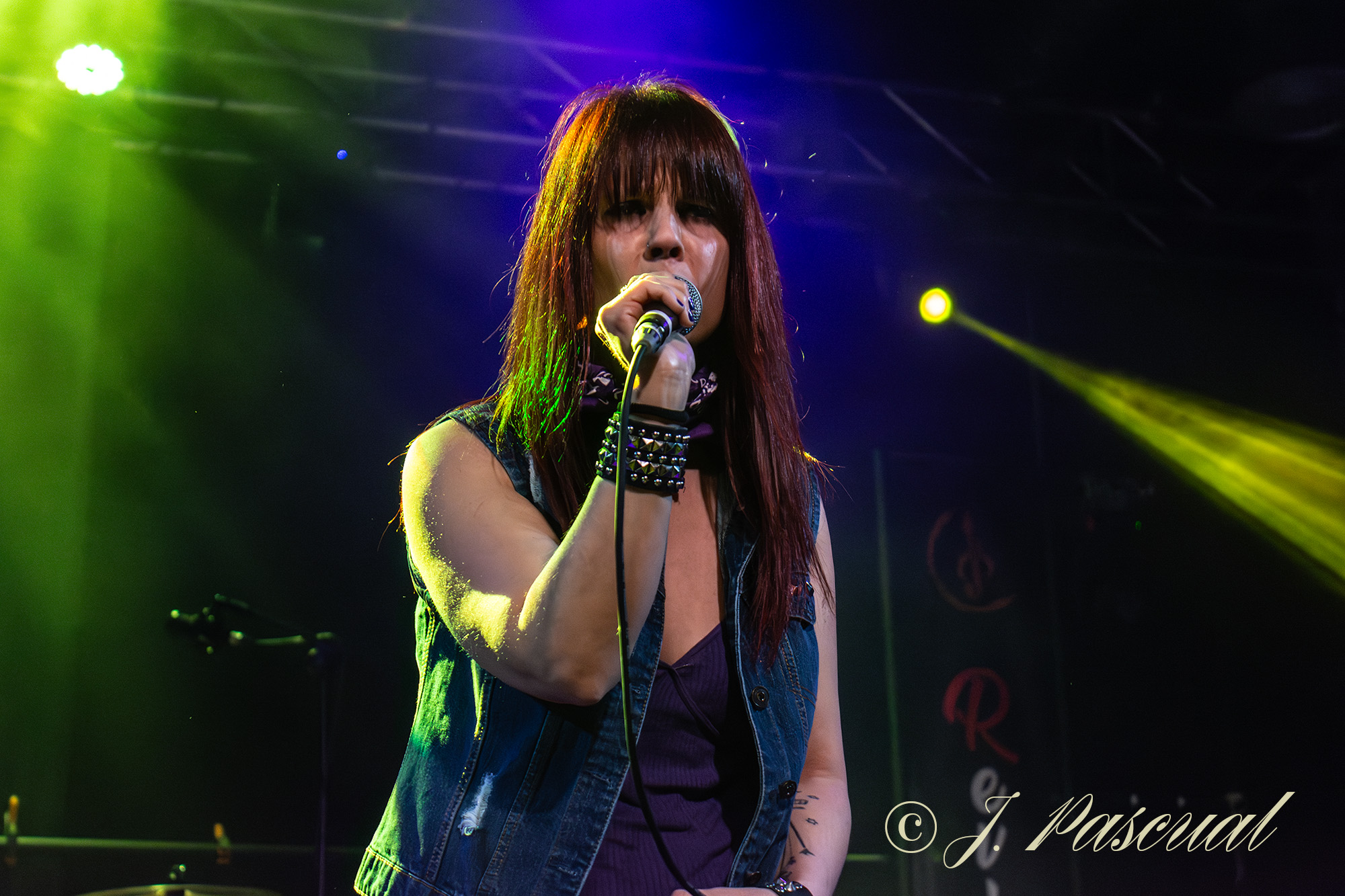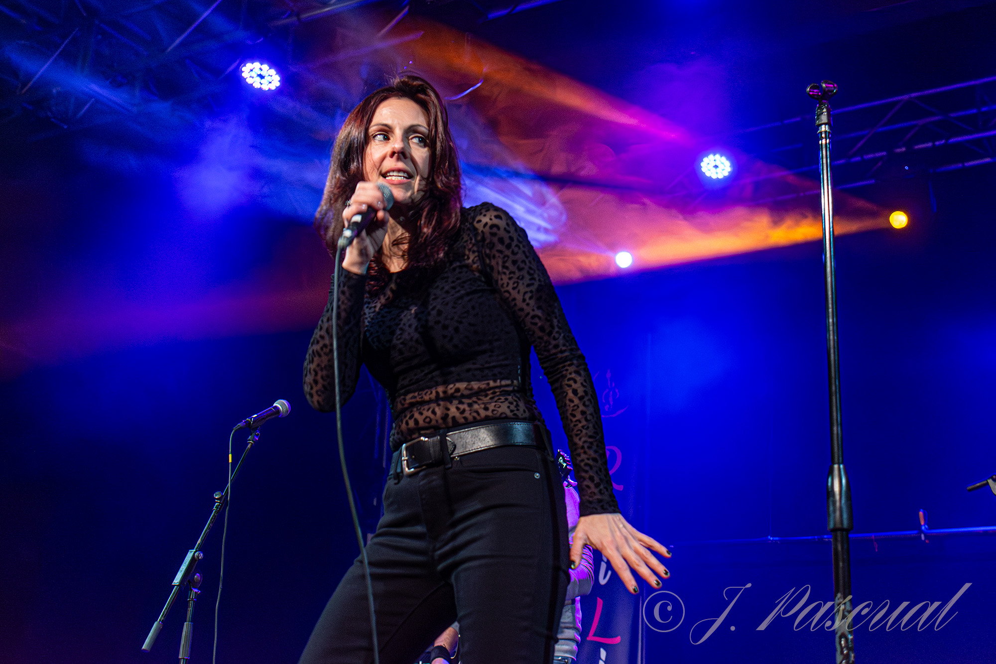 Joana abandonaba brevemente el escenario mientras el resto de la banda con Carlos a la voz, se marcaban una versión del «Metal Gods» de Judas Priest, que sonaría brutal como lo podía ser menos con ese cuarteto de músicos de auténtico lujo. Con Amaro nuevamente sobré el escenario llegaba el momento de revisitar sus anteriores trabajos, precisamente «Carmen de fuego» el tema que dio titulo a su disco de retorno al panorama musical en 2013 era el tema escogido para este nuevo bloque, enlazando con «Libertad» para ir in crescendo en intensidad con temas como «Sexo» o «Sueño» donde la La garganta de Joana brillaba en todo su esplendor, mientras las guitarras de Karlos y Félix entrelazaban sus melodías. «Fuego» y «Muerde» dos temas que destilan puro Hard rock directo y potente nos acercaban a la recta final a punto de cumplirse la hora de su descarga.