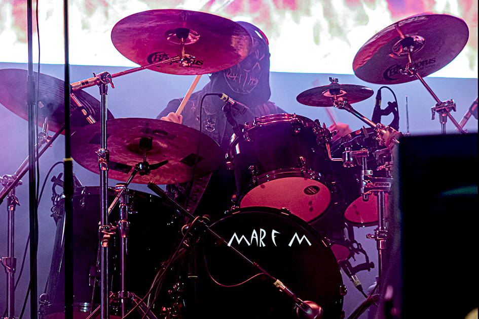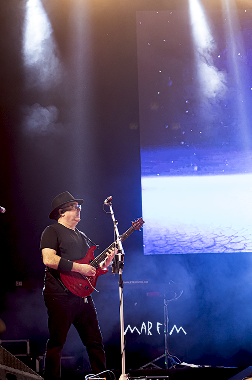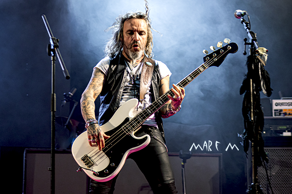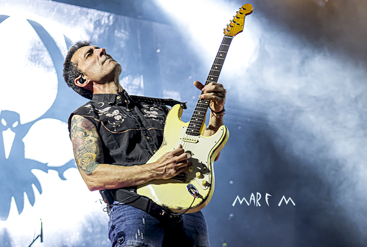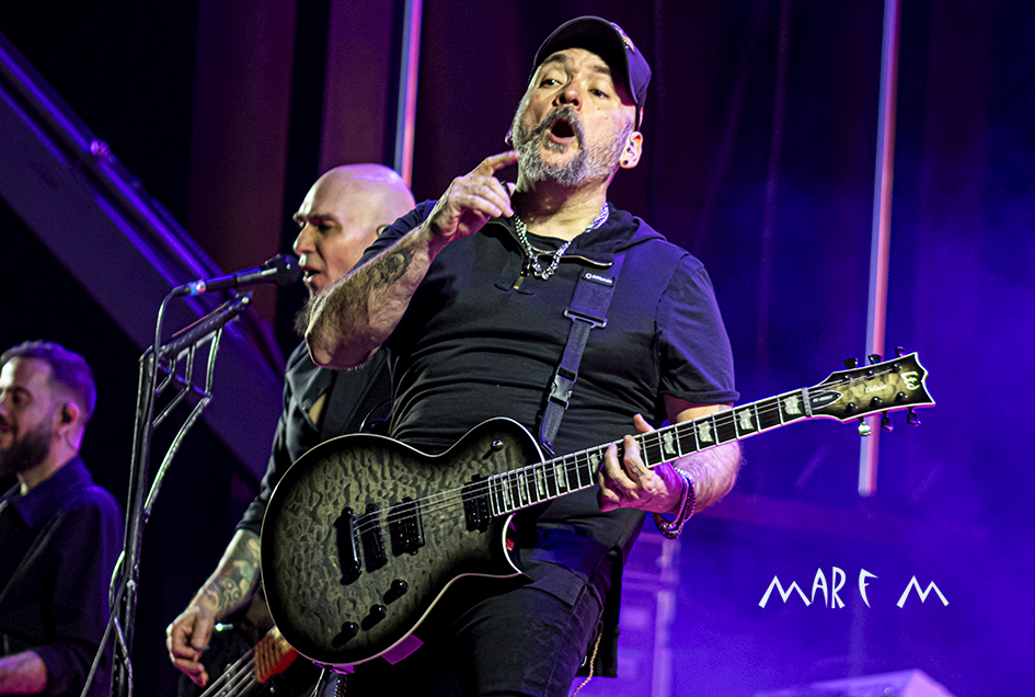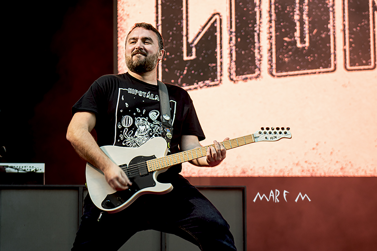 Comenzó a preocuparnos el tema de los retrasos de los horarios previstos cuando ROCK CON Ñ salió a la palestra casi media hora tarde, tras algunos problemas a la hora de cablear algún instrumento. De nuevo su actuación se nos hizo muy corta (y otra vez con menos luz de la que merecían), pero fue una de las más divertidas y entrañables, sobre todo para los que ya tenemos una edad, que nos deleitamos rememorando temas de SANGRE AZUL, de BURNING o de ASFALTO. Abrieron con “Barón Rojo” y «Es Nuestro Momento«, gozamos con “No Eres Nadie”, “Banzai”, “Días De Escuela”, “Vallekas 1996”, y acabamos bailando “Sábado A La Noche”, muy adecuada en ese momento, como si volviéramos a nuestra primera juventud. Con un público ya bastante numeroso y con la broma de que “éste es el festival más largo del mundo, que empezó en julio del año pasado” (haciendo referencia a la repentina cancelación a última hora del entonces llamado Botillo Rock Fest), el frontman de la super banda, Johan Checka, agradeció a todo el mundo, haciendo hincapié en “las bandas que no se bajaron del cartel”, nombrándolas. Justo a medianoche daban su actuación por finalizada. Pero el tema del retraso ya no se podía solucionar.