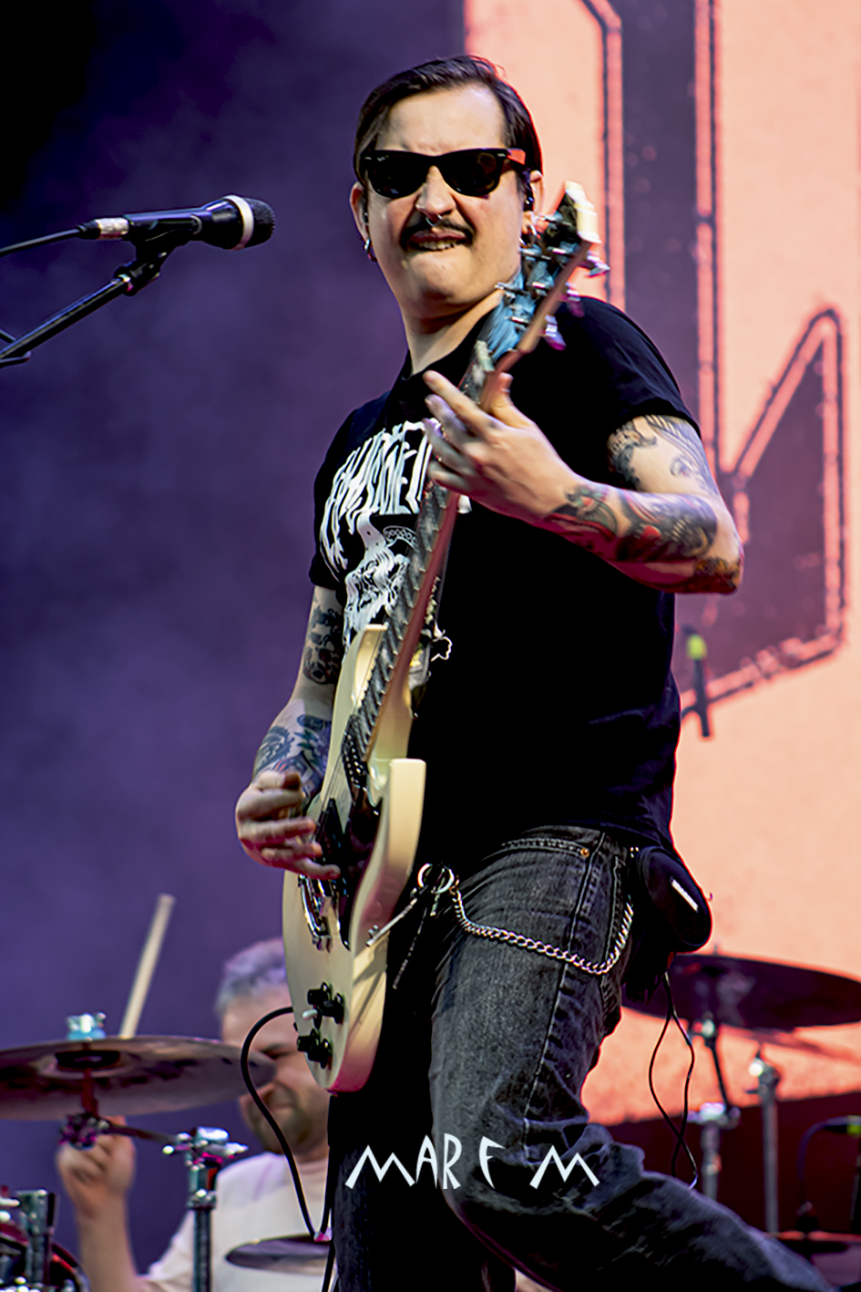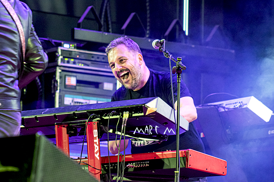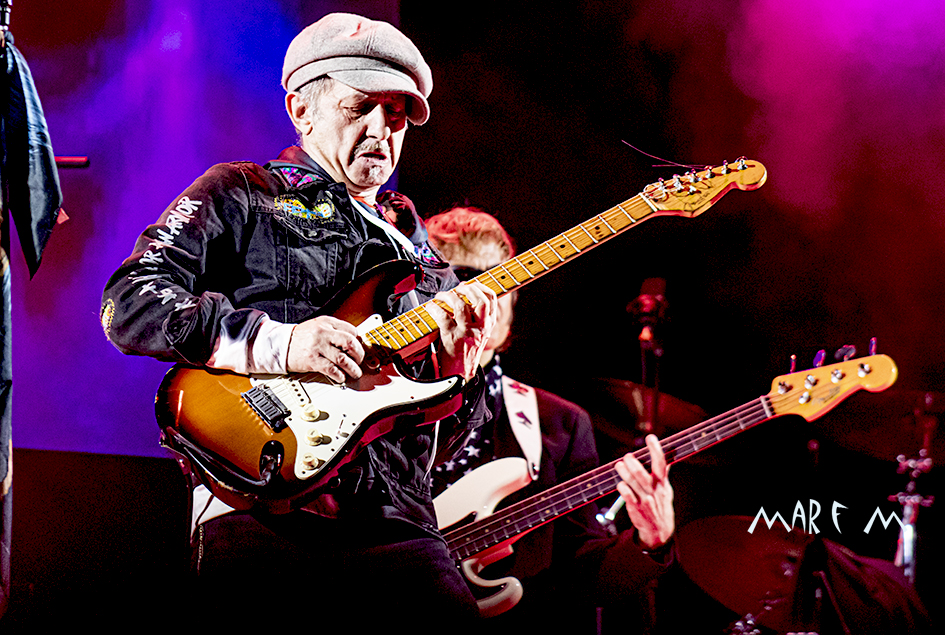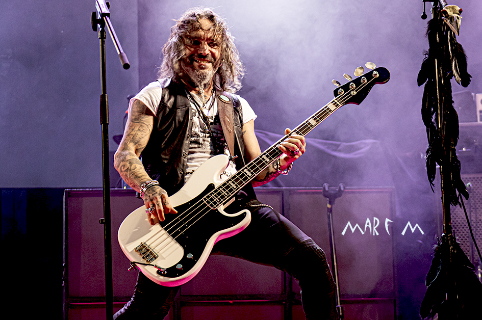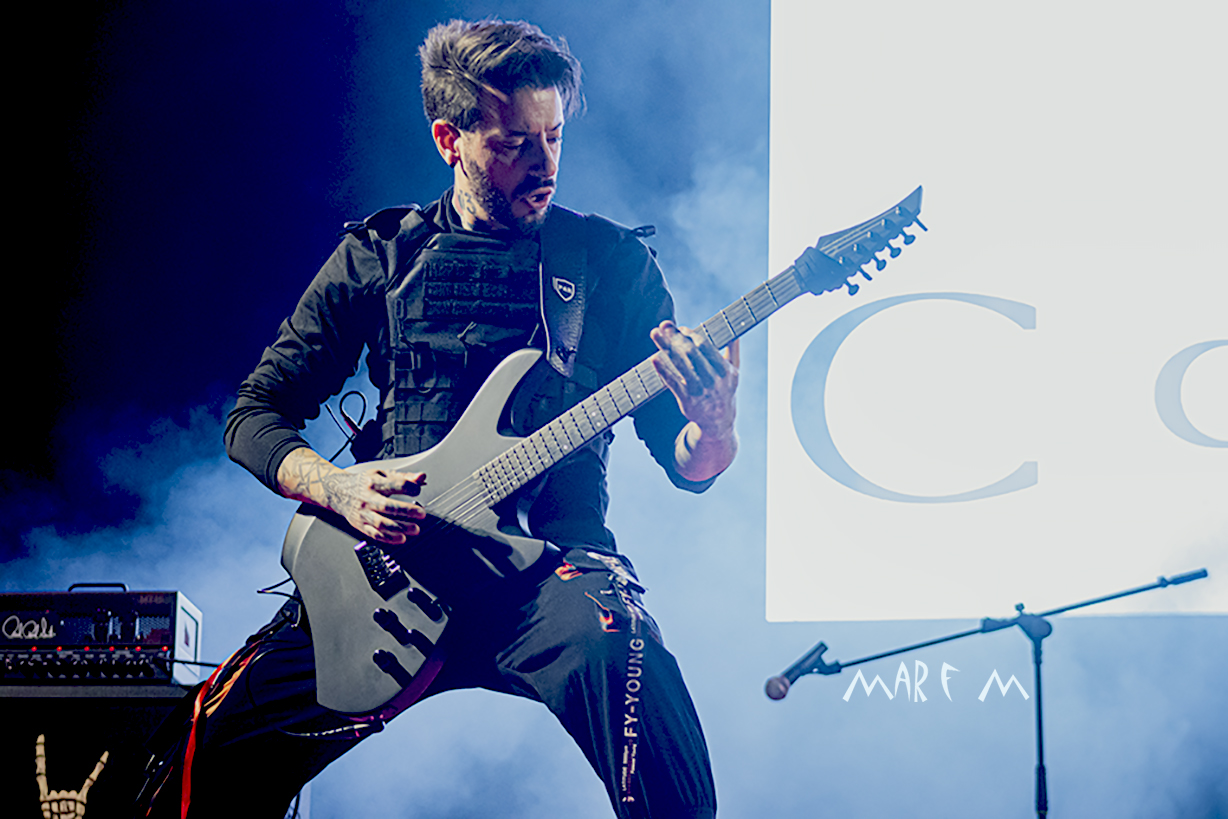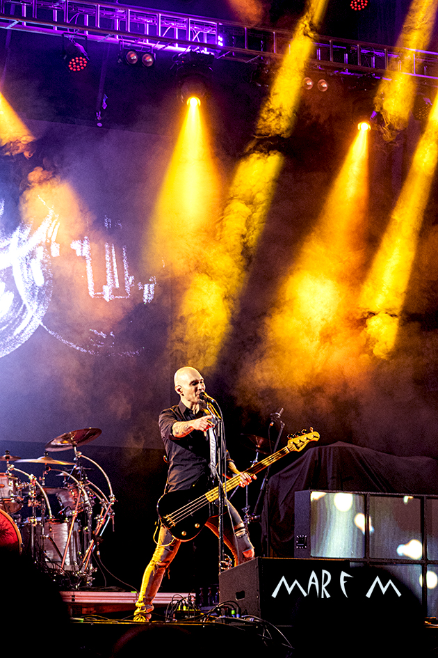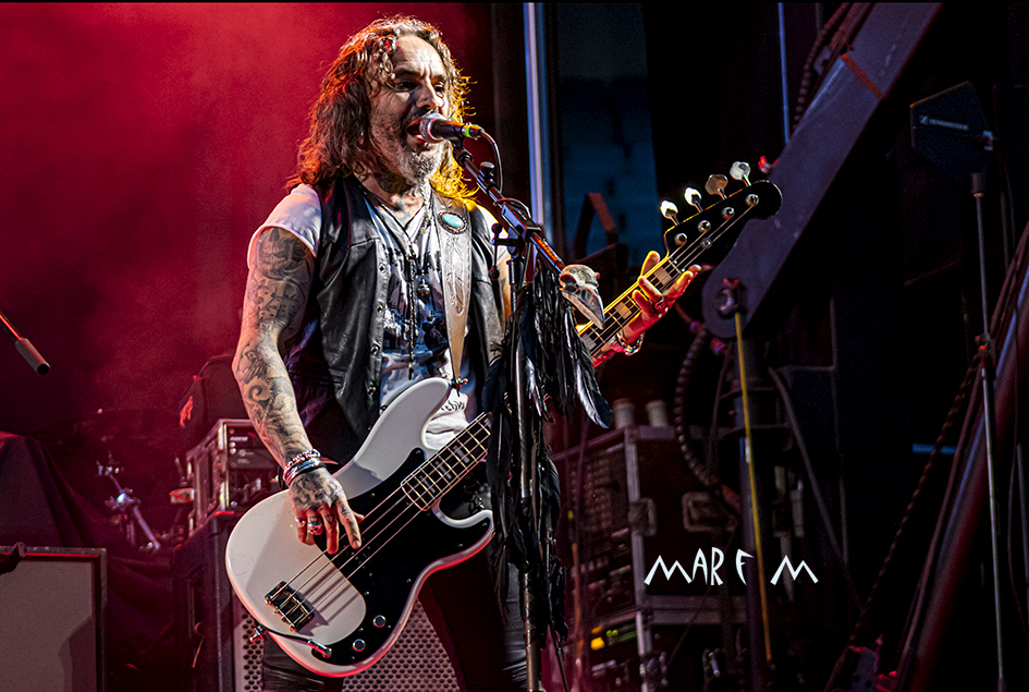 Comenzó a preocuparnos el tema de los retrasos de los horarios previstos cuando ROCK CON Ñ salió a la palestra casi media hora tarde, tras algunos problemas a la hora de cablear algún instrumento. De nuevo su actuación se nos hizo muy corta (y otra vez con menos luz de la que merecían), pero fue una de las más divertidas y entrañables, sobre todo para los que ya tenemos una edad, que nos deleitamos rememorando temas de SANGRE AZUL, de BURNING o de ASFALTO. Abrieron con “Barón Rojo” y «Es Nuestro Momento«, gozamos con “No Eres Nadie”, “Banzai”, “Días De Escuela”, “Vallekas 1996”, y acabamos bailando “Sábado A La Noche”, muy adecuada en ese momento, como si volviéramos a nuestra primera juventud. Con un público ya bastante numeroso y con la broma de que “éste es el festival más largo del mundo, que empezó en julio del año pasado” (haciendo referencia a la repentina cancelación a última hora del entonces llamado Botillo Rock Fest), el frontman de la super banda, Johan Checka, agradeció a todo el mundo, haciendo hincapié en “las bandas que no se bajaron del cartel”, nombrándolas. Justo a medianoche daban su actuación por finalizada. Pero el tema del retraso ya no se podía solucionar.