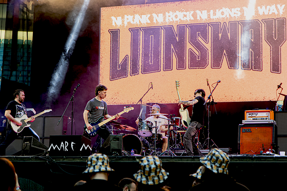 Los jóvenes LIONSWAY salieron al escenario con muchas ganas y lo hicieron muy bien. Aún con luz diurna, repasaron su último disco Malo Será (2024) y algunas canciones de Diagonales (2019), y ya lograron el primer «wall of death» de la velada, según ellos en lo que llaman ¿“el videojuego del guitarrista”?, que bajó a la arena a arrancar el movimiento entre los asistentes, en el tema «En La Niebla«. Dedicaron “Perro Viejo” a nuestros mayores, transmitiendo el mensaje de que debemos prestarles más atención. Tras invitar a sus fans a corear “Siempre Saludaban”, despidieron su actuación de 35 minutos con agradecimientos a todo el mundo.