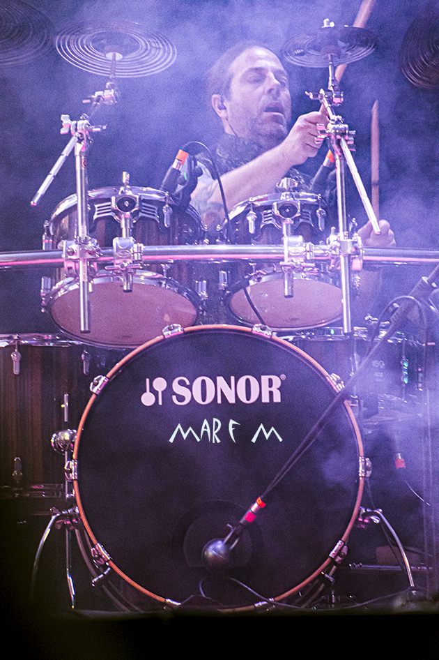 Tal y como se preveía, SAUROM tuvo tal vez al público más numeroso (parecido al de SÔBER) y al más animado. Claro, que la colaboración de las juglaresas APATAZANCA, poniendo color y más animación al concierto (sobre todo al mezclarse entre el gentío para abrir el círculo juglar correspondiente), ayudó bastante a ello. Aunque a ellos no les hacía falta esa ayuda. Basaron su reducida actuación en festivos y bailones temas de folk rock, apoyados en varias ocasiones por la melodiosa voz de Eli Amoedo, poniendo a cantar y bailar a todo el mundo enseguida. Tras el arranque con la intro con alguna frase de “El Principito”, el best seller que ha inspirado su último disco y la primera canción de la noche, la fiesta estaba asegurada. “La Leyenda de Gambrinus”, “El Lazarillo de Tormes”, “El Círculo Juglar”, “Fuego” y varios temas más de su amplia discografía llevaron al éxtasis a sus fans, con su perfecta interpretación y puesta en escena. No solo tuvieron al público más numeroso, también desplegaron la mayor variedad de instrumentos, gracias a Narci Lara, que no dudó en sacar desde su gaita hasta sus flautas, pasando por su violín y su guitarra, y gracias a Santi Carrasco, que dejó durante un momento su teclado para sumar su flauta también. Entre variados personajes subidos en altos zancos, malabarismos y coloridas coreografías, estuvieron cariñosos y empáticos con los leoneses y visitantes. El concierto se nos hizo cortísimo otra vez. Pero de nuevo la media hora de retraso en su horario era ya demasiado, lo que provocó el brusco final.