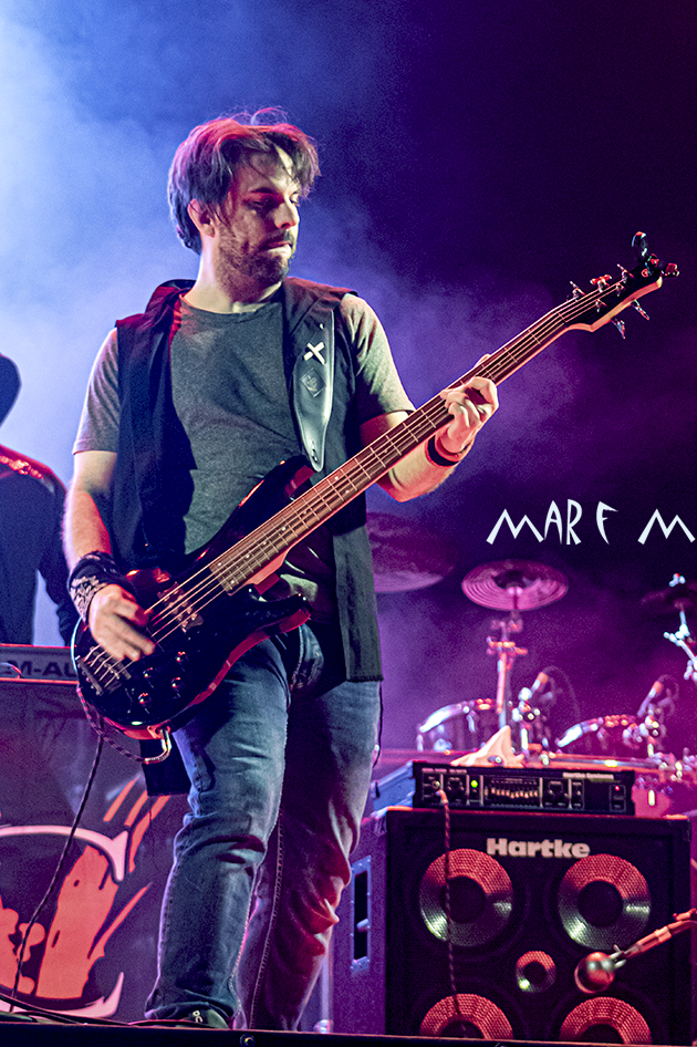 Tras otros 20 minutos de cambios y preparativos llegaron a las tablas leonesas los castellonenses DRY RIVER, también con algo de retraso. Claramente, gustaron a todos menos al técnico de luces, que, de manera inexplicable, les mantuvo a oscuras durante tres cuartos de su actuación. Aun así, los elegantes y progresivos músicos ofrecieron una lección maestra de virtuosismo y altísima calidad sonora. Lamentablemente fue el momento en que algunos asistentes decidieron ir a cenar y se perdieron una actuación brillante (al menos musicalmente hablando), desgranando con muchísima intensidad algunos temazos, como «Culpable«, “Camino”, “Fundido A Negro”, “Perder El Norte”, «Me Va A Faltar El Aire» o “Capitán Veneno”, con la que cerraron su cortísima actuación. Los que nos quedamos allí salimos contentos y agradecidos con su tremenda profesionalidad y entrega.