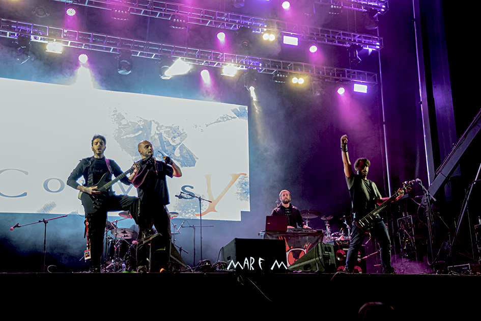 Le tocaba el turno a los locales CORVUS V. No vamos a engañarnos, tuve la gratificante oportunidad de saludarles nada más llegar al recinto y todos, ellos y los demás, sabíamos que tendrían menos tiempo y menos público que el resto de las bandas. Lo asumimos, es lo que pasa siempre. Pero fue triste ver qué poca gente nos quedamos hasta el final, cuando apenas quedaba media hora para que todo acabara. No podemos evitar darle una pequeña “colleja virtual” a los que se fueron sin darles la oportunidad a los leoneses, que igualmente empezaron su concierto con todas las ganas y con la energía que ponen siempre, arrancando con “El Miedo Y Yo”, seguidos de “Si Vos Pacem”, “Sacrificio”, “Imagina” y “Viento Austral”. Y esta vez además luciendo a su nuevo cantante, Iván Kouver. Y cuando estaban a tope, deleitando a los presentes con sus ritmos industriales agresivos y sus efectos visuales de estacas humeantes en “Inferno”, llegó la policía a las 02:00 en punto y puso el final repentino a la fiesta. A Diego Sahe le había dado tiempo de agradecer su asistencia al público, a sus compañeros leoneses de LIONSWAY, que sí se quedaron hasta el final, y a la organización. Aunque no fue bonito el detalle de encender todas las luces en medio de su actuación, cuando apenas habían empezado, a modo de invitación a ir acabando. En ese corto rato dio tiempo a que alguna nueva fan que se quedó les descubriera y admirara por primera vez (y así me lo contó, algo es algo), pero para los que ya les hemos visto desplegando todo su arsenal, fue una cortísima actuación agridulce y sobre todo, injusta.