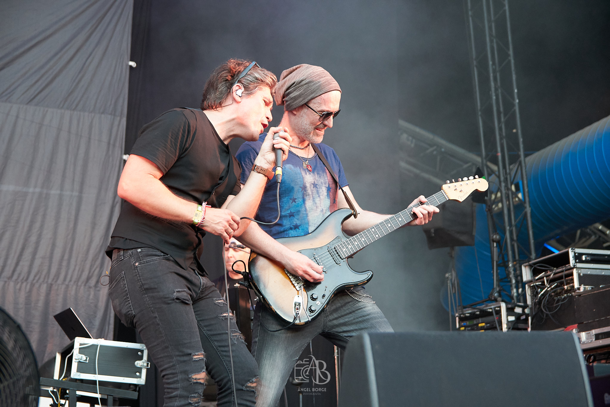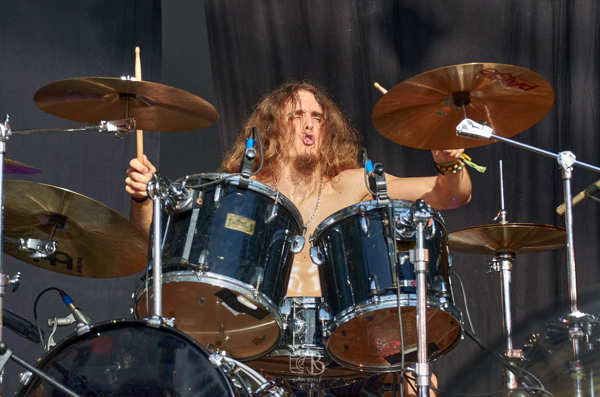 El sexteto afincado en Murcia y formado por Jesús Espín a la voz, Paco Cerezo e Iván González a la guitarra, Antonio Muñoz al bajo, Daniel Morata a los teclados y el arrollador David Koto a la batería (que show se marcó pese al abrasador sol que tenia de frente), presentaron diez temas de su extensa discografía. En un par de ocasiones Jesús comento que están dilatando el lanzamiento de nuevos trabajos ya que ahora prefieren madurarlos y disfrutarlos para así aportar un extra de calidad.