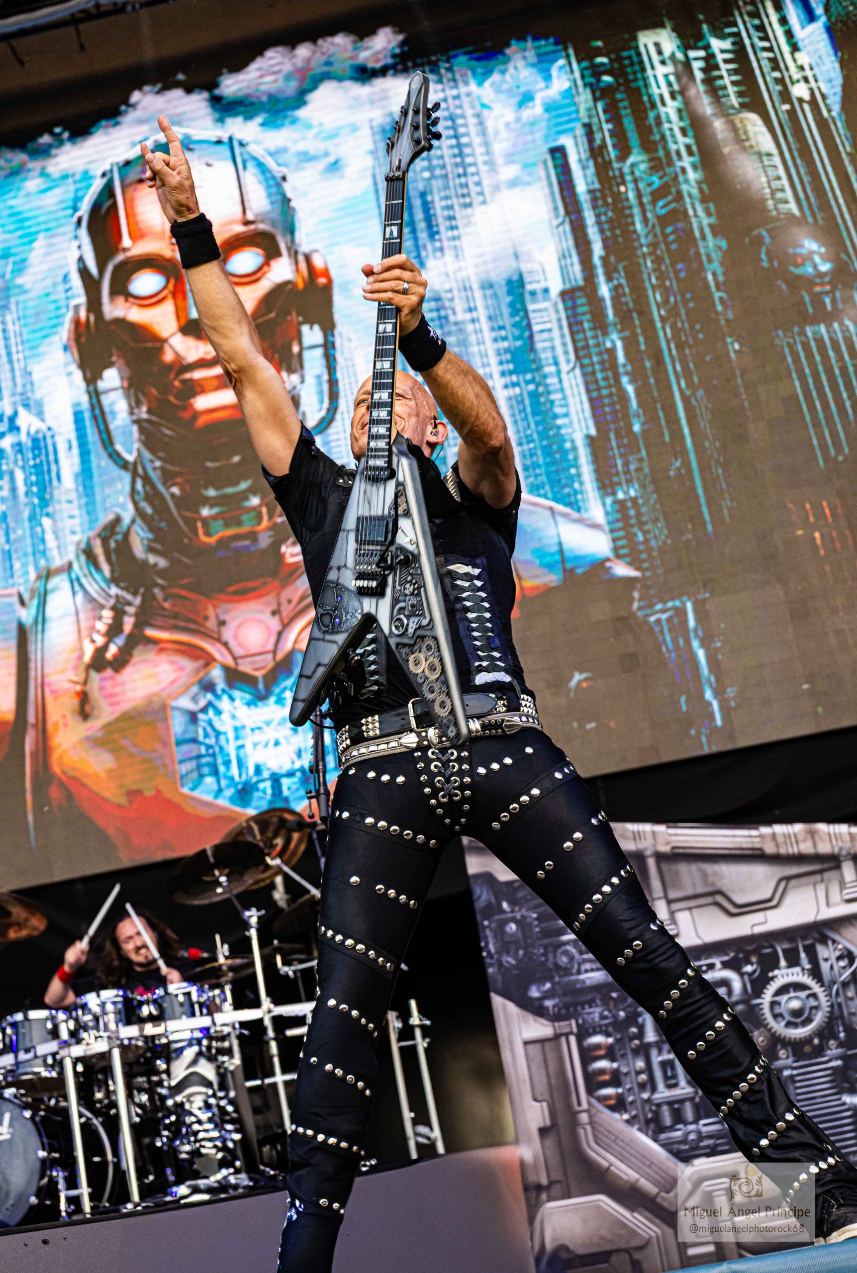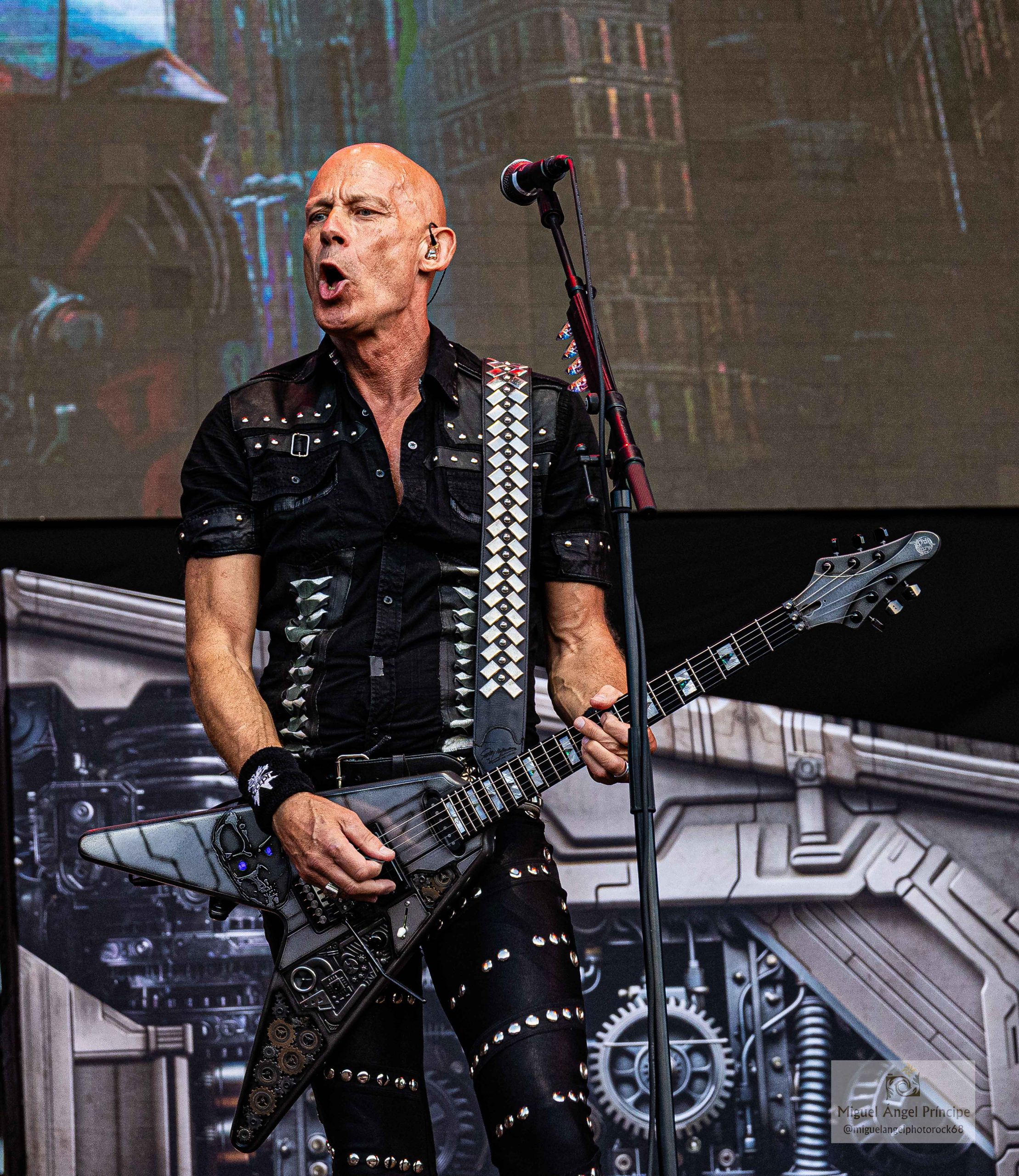 Una brutal e indescriptible base rítmica apta sólo para los oídos más exigentes aderezada por las afiladas guitarras del triplete Lulis, Shouse y Hoffmann se unieron a la voz penetrante de Tornillo haciendo de su actuación una verdadera Oda al Metal con los riffs como protagonistas en las aclamadas «Balls To The Wall», «Fast As A Shark», «Metal Heart» o «Teutonic Terror» convirtiendo la explanada en una auténtica jarana de headbanging e imparables puños en alto.