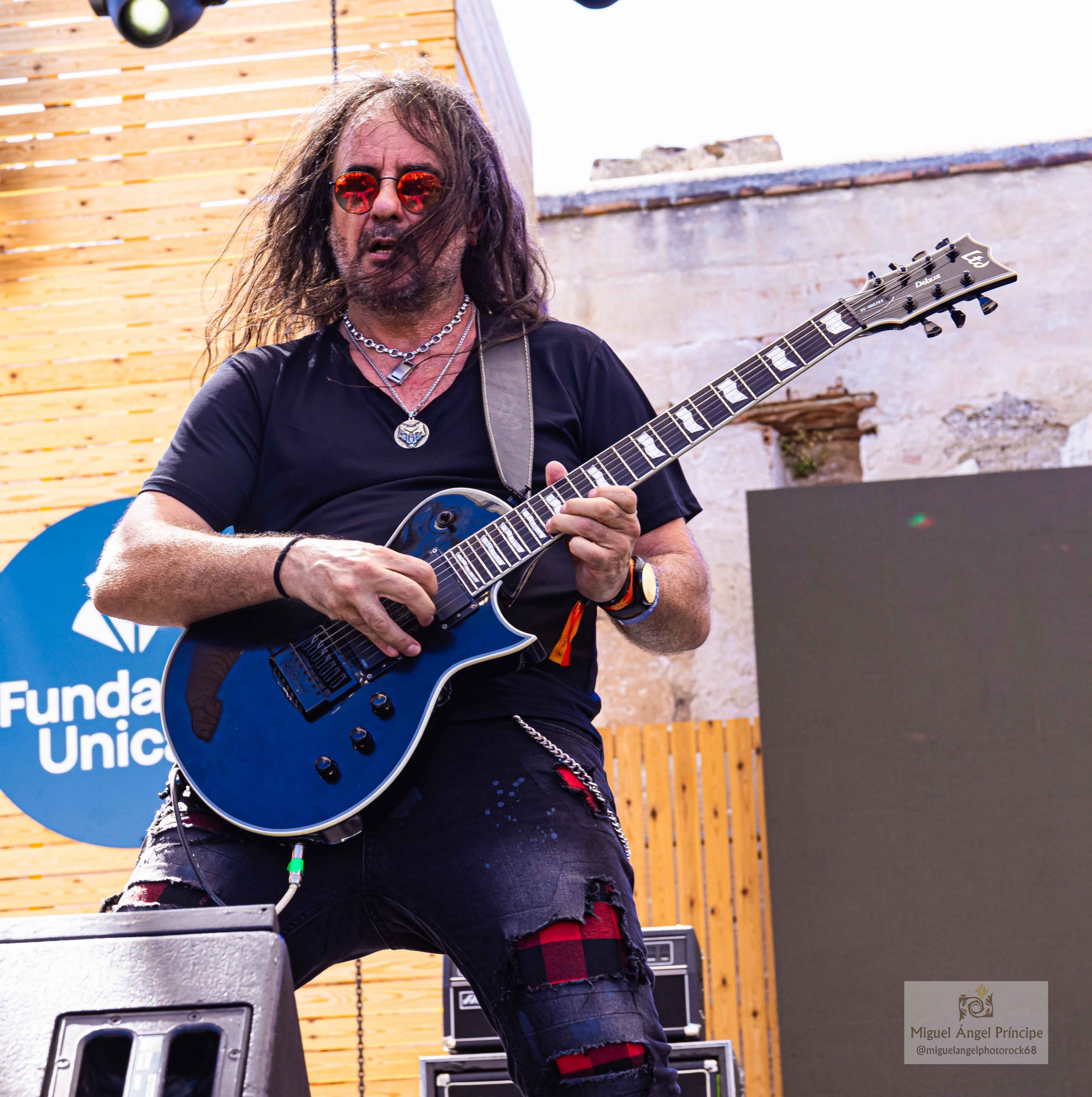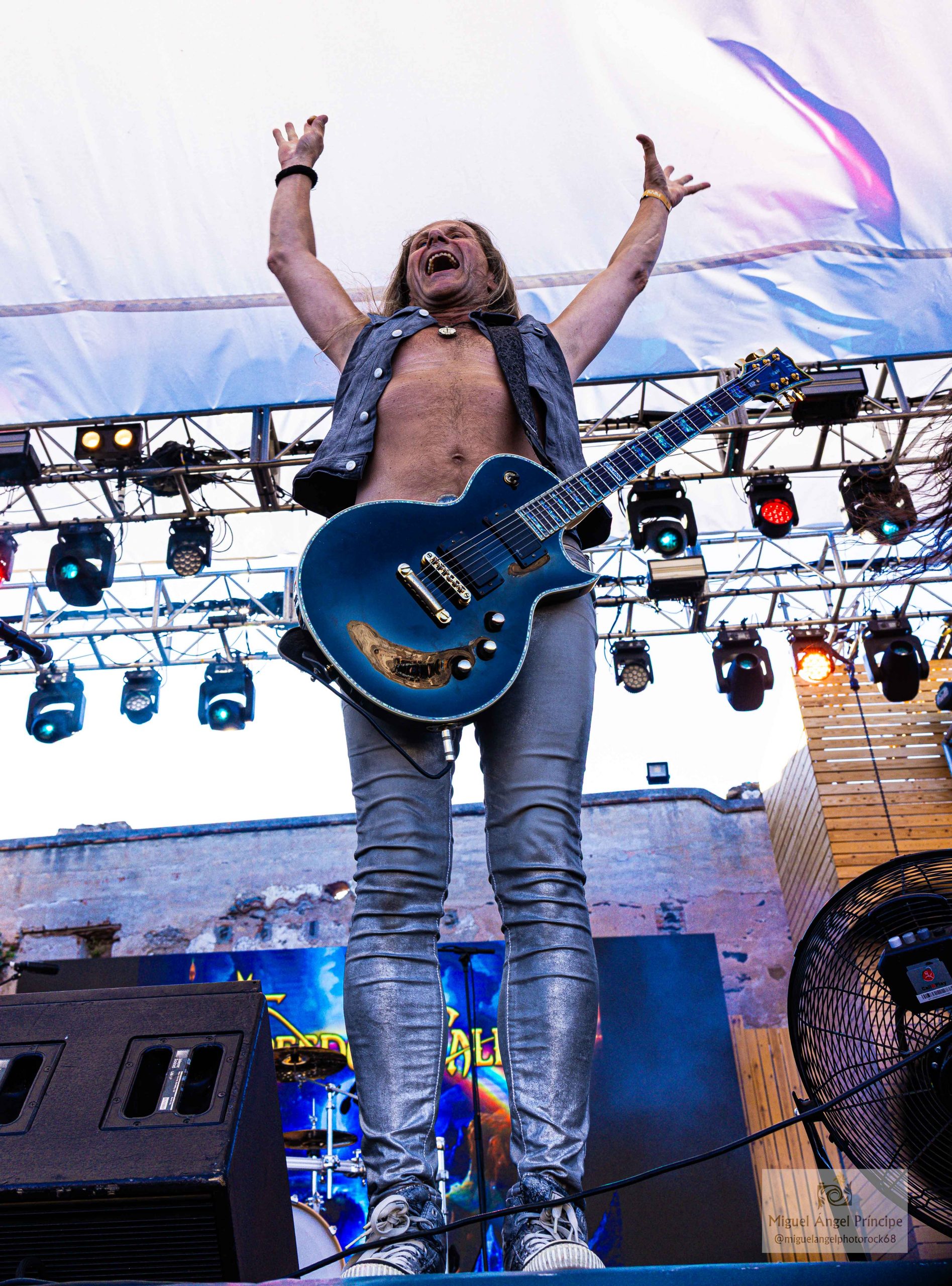 AZRAEL desde Granada y como buenos conocedores sus miembros de las temperaturas malagueñas un mes de julio a las 16:30 horas, salió al escenario derrochando toda una artillería de actitud junto a un repertorio perfecto para poner en marcha a los aguerridos que se arremolinaban ante el Thunder Stage y que se lo agradecieron con ovaciones, desgranando la gente junto al grupo los temas de Heavy Metal potente e implacable que esta veterana formación ejecutó sin florituras, sin medias tintas y sin dejarse nada en la recámara para hacer disfrutar al respetable con cañonazos como «Al Amanecer», «Incierta Realidad», «Tarde Ya» y «Sacrificio» para cerrar un show de pura adrenalina.