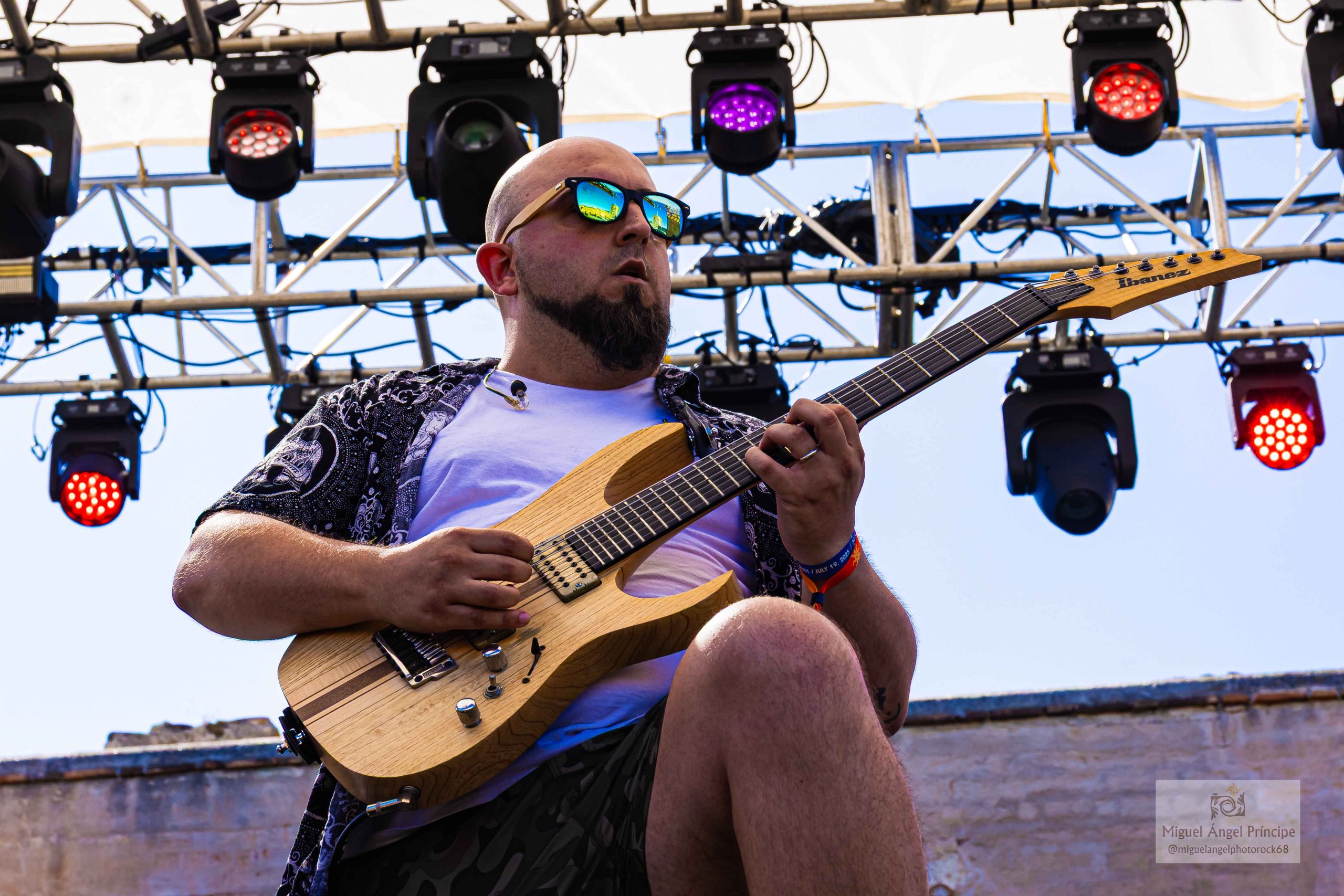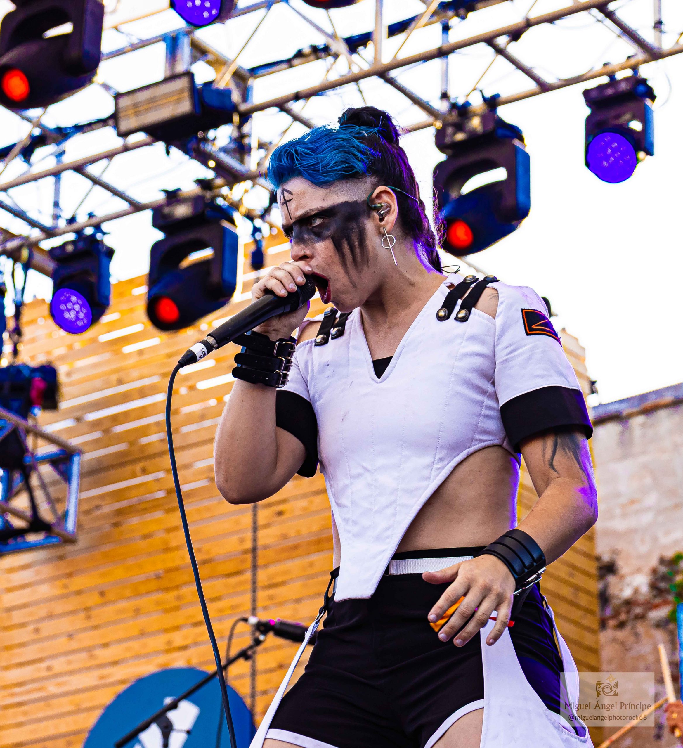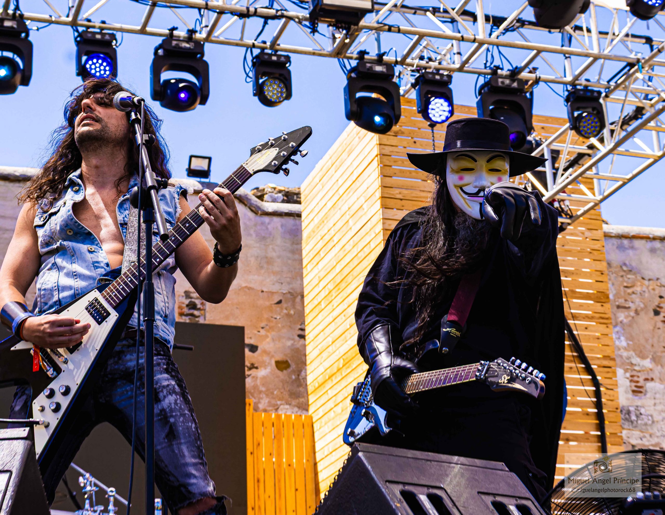 DAERIA llevó al escenario su desenfadado y virtuoso Metal Rock & Power afrontando la difícil hora de las 17:30 con las almenas del Castillo Sohail contemplando su actuación, ya que con alguna ventaja extra debía contar el escenario de arriba y además de un extraordinario sonido e invencibles metaleros disfrutando de las bandas la vista de esta fortaleza acompañaba a los temas en este caso de una banda que con dos trabajos impecables a sus espaldas ha desarrollado un directo donde la mezcla de melodía y agresividad musical conviven a la perfección, aderezando en esta ocasión ambos valores con bastante diversión para aminorar el calor reinante mientras regalaban son solidez piezas muy aptas para el directo como «Maléfica» o «Morfeo» que junto con otras igual de potentes fueron muy del gusto del respetable.