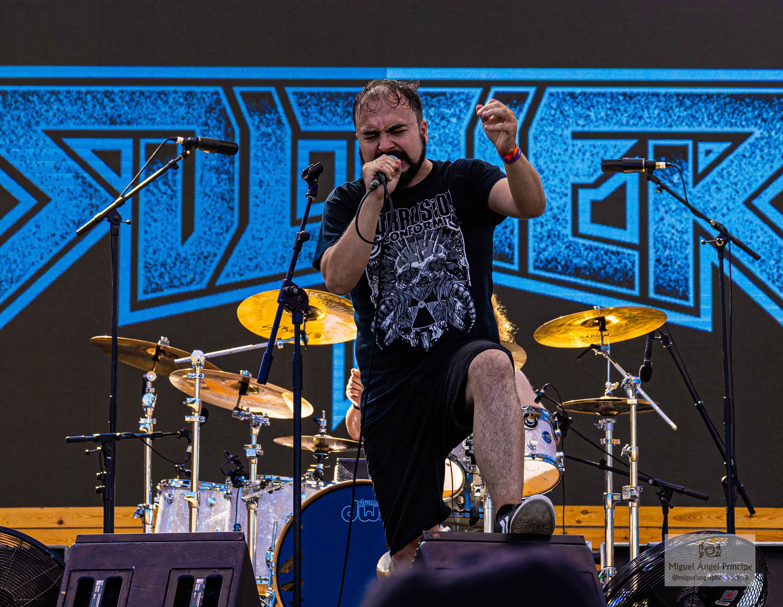 CICLÓN a las 15:30 horas y también en el Thunder Stage, defendió con garra y raza un Heavy Metal de esencia clásica que la banda madrileña lleva gestionando desde el año 2006 recuperando con sus temas la naturaleza de los ochenta, unas canciones no exentas de mensaje que el quinteto redondeó con veloces punteos y con una base rítmica contundente ejecutando así unas piezas frescas que invitaron a los molinillos, a ser cantadas y a las manos en alto tanto en las más antiguas como en las nuevas composiciones realmente excepcionales que se incluyen en su último trabajo muy digno de varias escuchas llamado Magia.