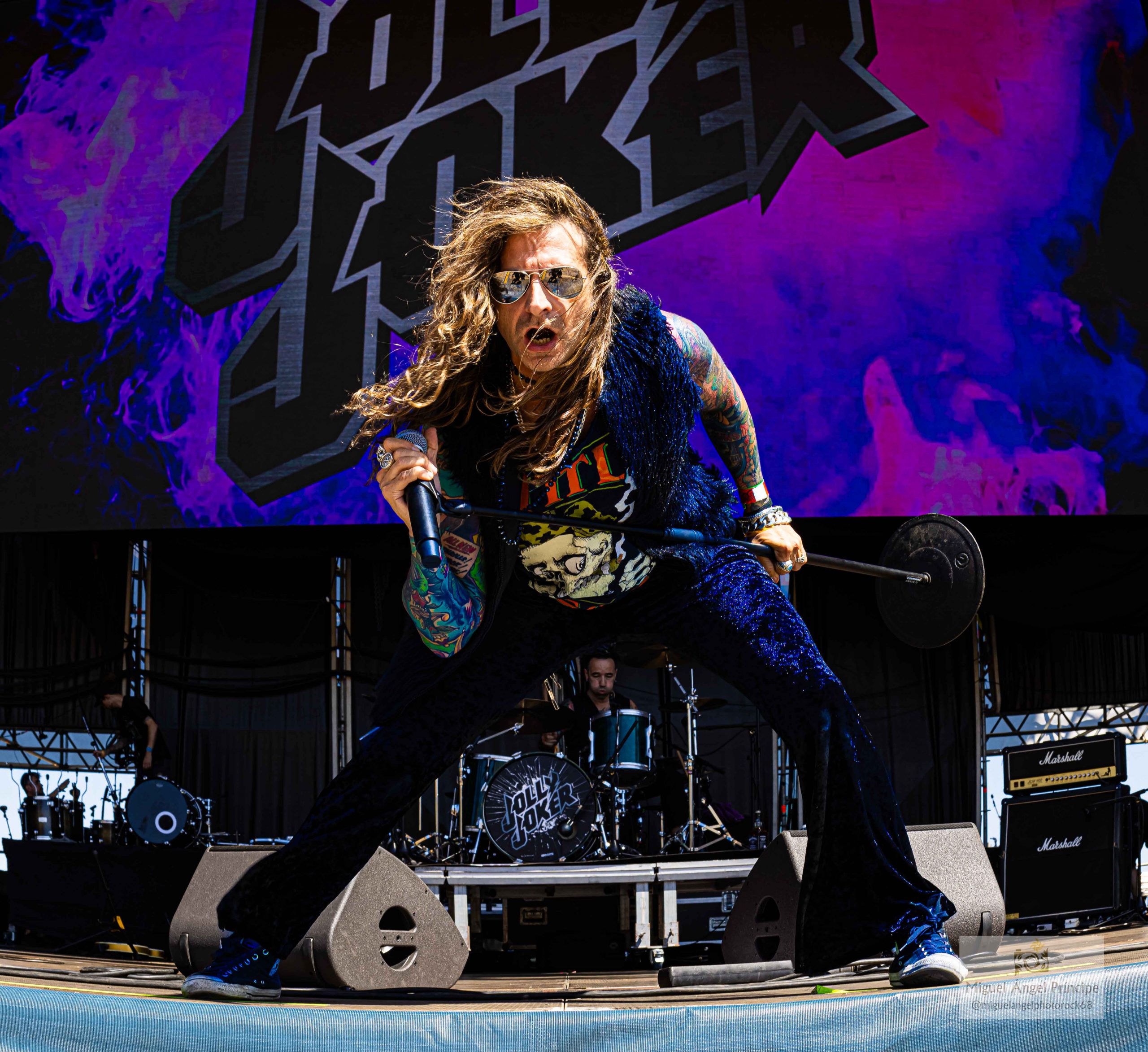 JOLLY JOKER abrió el Sun Stage a las 16:30 horas para durante sesenta minutos, vivirse gracias a los valencianos un derroche de energía con el Hard Rock como protagonista coqueteando también el grupo con un Rock And Roll iluminado por la tan prodigiosa como versátil garganta de Lazy Lane y endurecido por la pasional a la vez que virtuosa guitarra de Yannick Bonora quienes junto con Andy al bajo y Daniele Panucci a la batería, desataron una auténtica locura sobre el escenario dejándonos con su imagen una clara vertiente Glam nada disimulada en algunas de sus notas musicales que con perspicacia se colaron en temas vivos, certeros, electrizantes, sensuales e insinuantes como «Fuck It All» o «Little Cadillac» poniendo en marcha a la gente con un formato muy U.S.A.