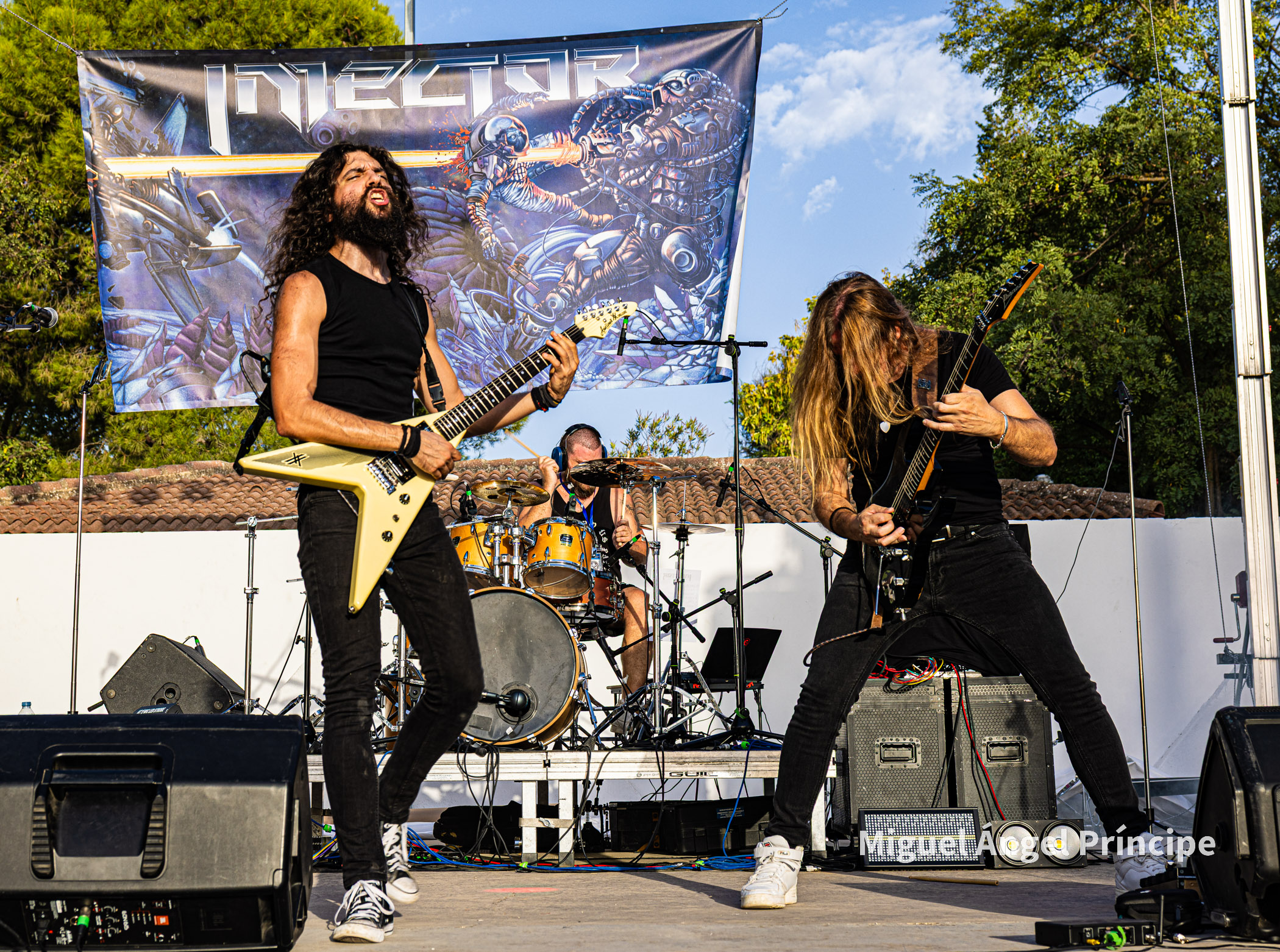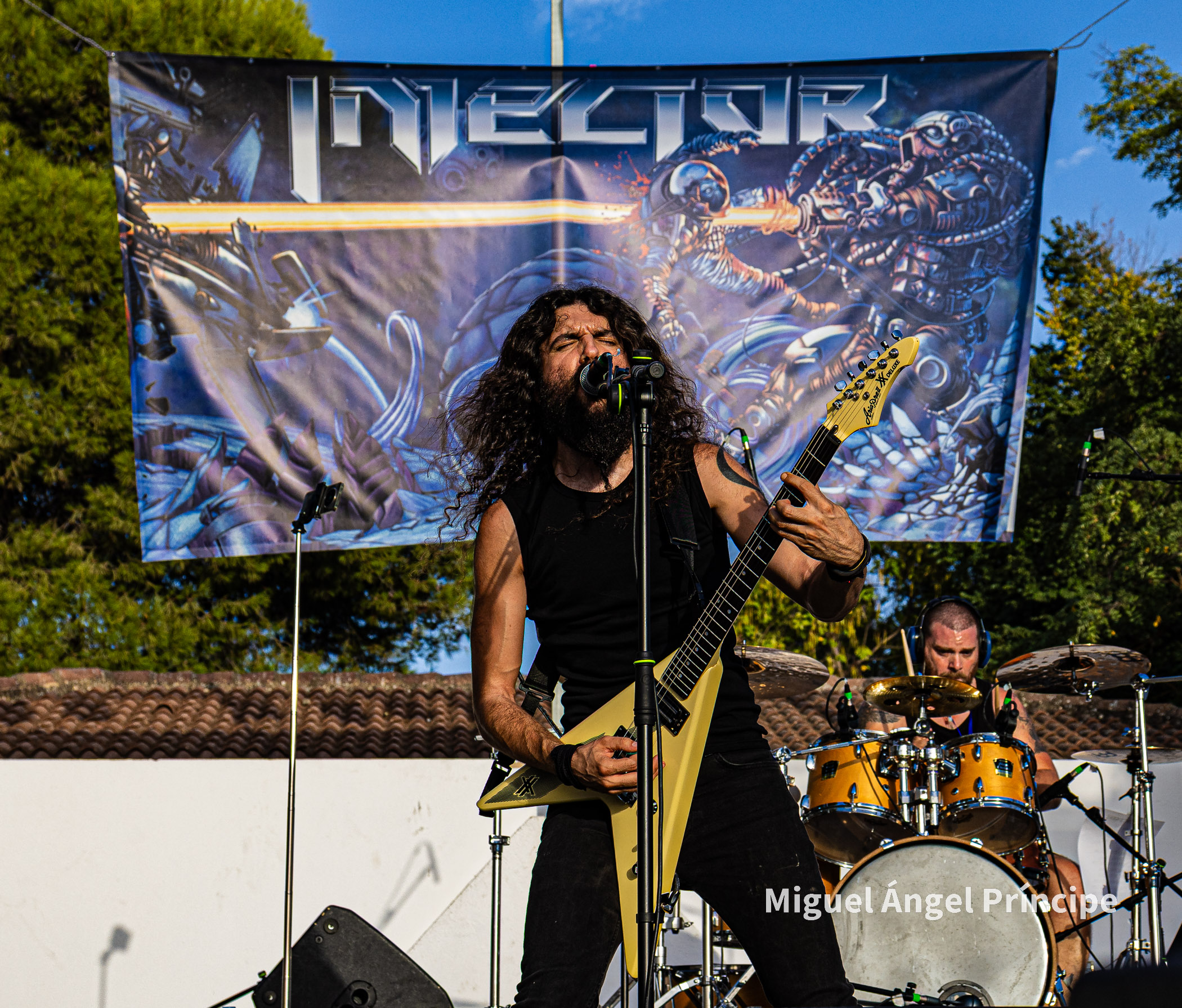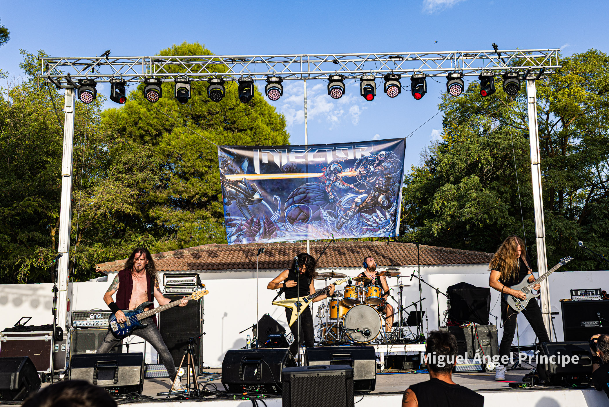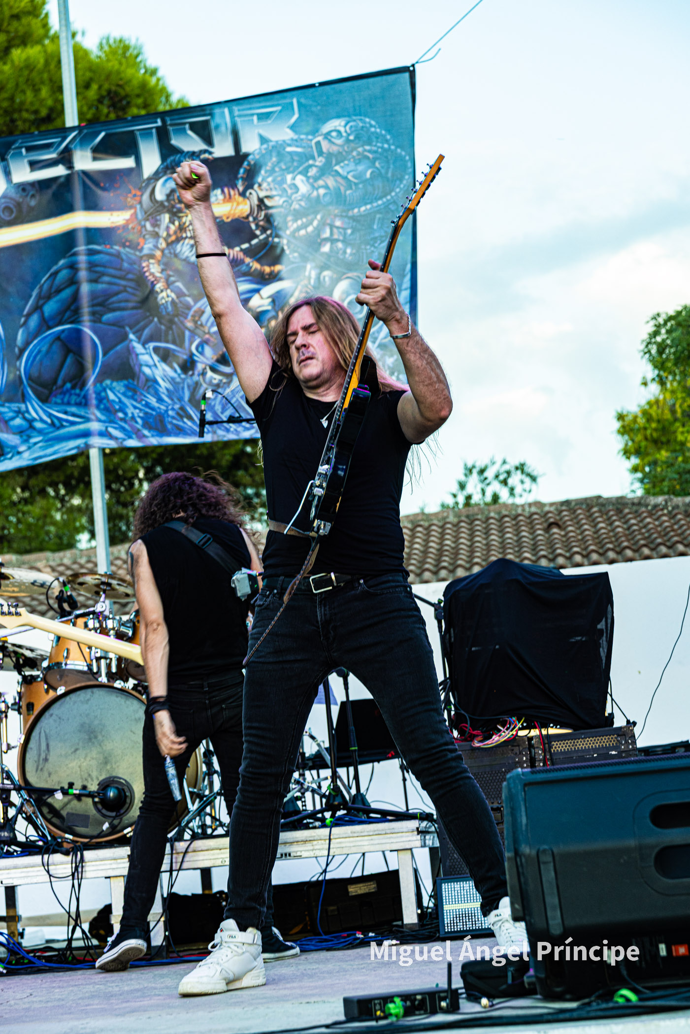 SPHINX desde Cádiz continuó con la fiesta haciendo gala de ese exquisito Heavy Metal que el grupo gestiona con elegancia y potencia a partes iguales, regalando el quinteto un completo repertorio muy centrado en su último redondo de nombre Vida Virtual sin olvidar temas muy queridos por el público pertenecientes a su aclamado disco Mar De Dioses.