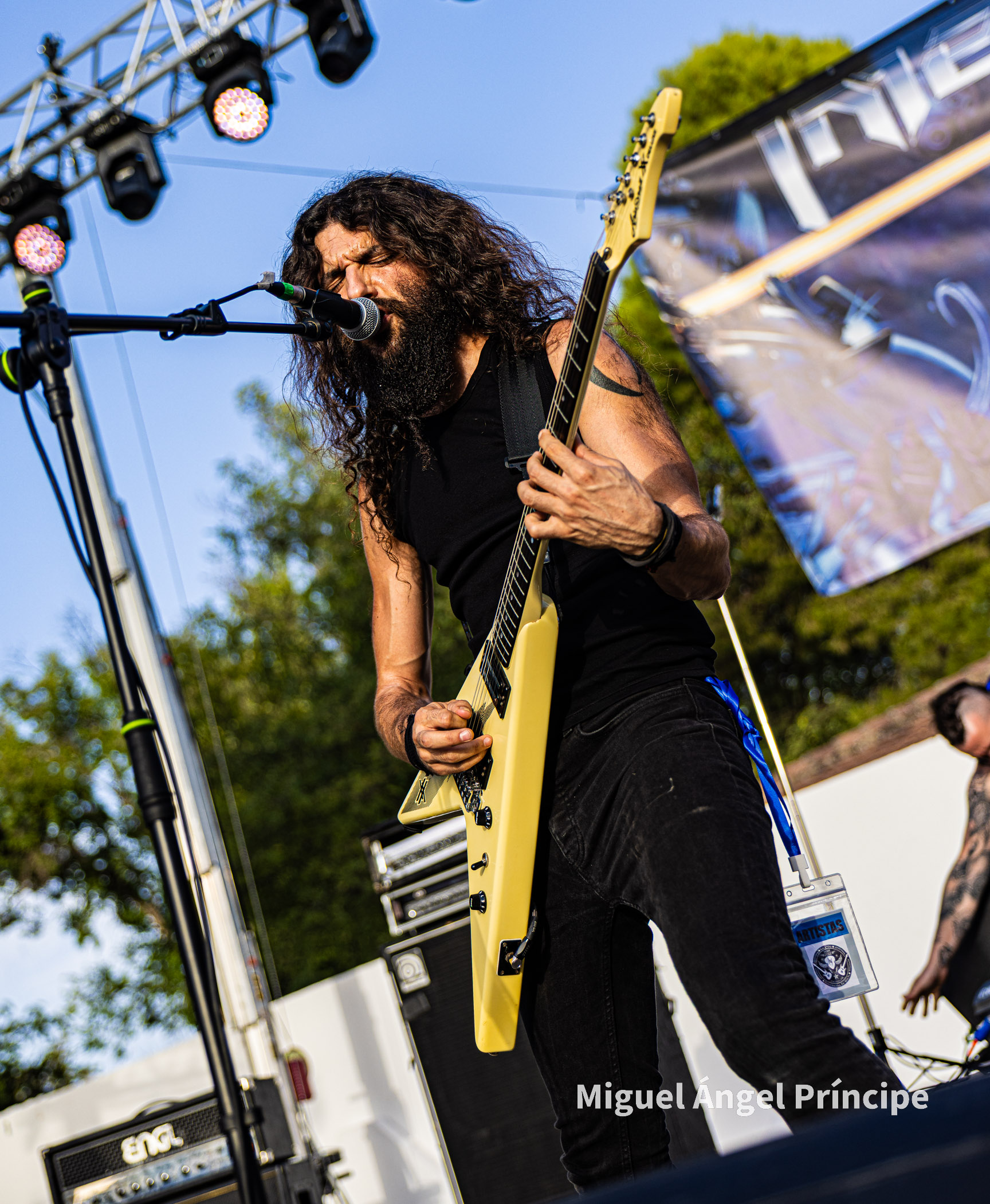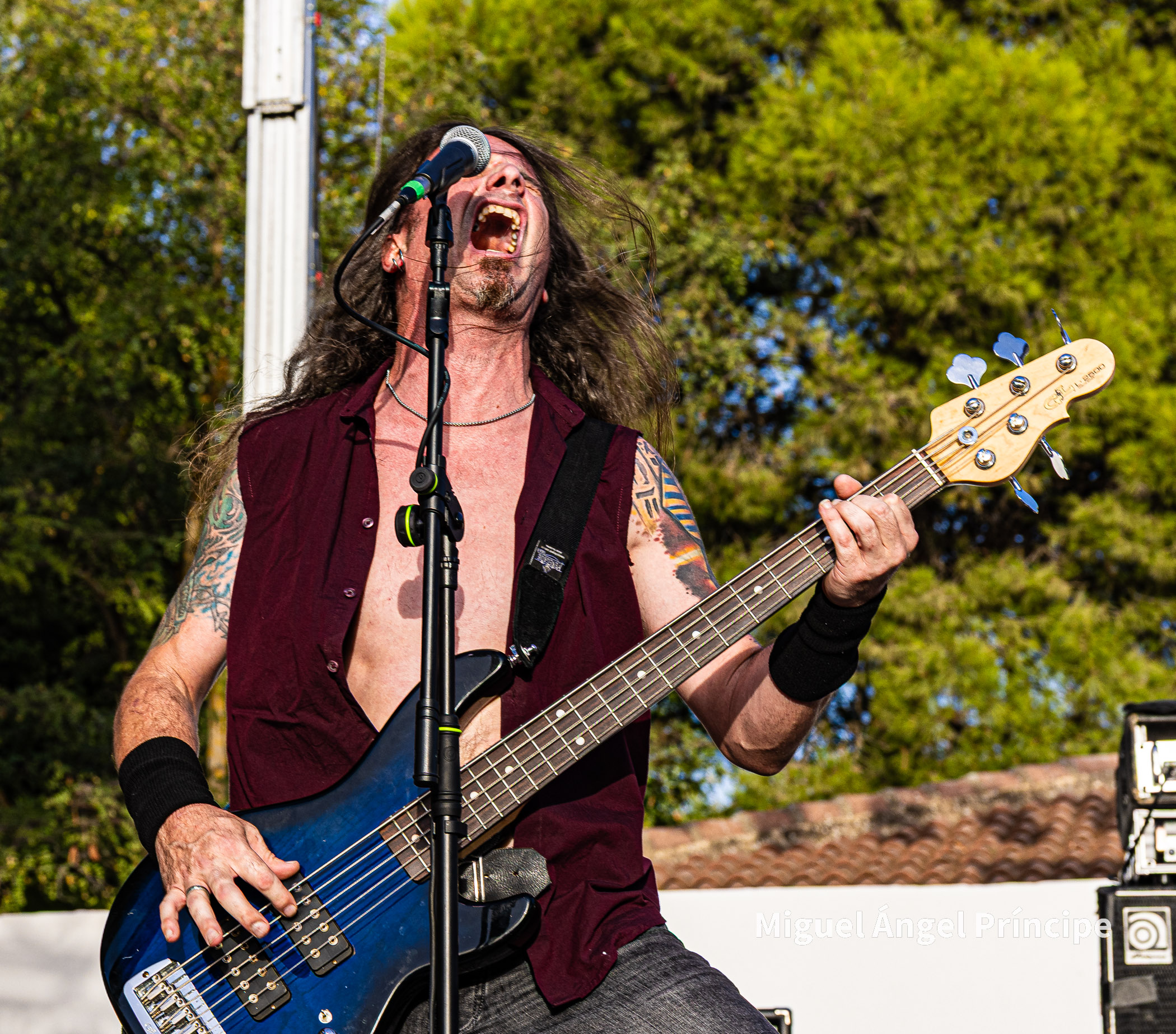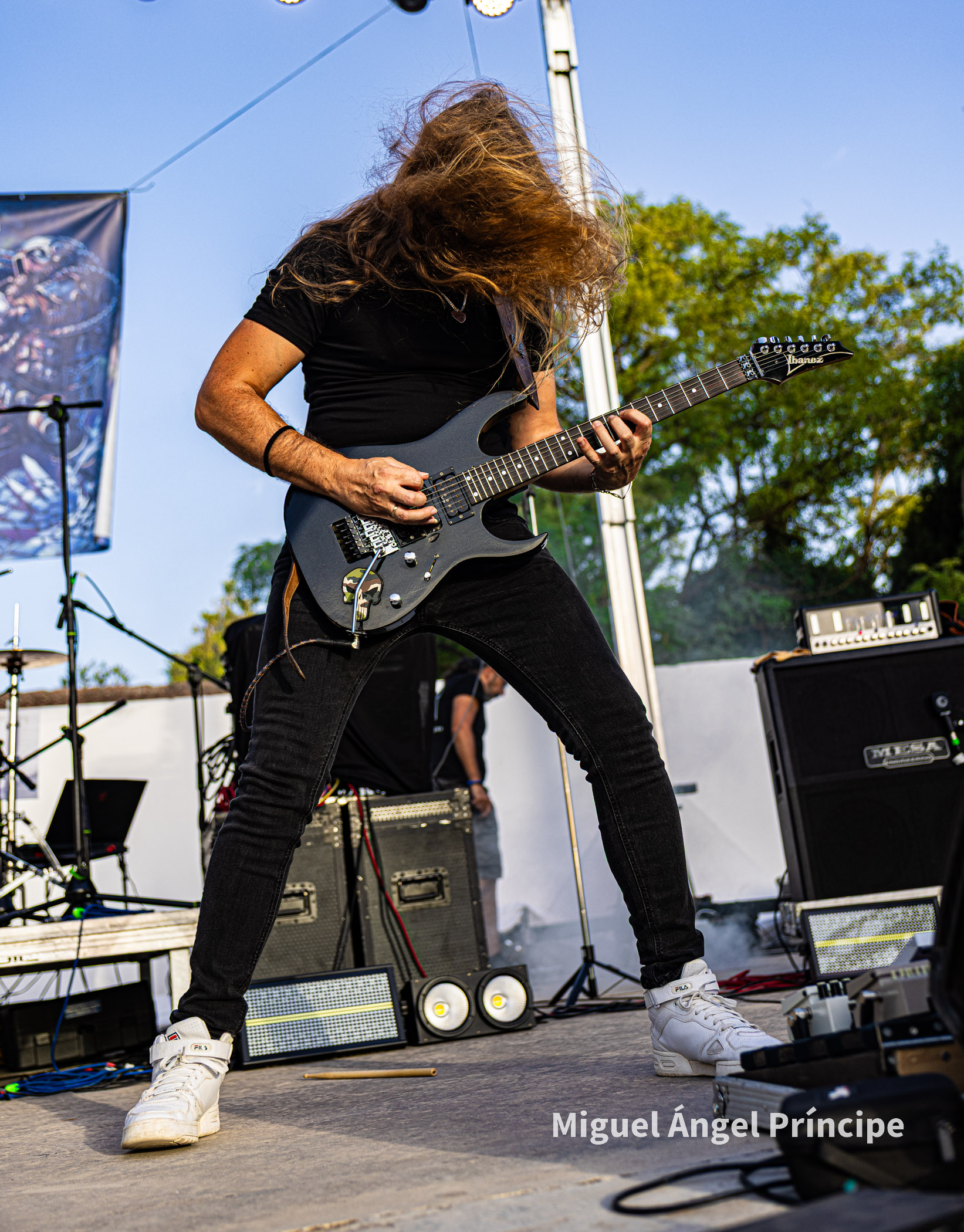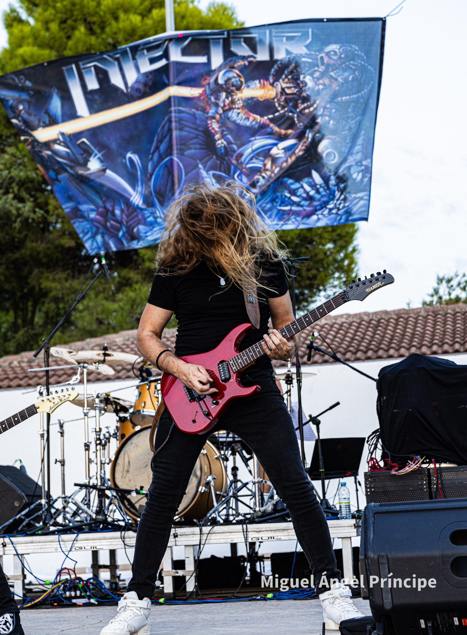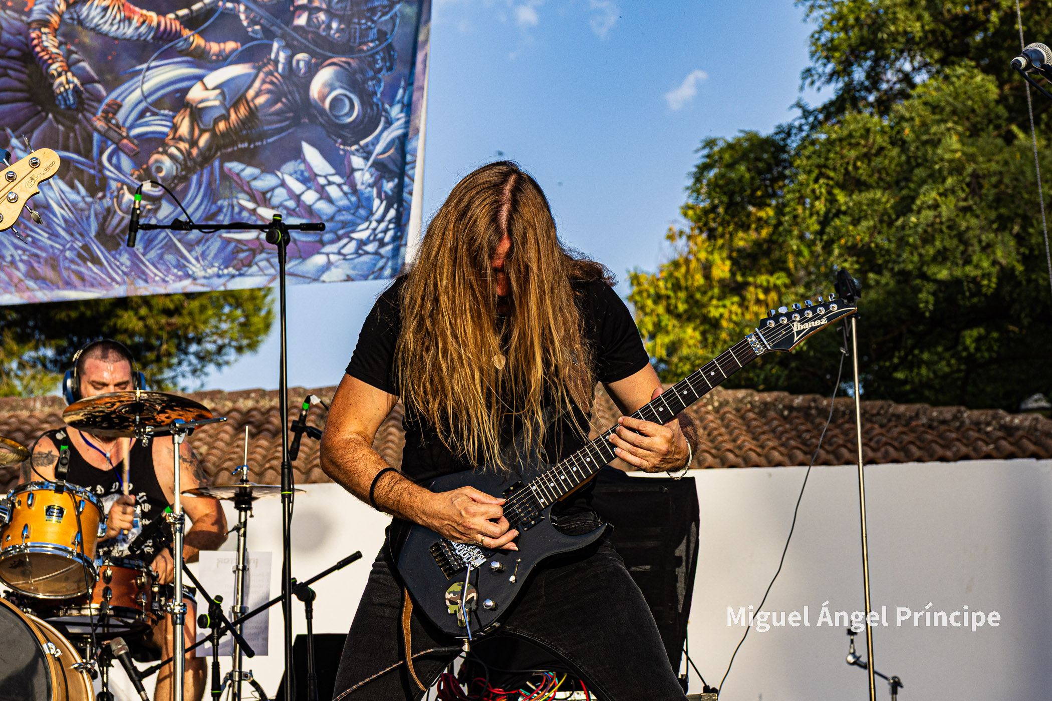 SPHINX desde Cádiz continuó con la fiesta haciendo gala de ese exquisito Heavy Metal que el grupo gestiona con elegancia y potencia a partes iguales, regalando el quinteto un completo repertorio muy centrado en su último redondo de nombre Vida Virtual sin olvidar temas muy queridos por el público pertenecientes a su aclamado disco Mar De Dioses.