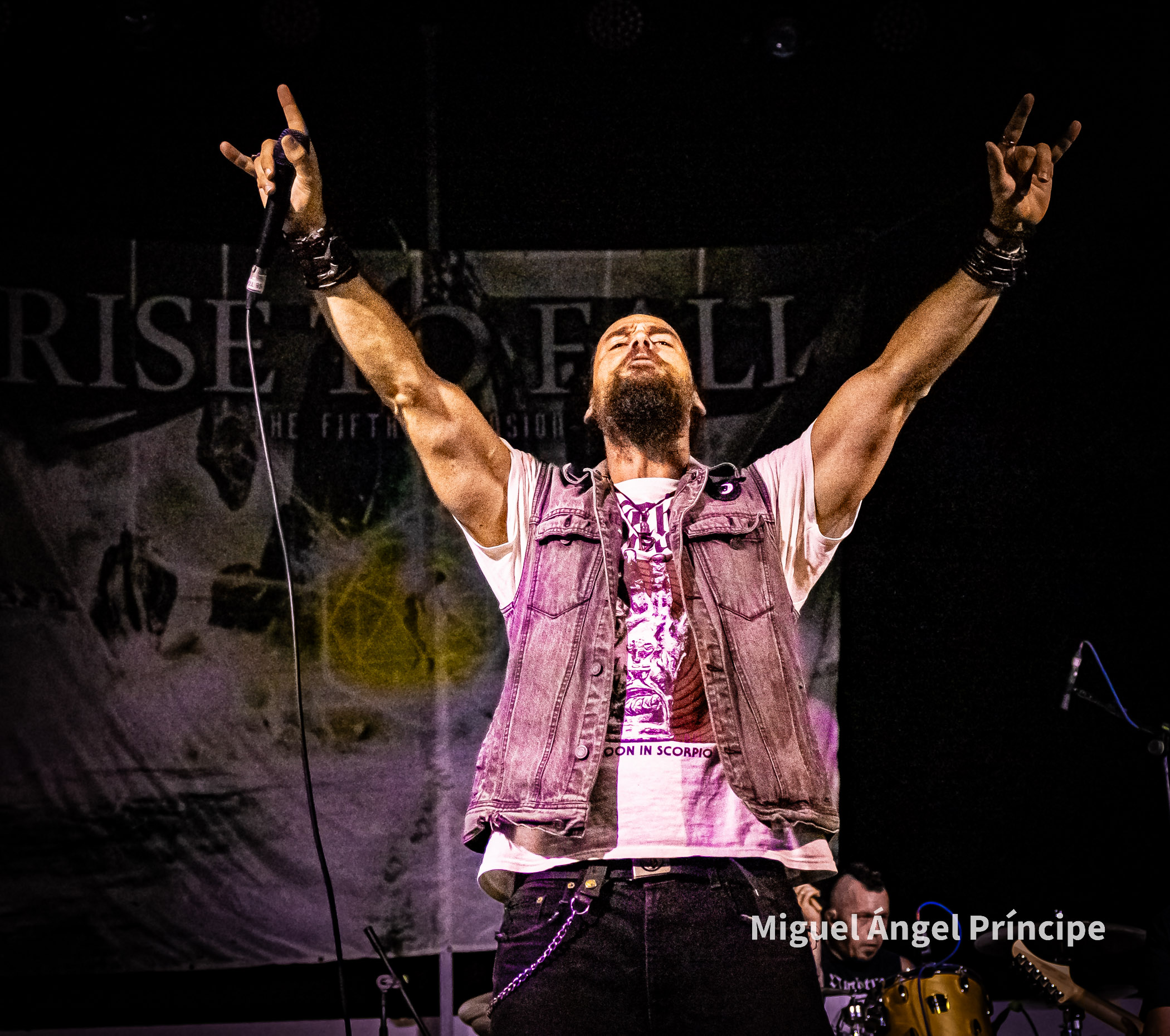 RISE TO FALL desde Bilbao se encargó de poner con fuerza sobre la tarima una buena dosis de su implacable Death Metal Melódico que desde el año 2006, nos ha dejado impecables piezas cargadas de estribillos pegadizos junto a riffs afilados invitando sus temas tanto a ser cantados como bailados recordando su último álbum The Fifth Dimension.
