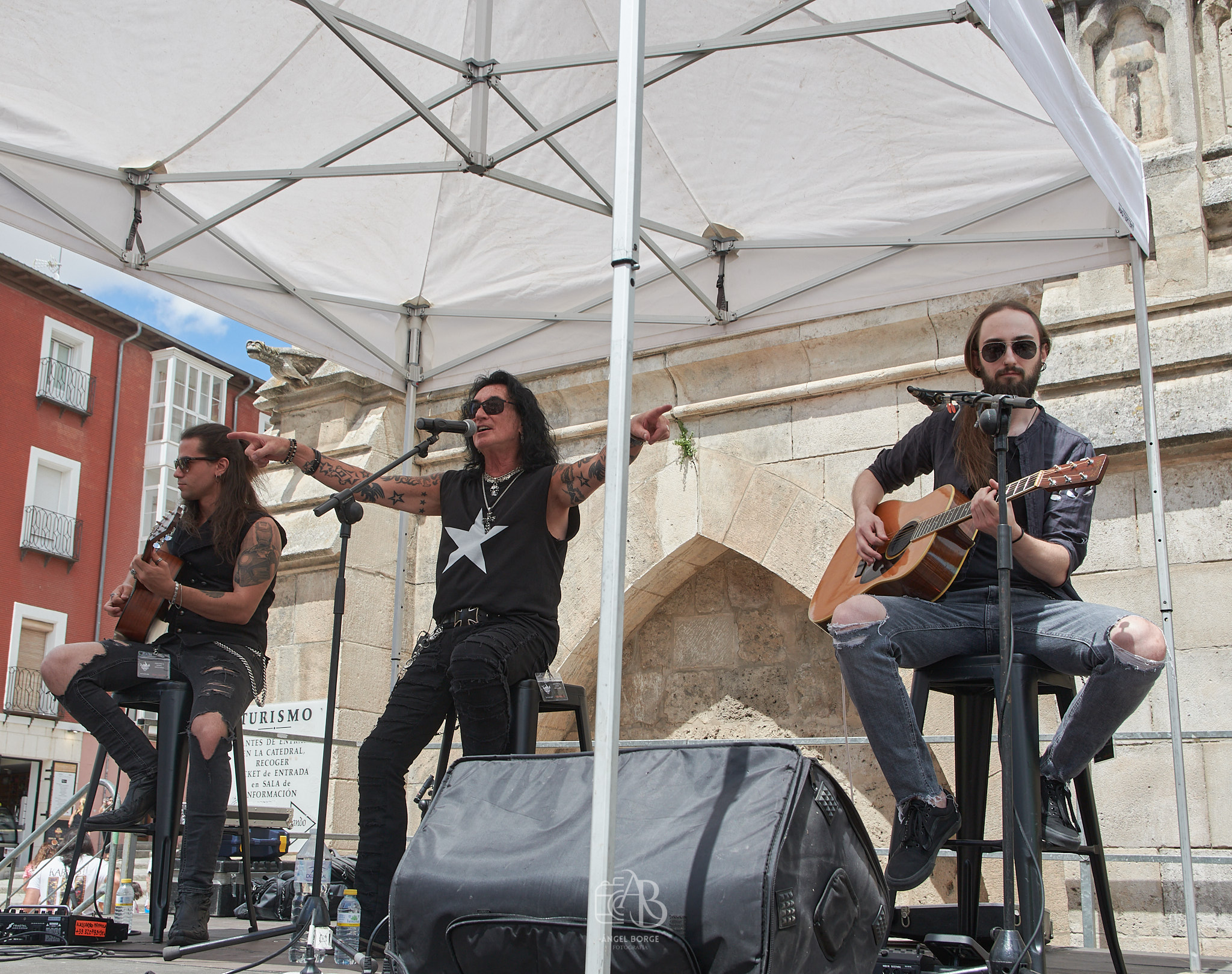 El sábado empezó con el concierto acústico (novedad del año pasado) a los pies de la Catedral en un marco incomparable y único que dotó de una vistosidad brutal al evento, estando este año los músicos a cubierto gracias a una carpa para protegerles del sol donde Robin acompañado de sus dos guitarritas, ofreció un espectáculo de varios temas que ya habían sonado la noche anterior en eléctrico y además añadió otros recordando así su etapa en SURVIVOR por ejemplo con «Eye Of The Tiger». La plaza de Santa María estaba a rebosar de gente que acudió o que se encontró con el evento. Un auténtico éxito esta iniciativa.