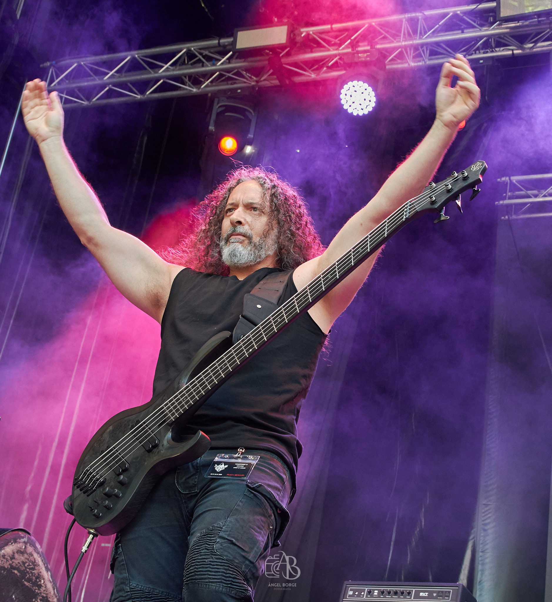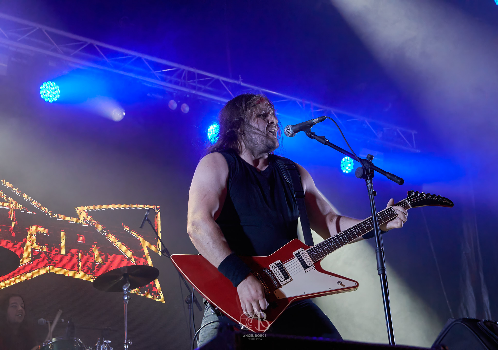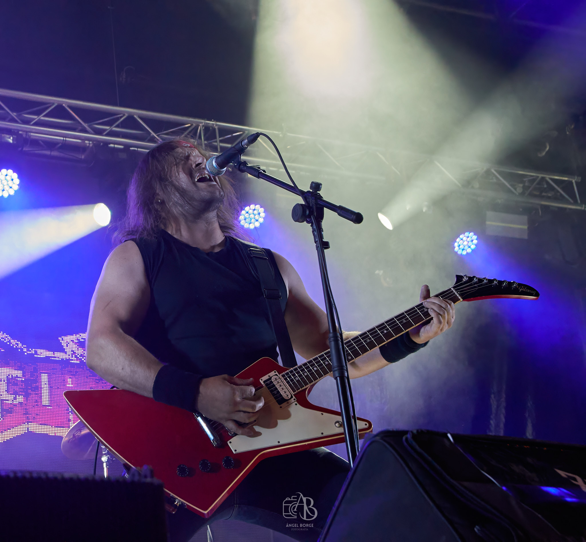 ROSS THE BOSS: Otro de los platos fuertes y muy esperado era la banda del guitarrista americano fundador de MANOWAR que llegó según fue cayendo la tarde y ya desde el principio, el público se volcó con los temas del grupo levantando los brazos y coreando las canciones especialmente cuando aparecieron los himnos de su formación primigenia como fueron «Kings Of Metal», «Fighting The World» o «Hail And Kill», llegando un momento donde el cantante Marc Lopes se sentó en la valla y empezó a grabar con su móvil mientras cantaba haciendo que el público se viniese arriba.