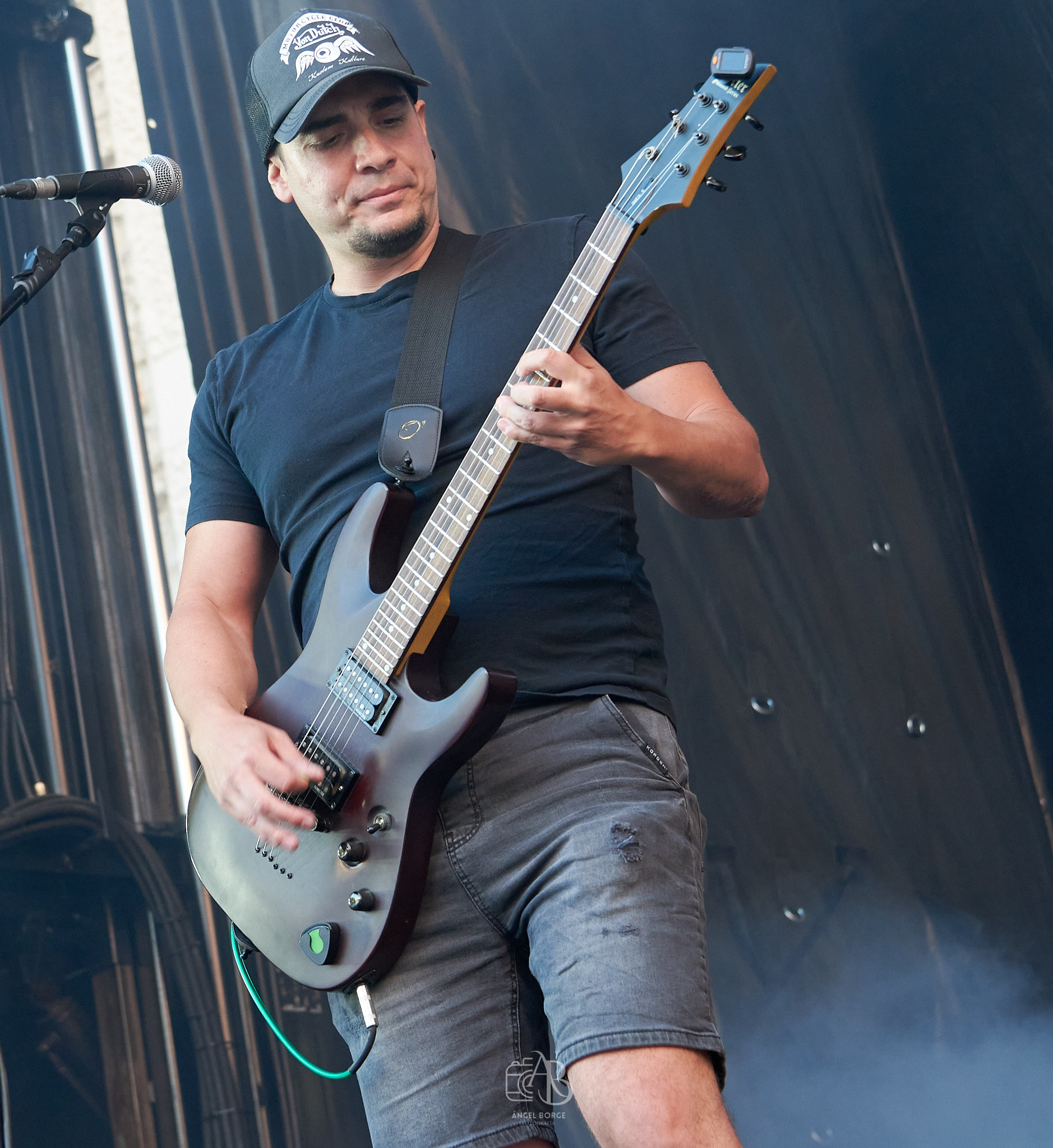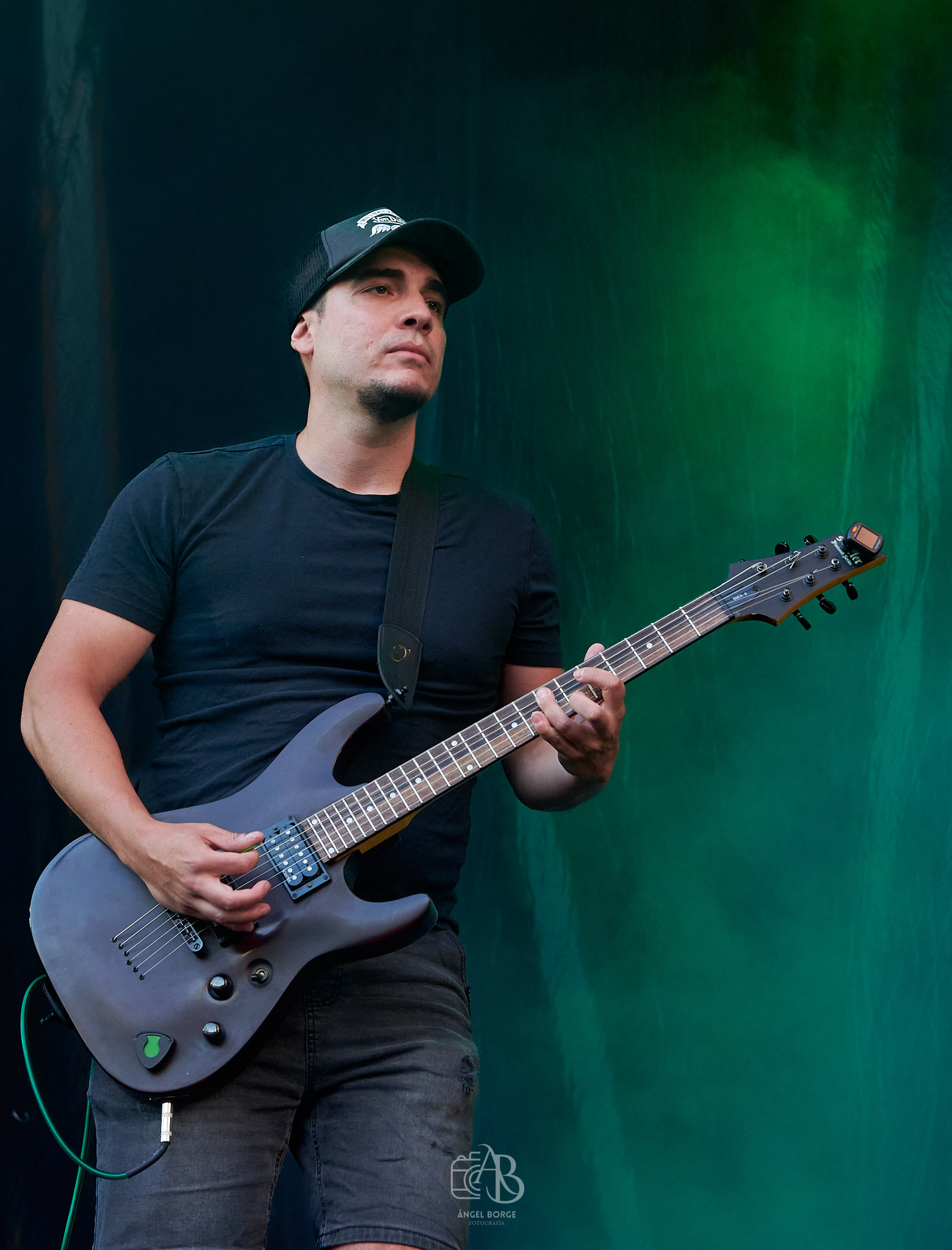 RAVE IN FIRE: Abriendo el Festival en el escenario Fundación Caja Rural (a partir de aquí el resto de grupos del viernes irían alternando escenarios), llegaba esta banda española de Heavy Metal fundada en el 2015 en Madrid que desgranó las canciones de su álbum Sons Of A Lie.