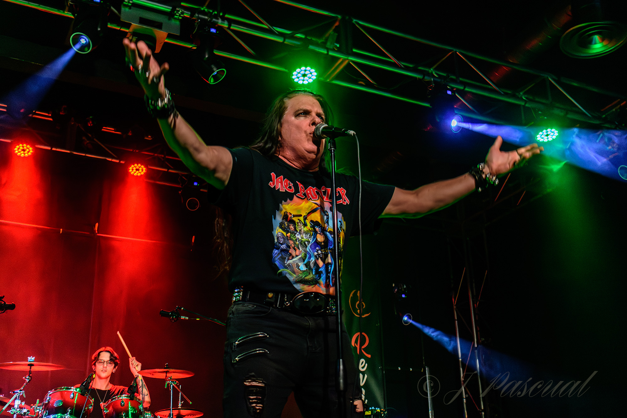 Tras un breve espacio de tiempo, para el pertinente cambio de equipo aparecían por fin los grandes protagonistas de la noche, JAG PANZER eso si, tal y como ya anunciaron un poco antes del comienzo de su gira, de manera puntual el guitarrista Mark Briody, no participaría en la actual gira europea, aunque tal y como pudimos comprobar a lo largo de la noche, Casey Trask, el encargado de suplir su ausencia, no es precisamente manco, complementándose a la perfección con Ken Rodarte para dejarnos a lo largo de la noche una magnífica colección de potentes y afilados riff y solos de guitarra, siempre perfectamente arropados por la potente y engrasada maquinaria ritmica conformada por Aric Avina al bajo y el benjamín de la banda, Jacob Lee Coleman a la bateria y como no la potente voz de Harry Conklin, único miembro fundador presente en la gira.