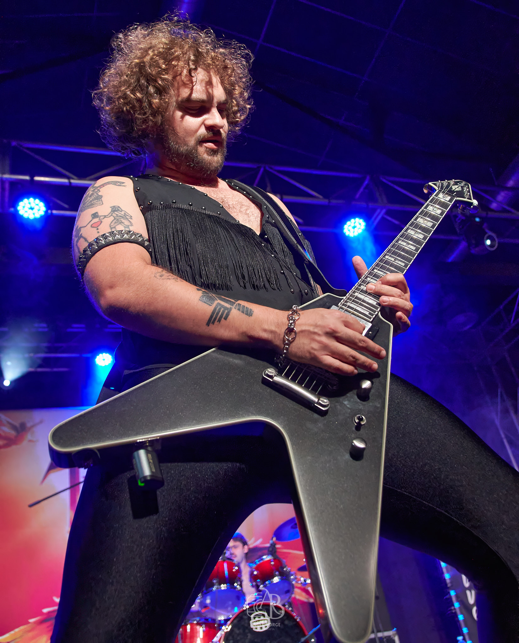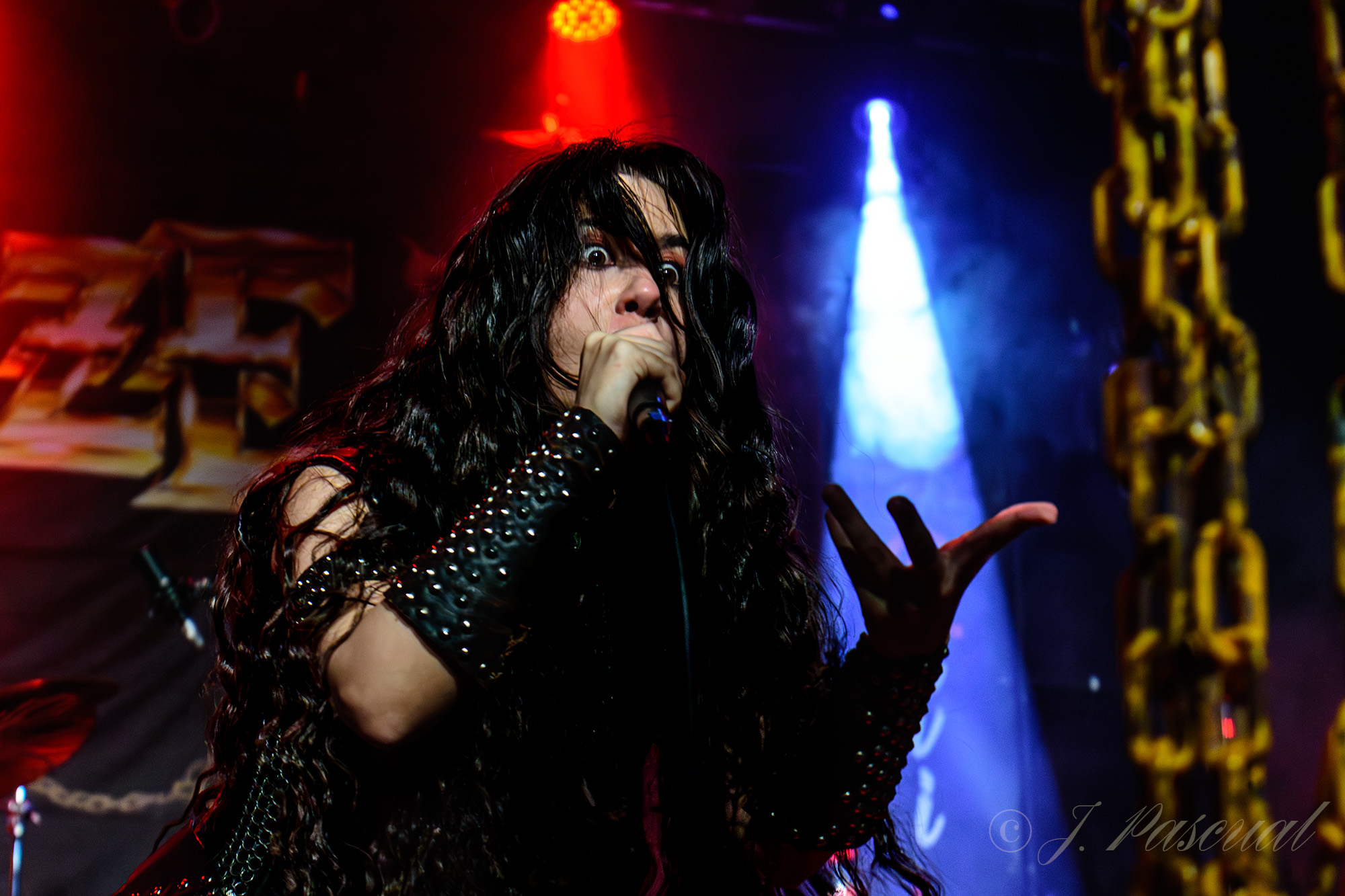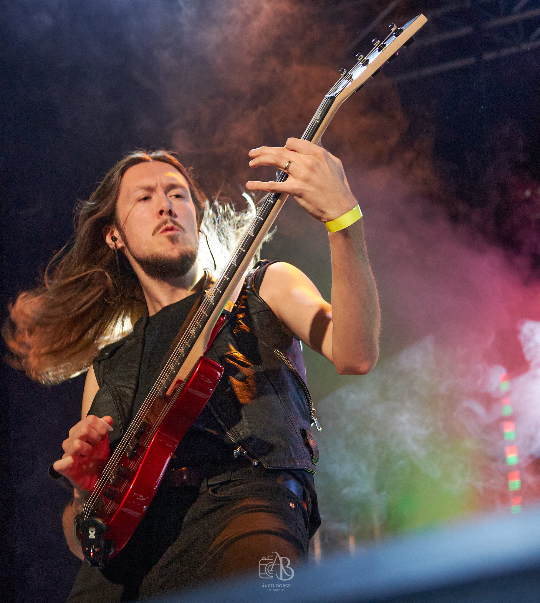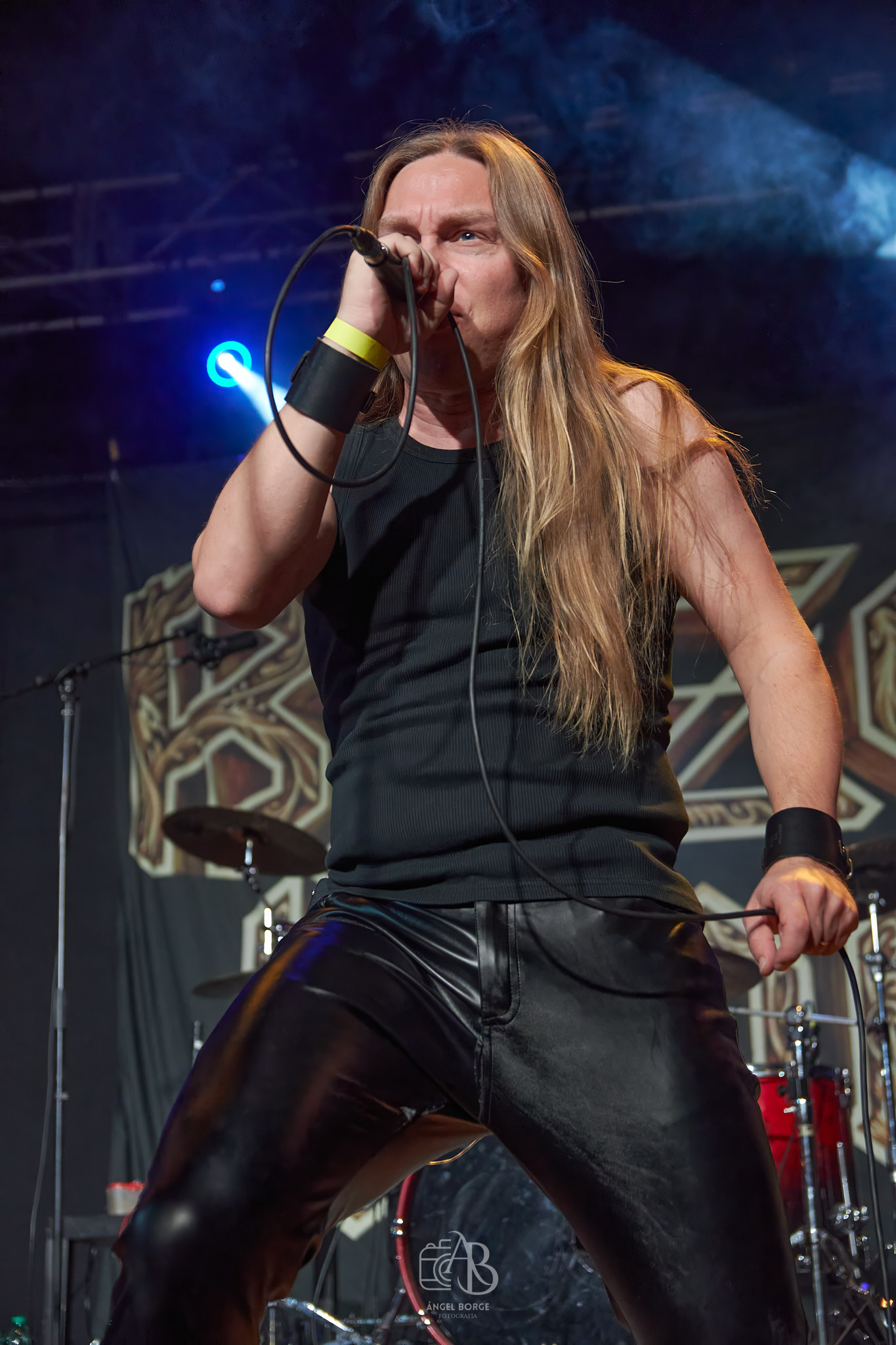 Los elegidos para abrir la jornada eran BRONZE la banda liderada por Mina Walkure regresaba a nuestro país donde nació bajo el nombre de KRAMP para desde aquí trasladarse a tierras suecas, y que llegaba ilusionada por dejarnos una buena muestra de su Heavy Metal al más puro estilo ochentero, para hacernos rejuvenecer unos años a los más talluditos que pululábamos por el festival, e impregnar a los más jóvenes de ese espíritu. «Maze of Haze«, servía como tema de arranque, aunque un tanto accidentado por la rotura de una cuerda de la guitarra de Ced, lo que no impidió que tras solucionar ese pequeño contratiempo la banda dominara el escenario con Mina derrochando energías tanto a nivel vocal como en el aspecto más físico no dejando ni un solo metro de escenario por recorrer, mientras la afilada hacha de Cederick Forsberg desgranaba riffs y armonías, siempre arropados por sus compañeros Billy Qvarnström en la batería y Lap Walkure al bajo, recibiendo el apoyo de los asistentes que coreaban temas como «Leather Warrior» o «Jackals Of The Sea» para cerrar su descarga a toda velocidad con «Speed Of Light»